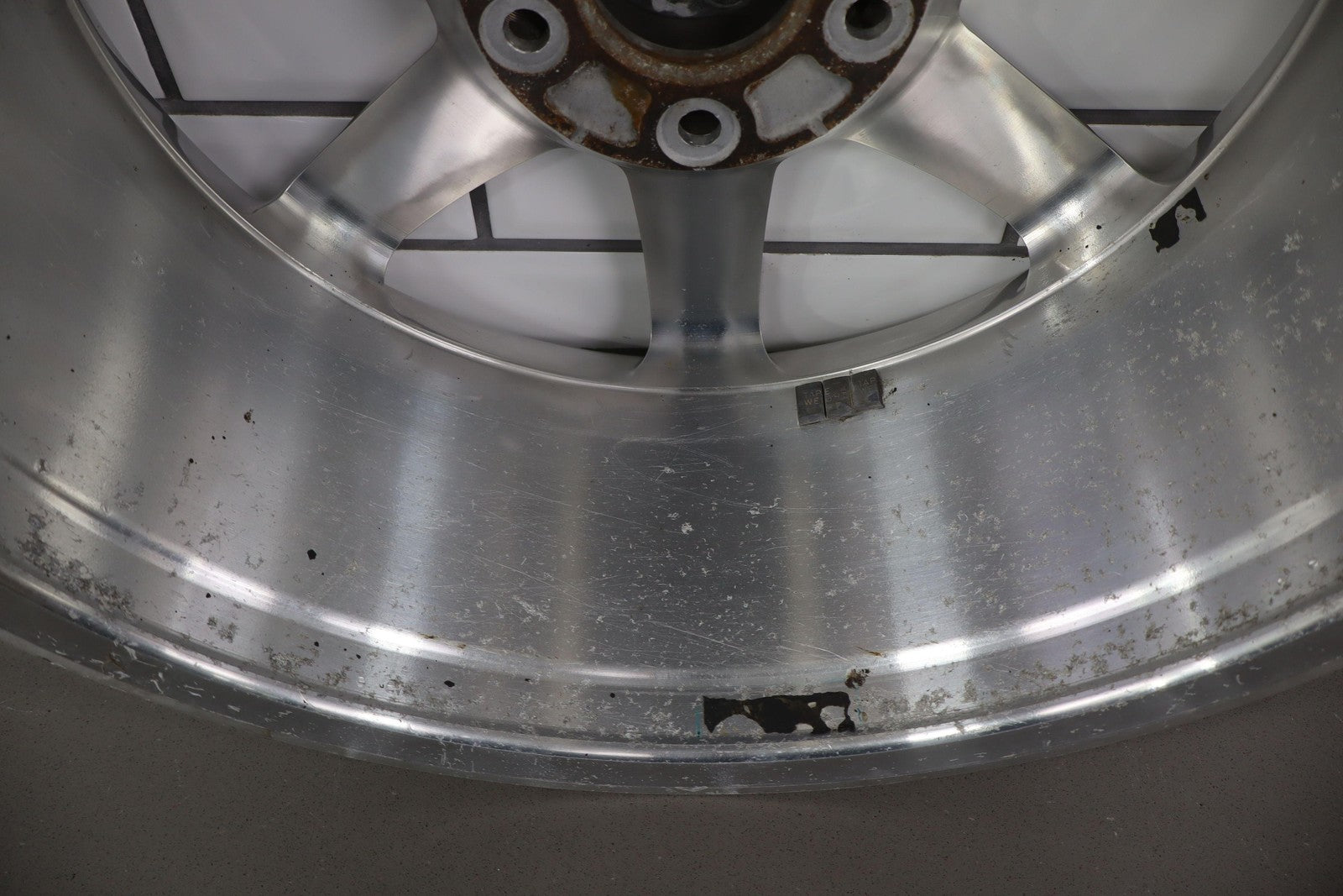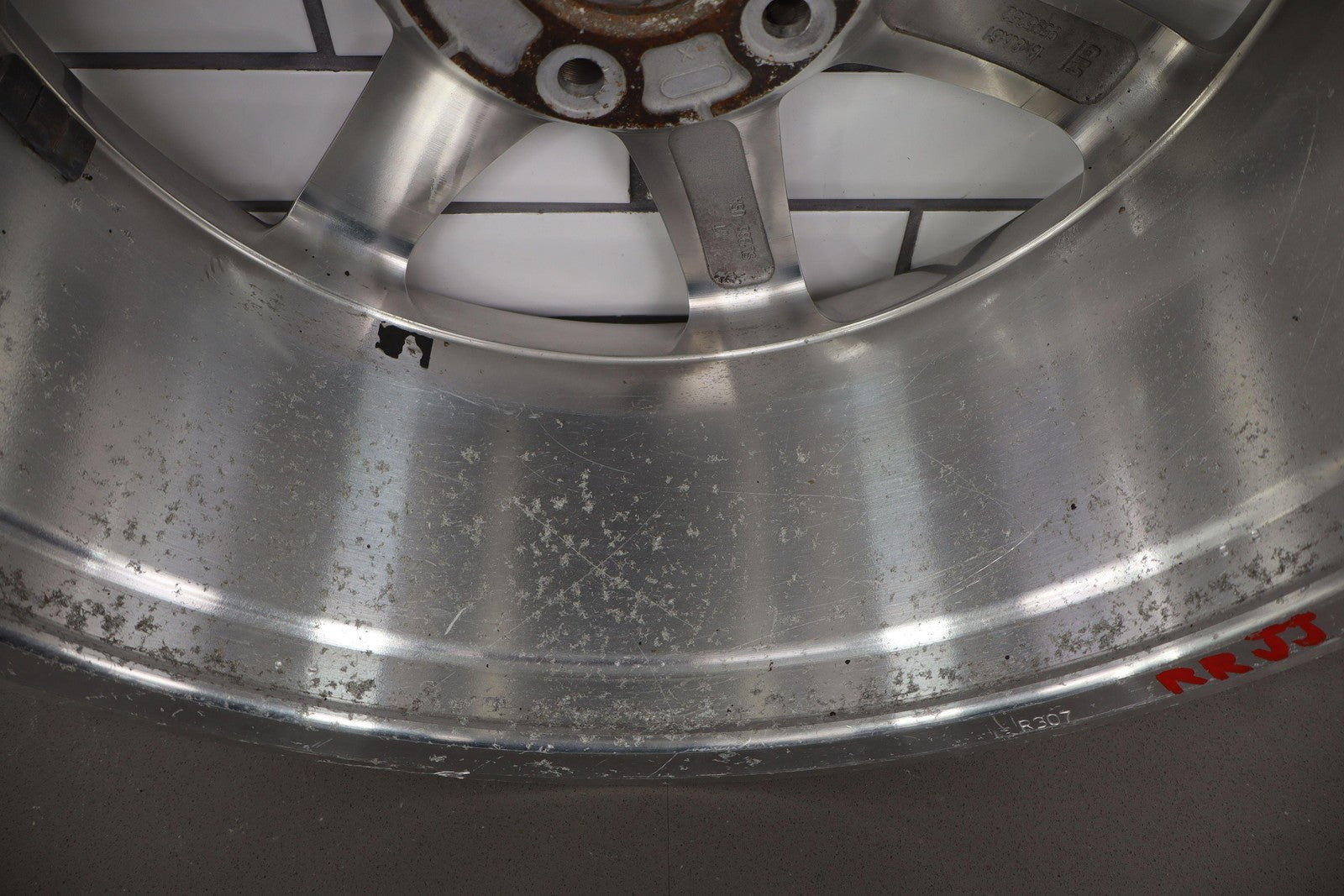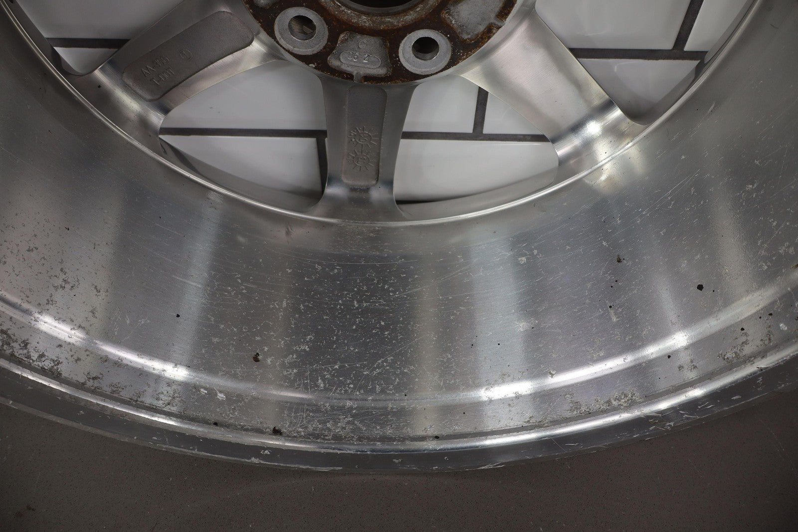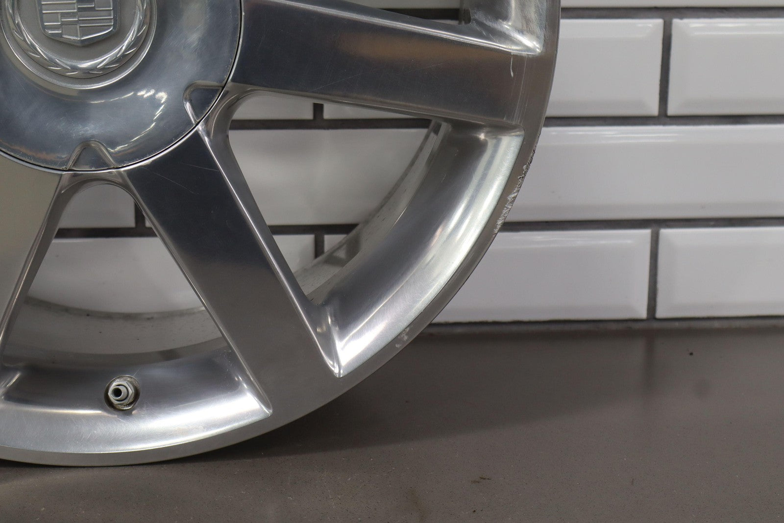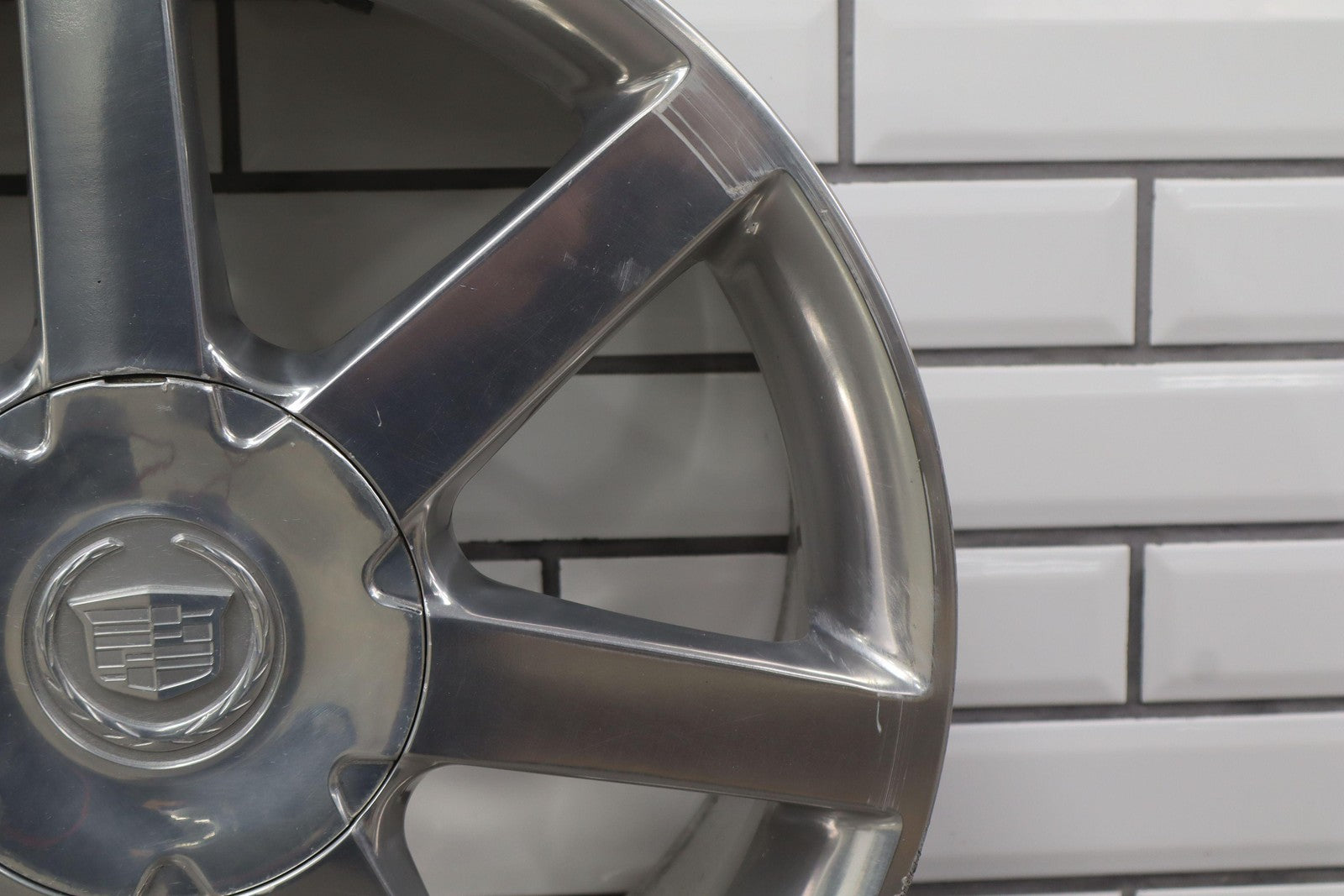 Rh Rear, 18x8 7 Spoke Polished Wheel (opt Qf8), Includes Center Cap, Decent Curb Rash, Mid Scuffs/scratches, Spun True