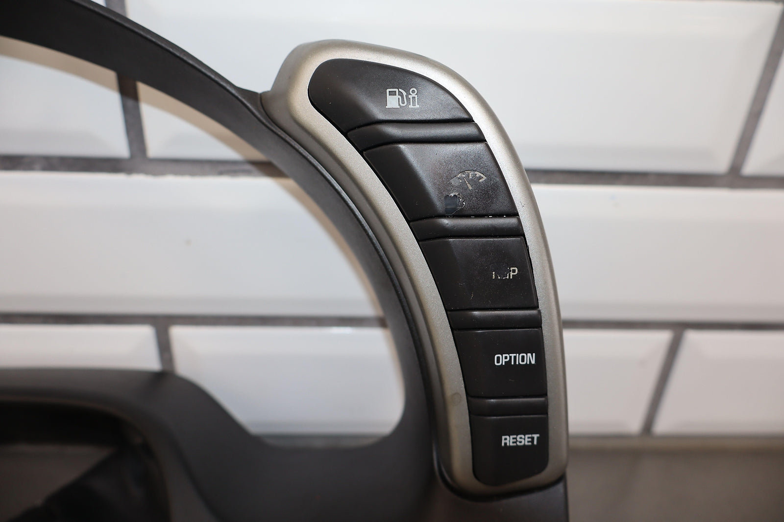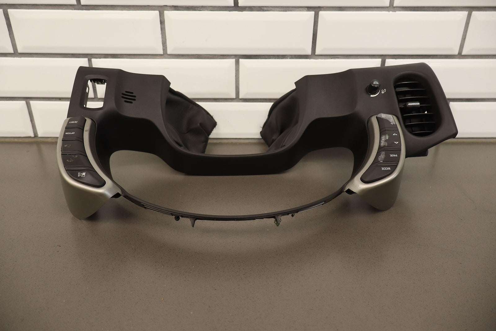 Cluster Bezel, Includes Head-up Display & Drive Info Buttons-lh Ac Vent-dimming Switch, Silver, Heavy Wear To Lettering