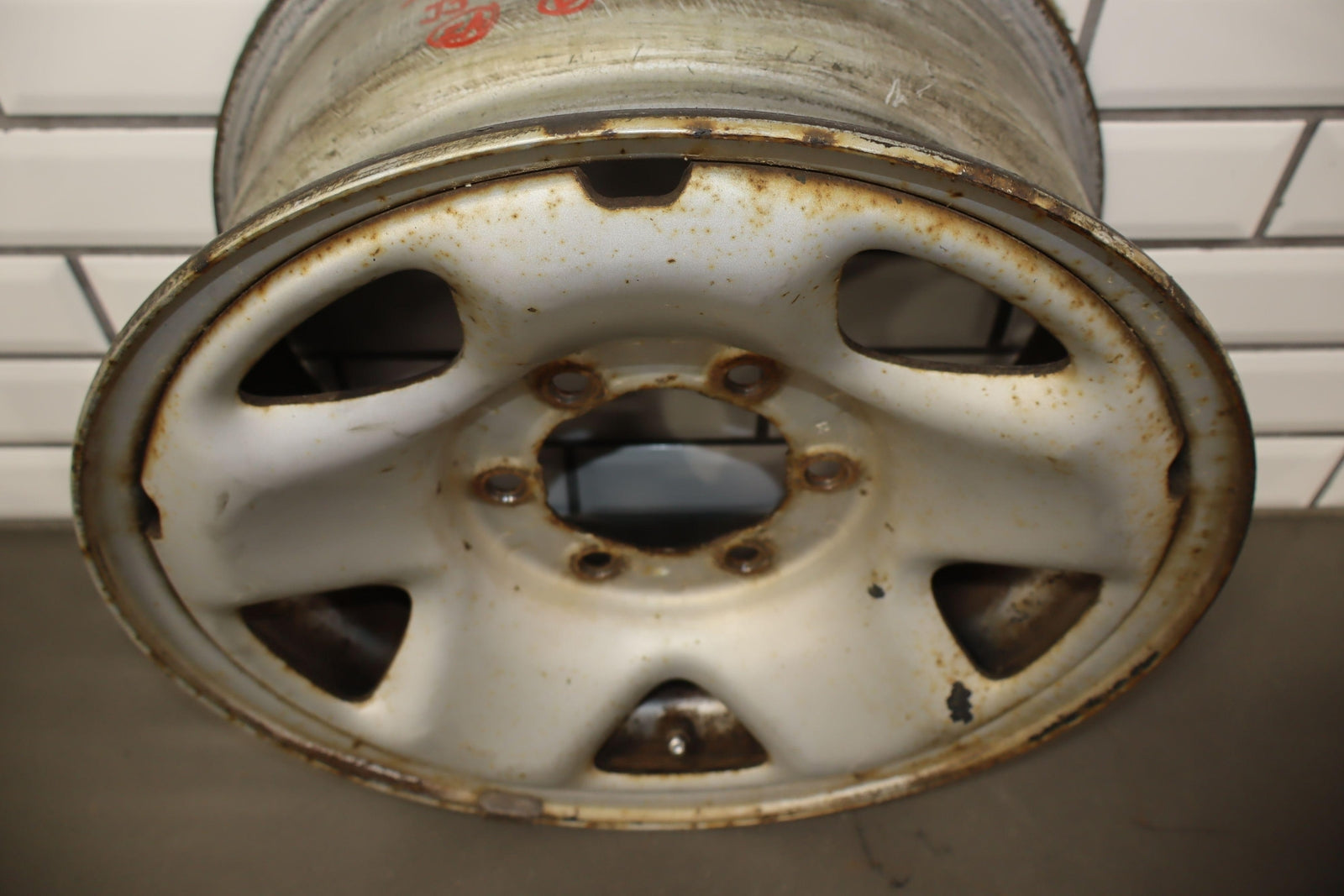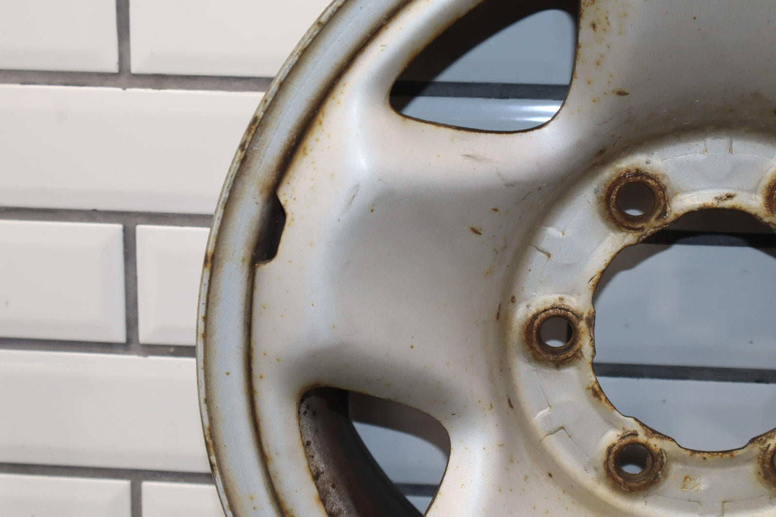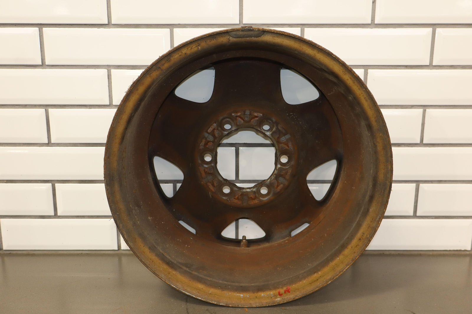 Lh Rear, 16x7 5spoke Steel Wheel, Silver, Mild Surface Rust, Spun True