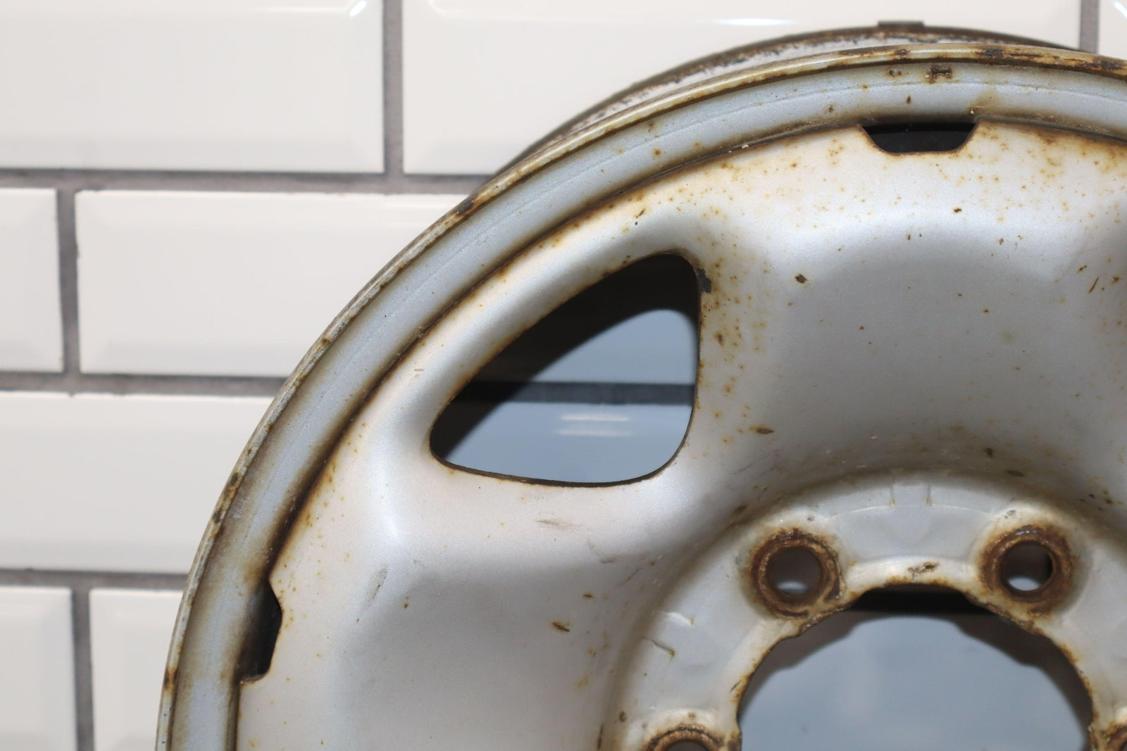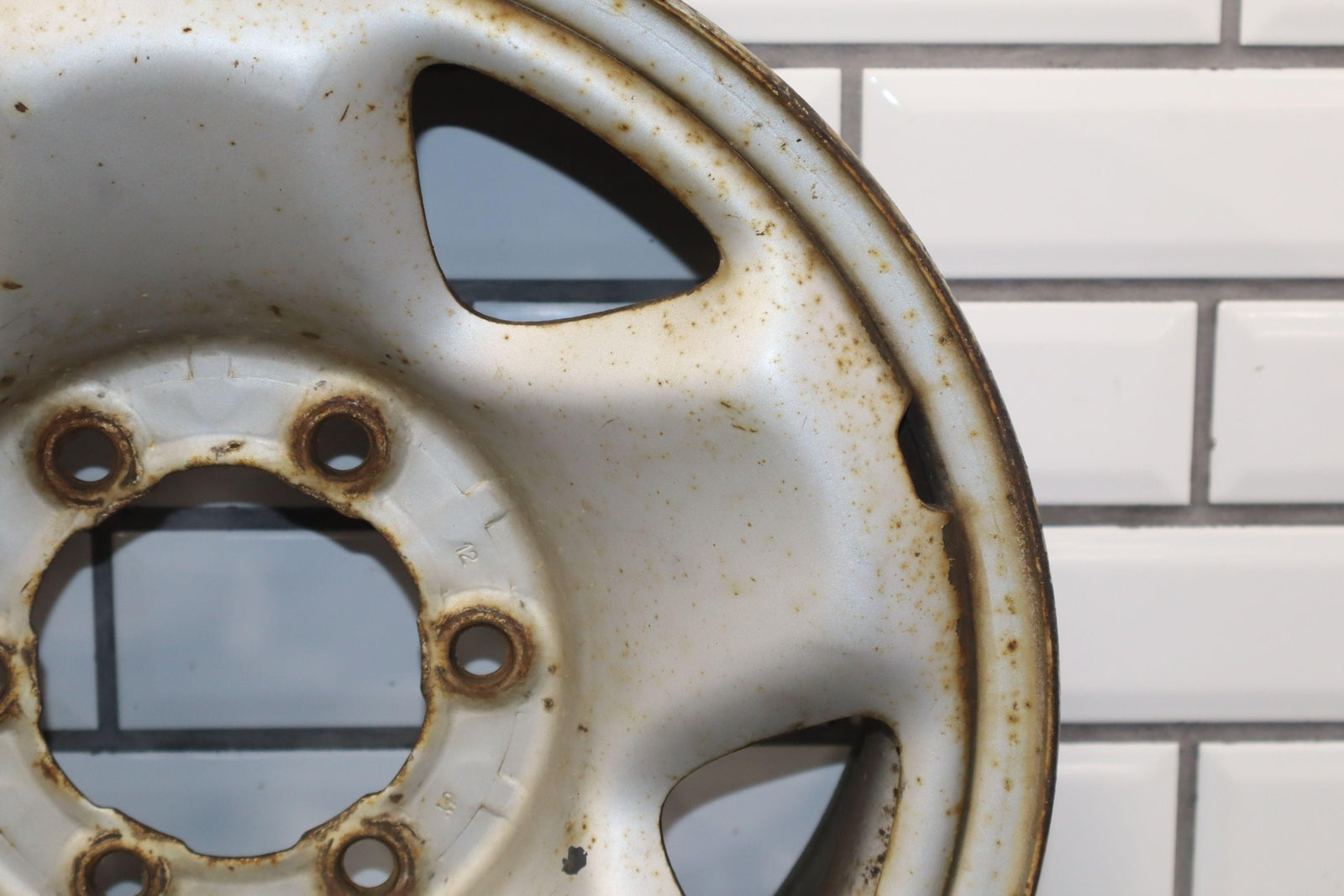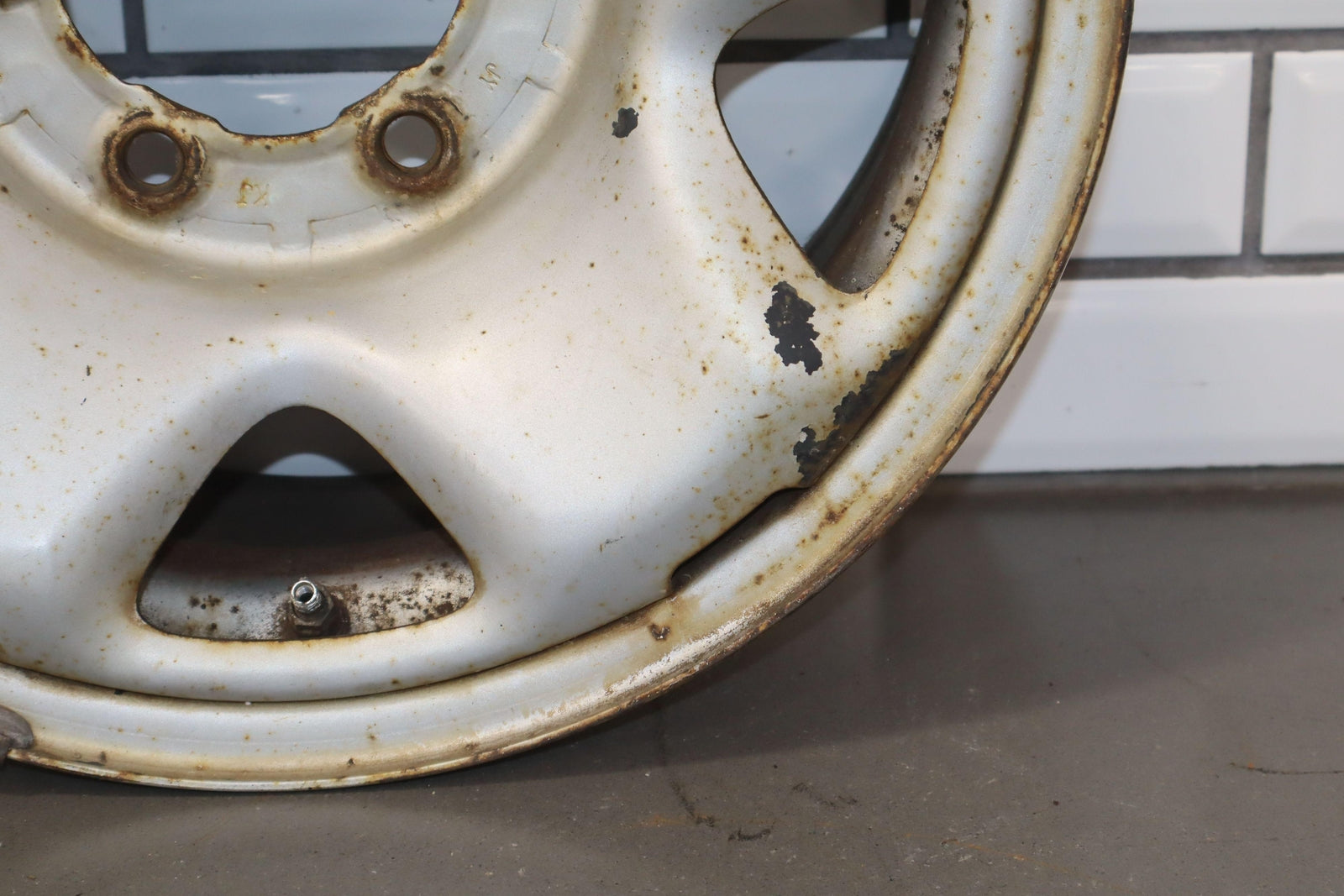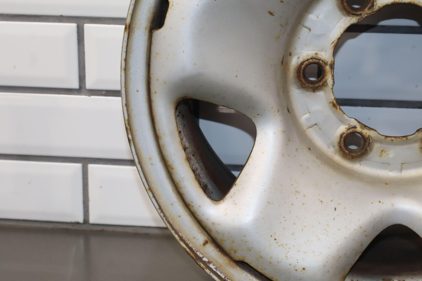 Lh Rear, 16x7 5spoke Steel Wheel, Silver, Mild Surface Rust, Spun True