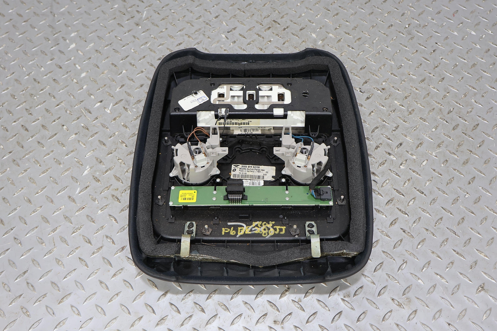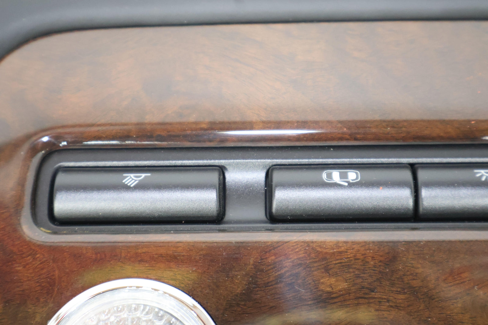 Rear Roof Console, Black Leather W/woodgrain, Clean Button Lettering, Mounted Solid