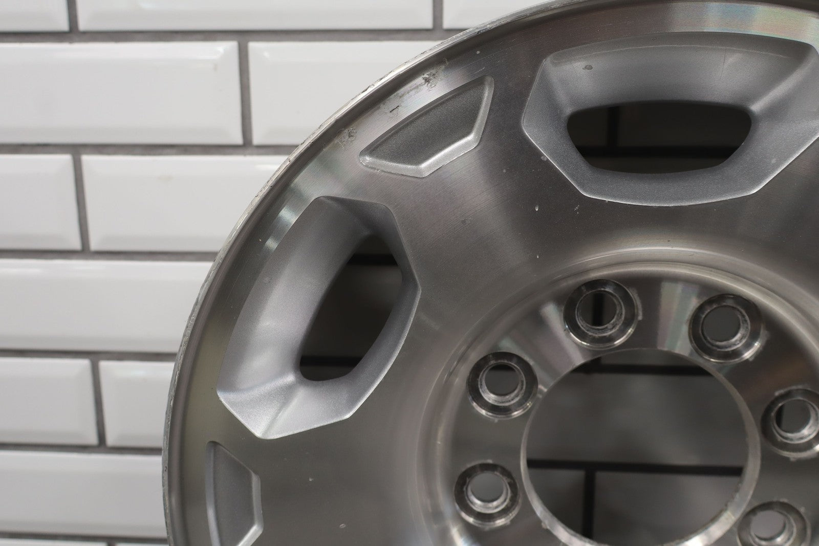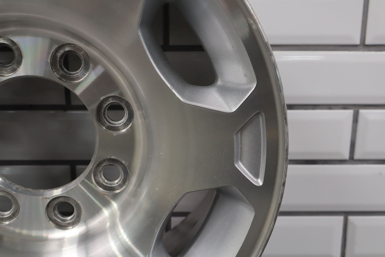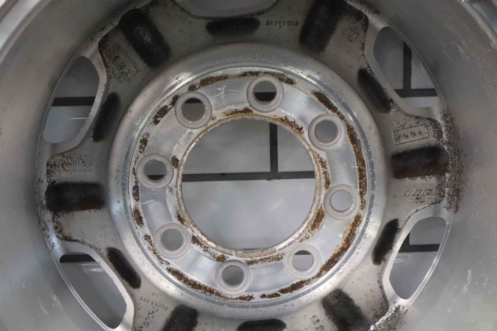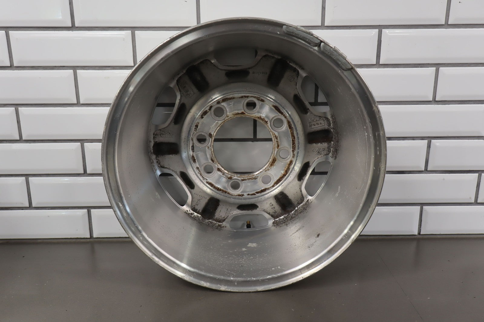 Lh Front, 17x7.5 8 Spoke Wheel (n89), Multiple Light Knicks To Face, Some Corrosion Near Valave Stem, Spun True