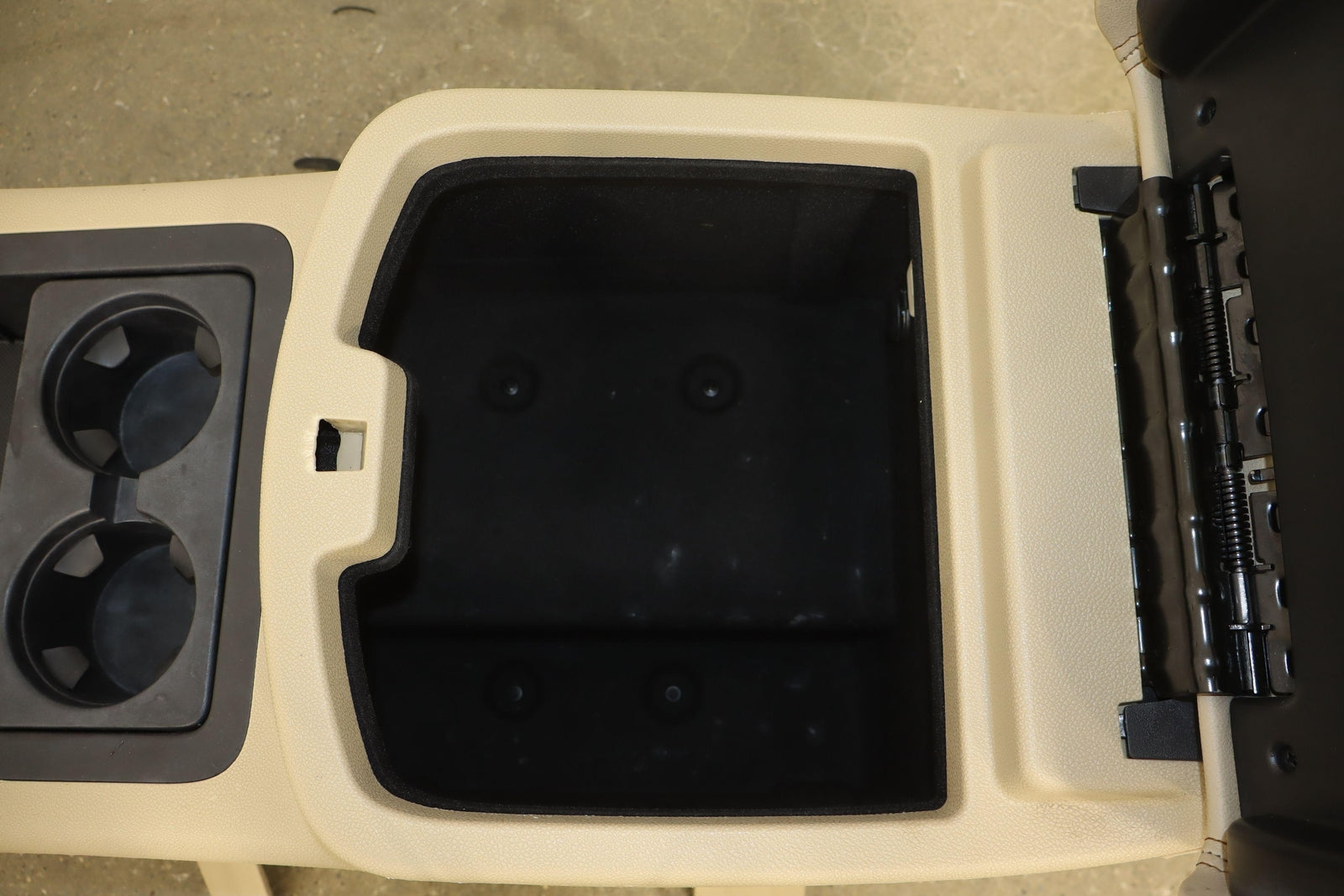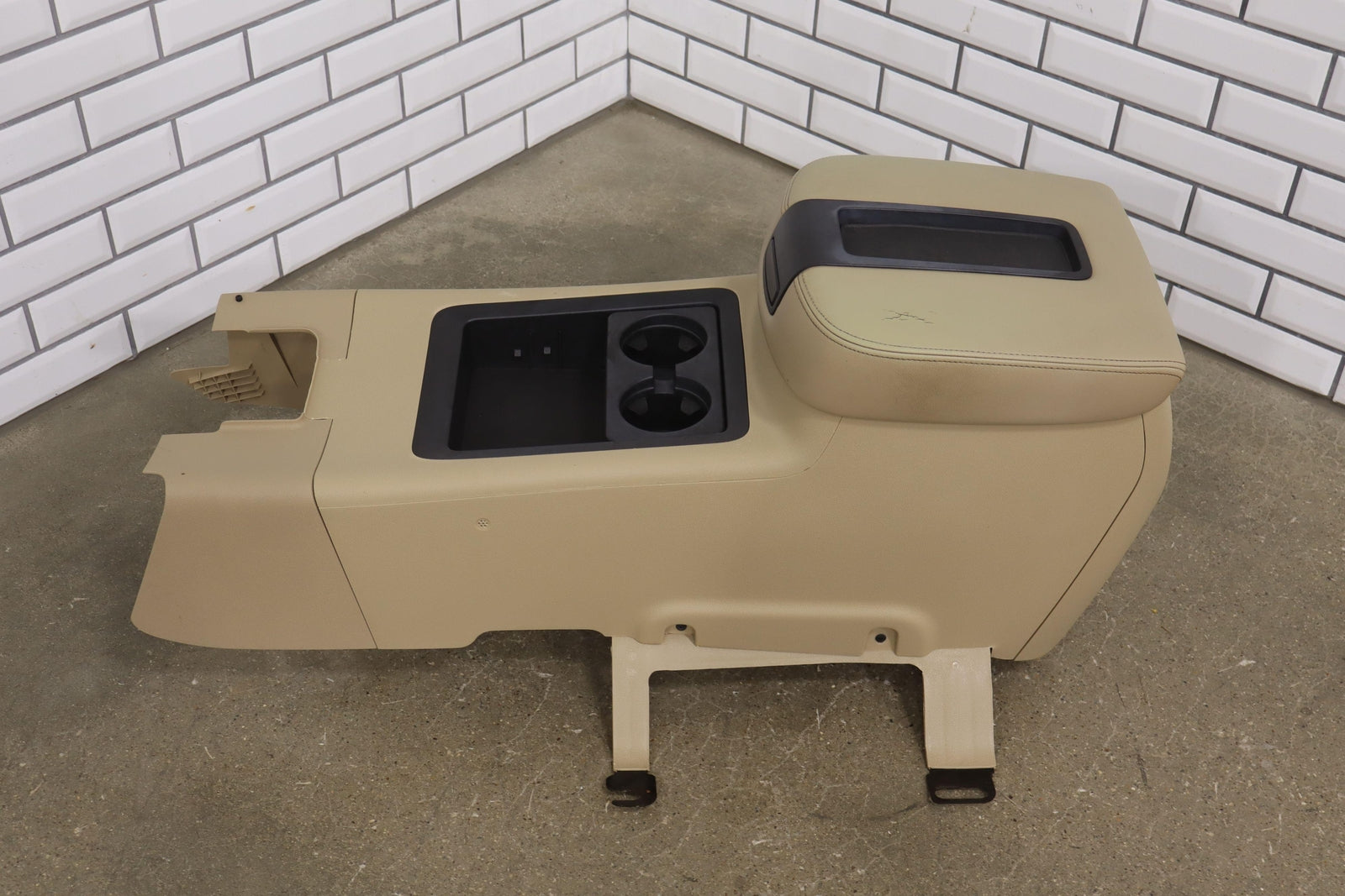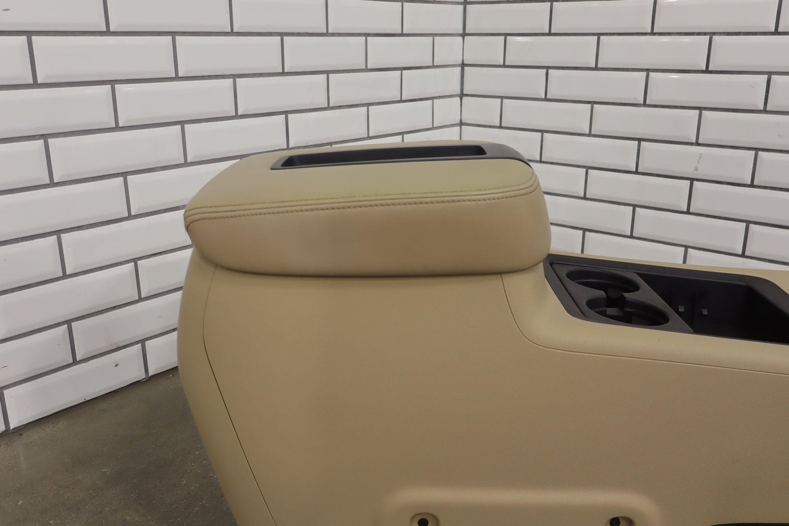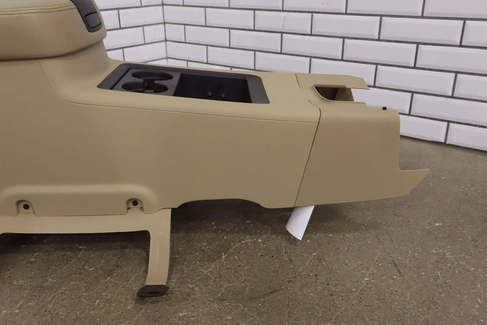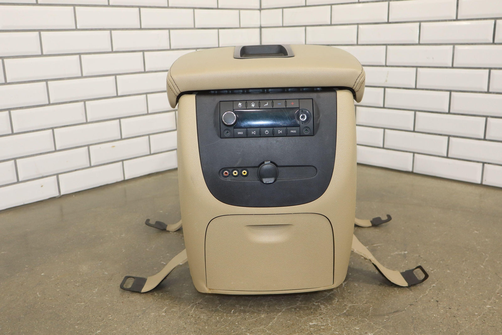Floor Console, Cashmere (333), Entertainment Center (opt U42), Light Staining, Mild Arm Rest Wear, Couple Knicks, Mounted Solid