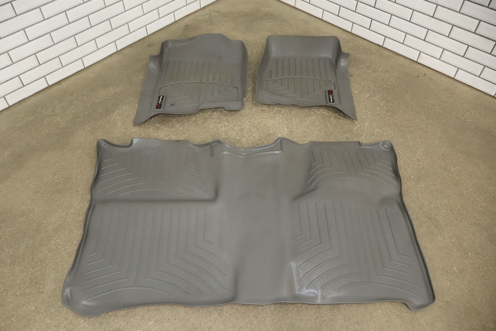 Aftermarket Weathertech All Weather Crew Cab Mat Set, Titanium (833), Mild Signs Of Wear, Light Staining