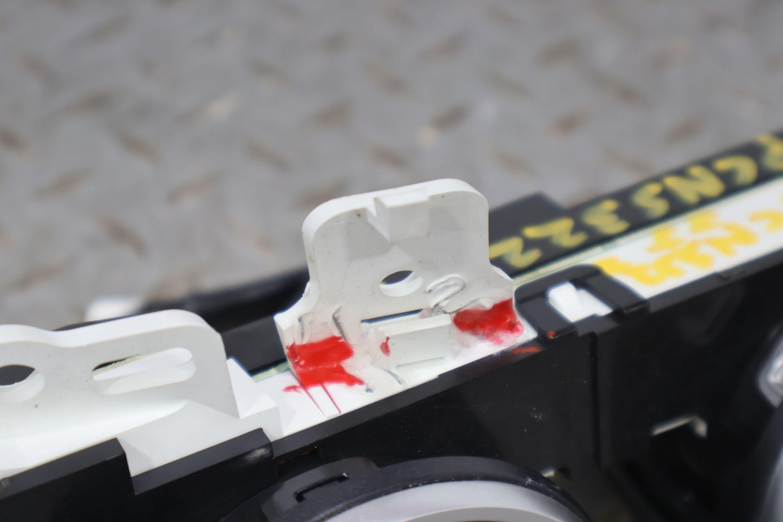Important notes: 370z Dash Mounted Triple Gauges (temp-volt-clock) 1 Repaired Tab (marked Red)