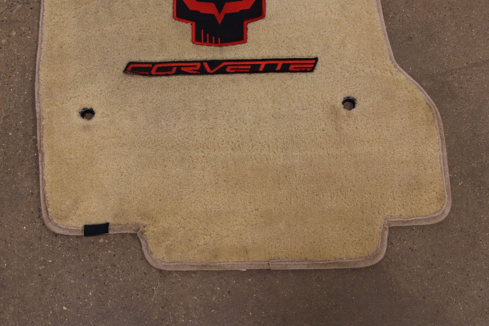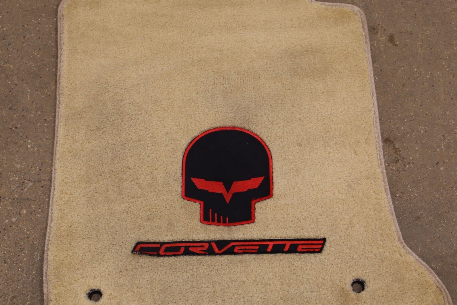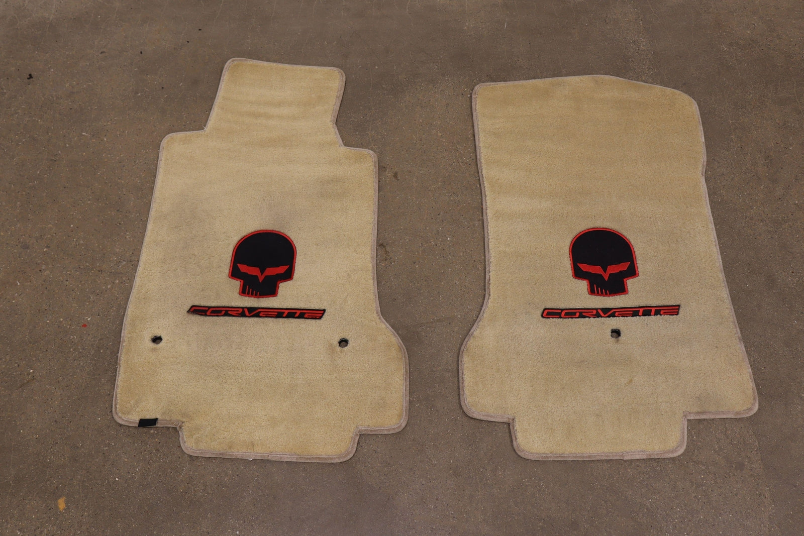 Lh-rh Pair, Beige Lloyd Mats Carpet Floor Mats, Jake Skull & Corvette Emblem, Mild Signs Of Wear, Light Staining