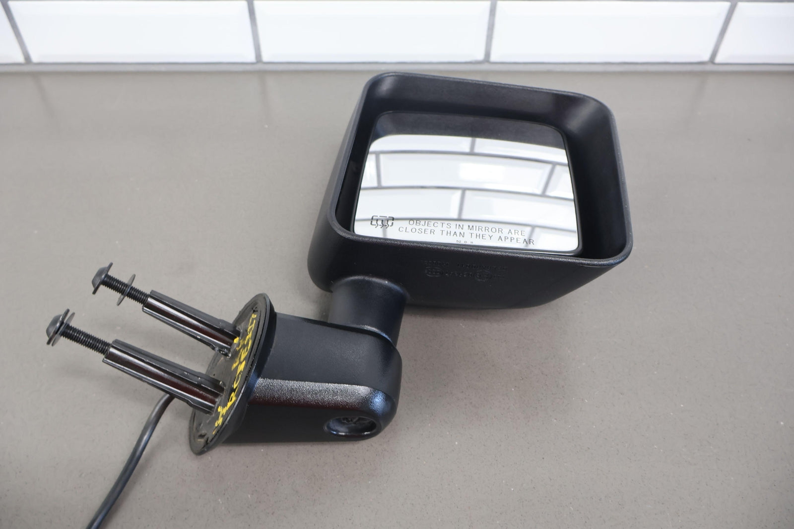 Rh, Black Textured Plastic, Power/heated, Clean Mirror Glass, Couple Scratches/scrapes, Mounted Solid