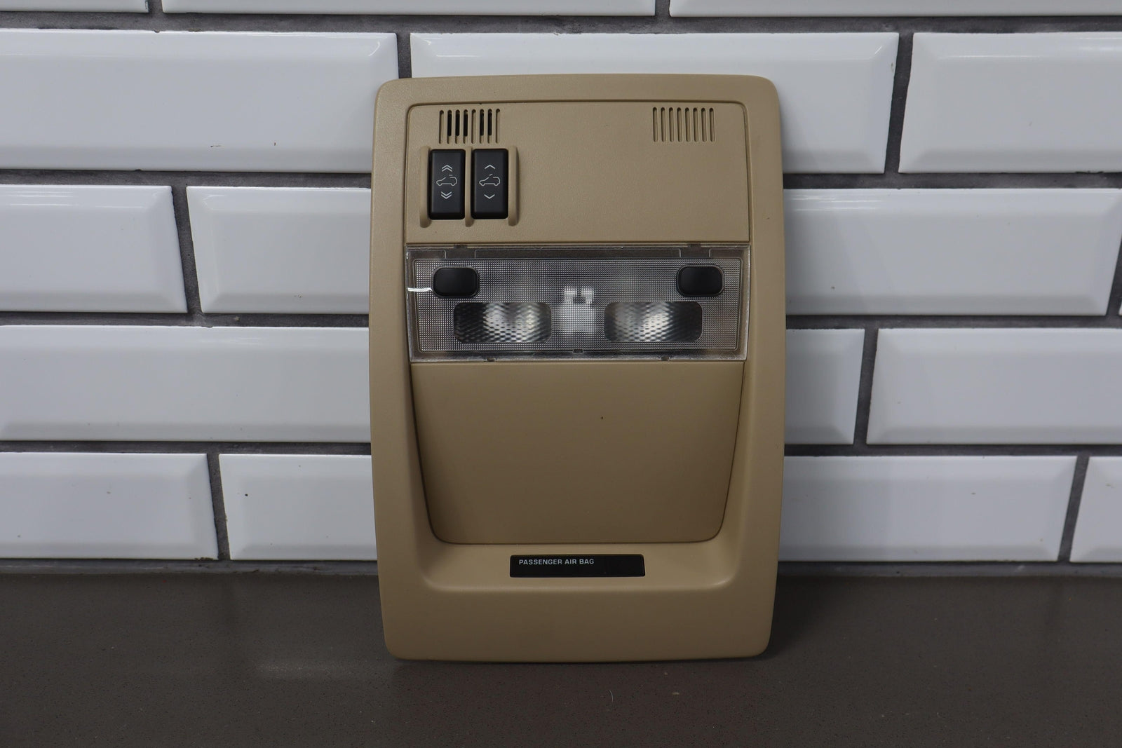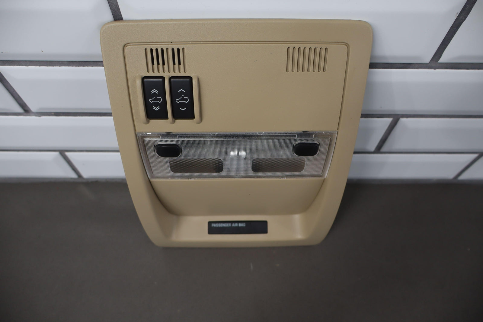 Important notes: Roof Console, W/sunroof, Cashmere (333), Clean Lettering, Mounted Solid, Tested, Functions Properly