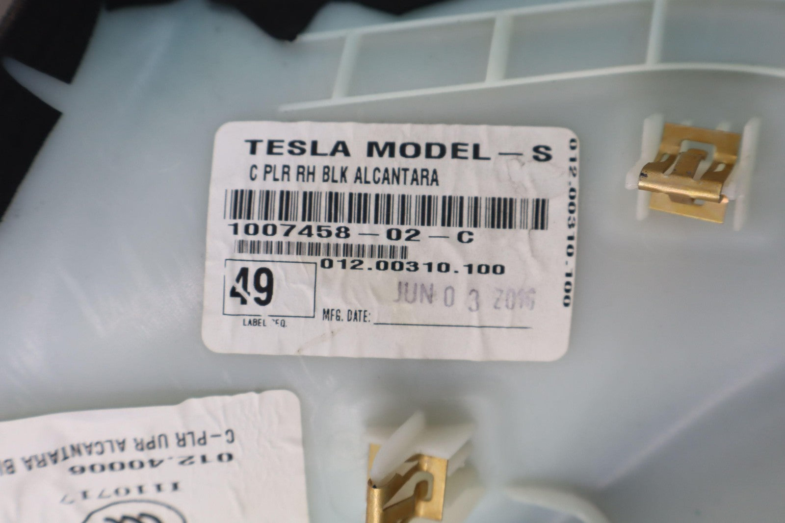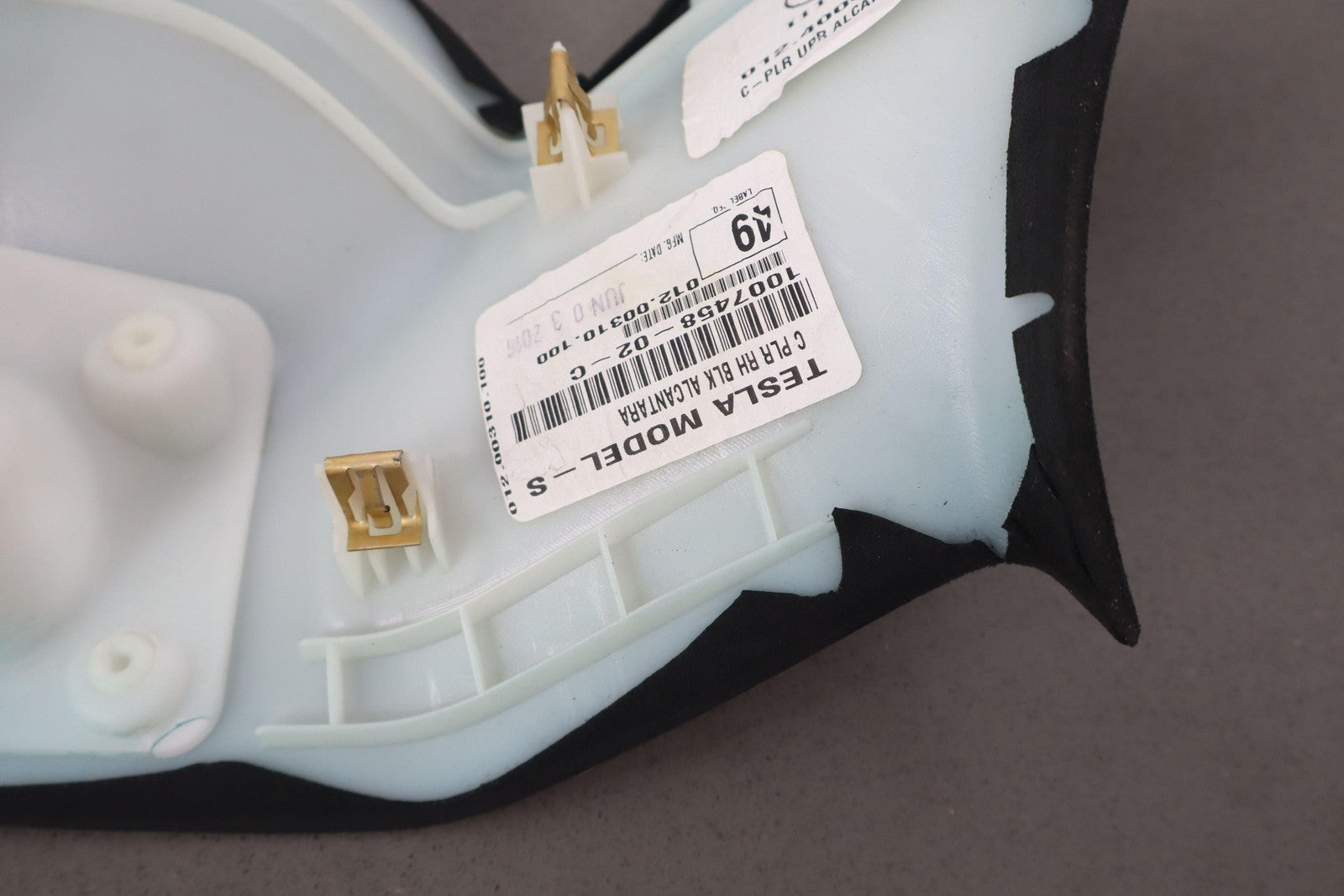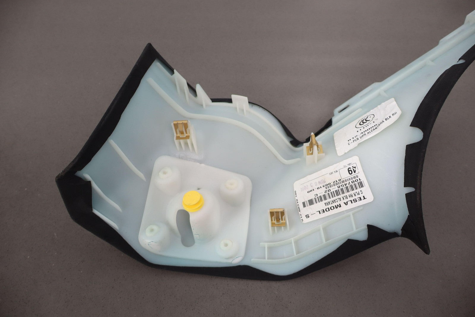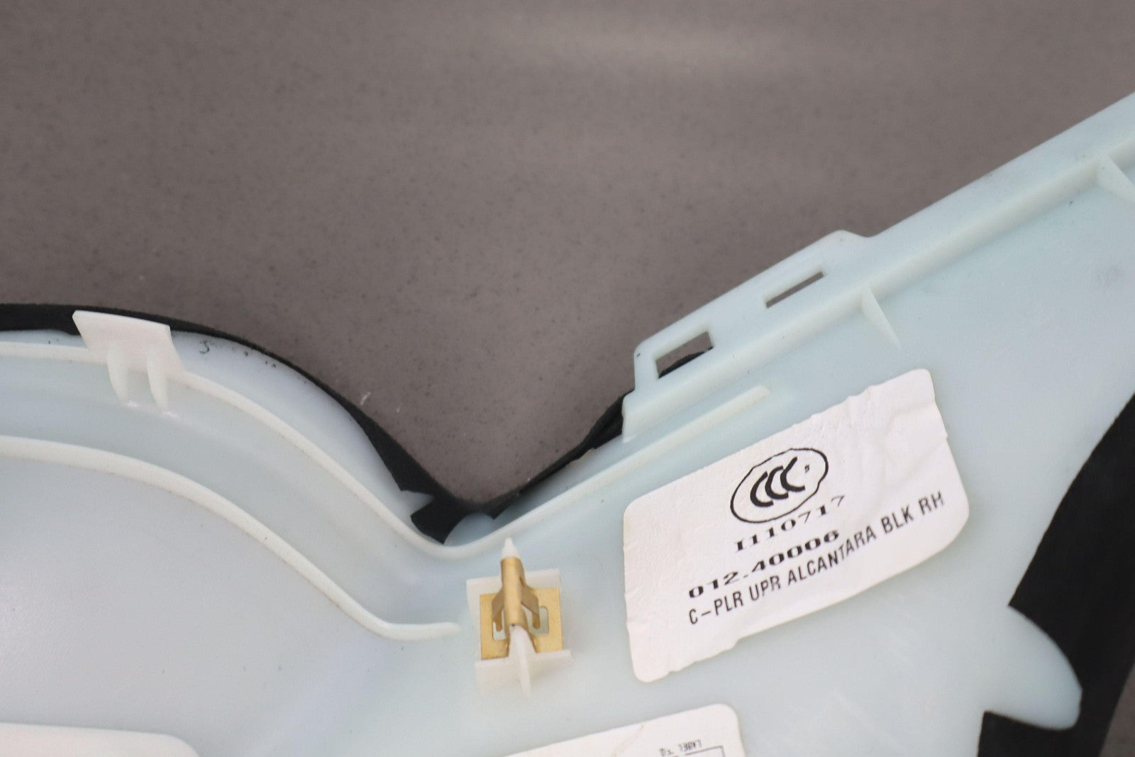 Rh Upper C Pillar Trim, Black Suede, Mild Wear, Mounted Solid,1007458-02-c
