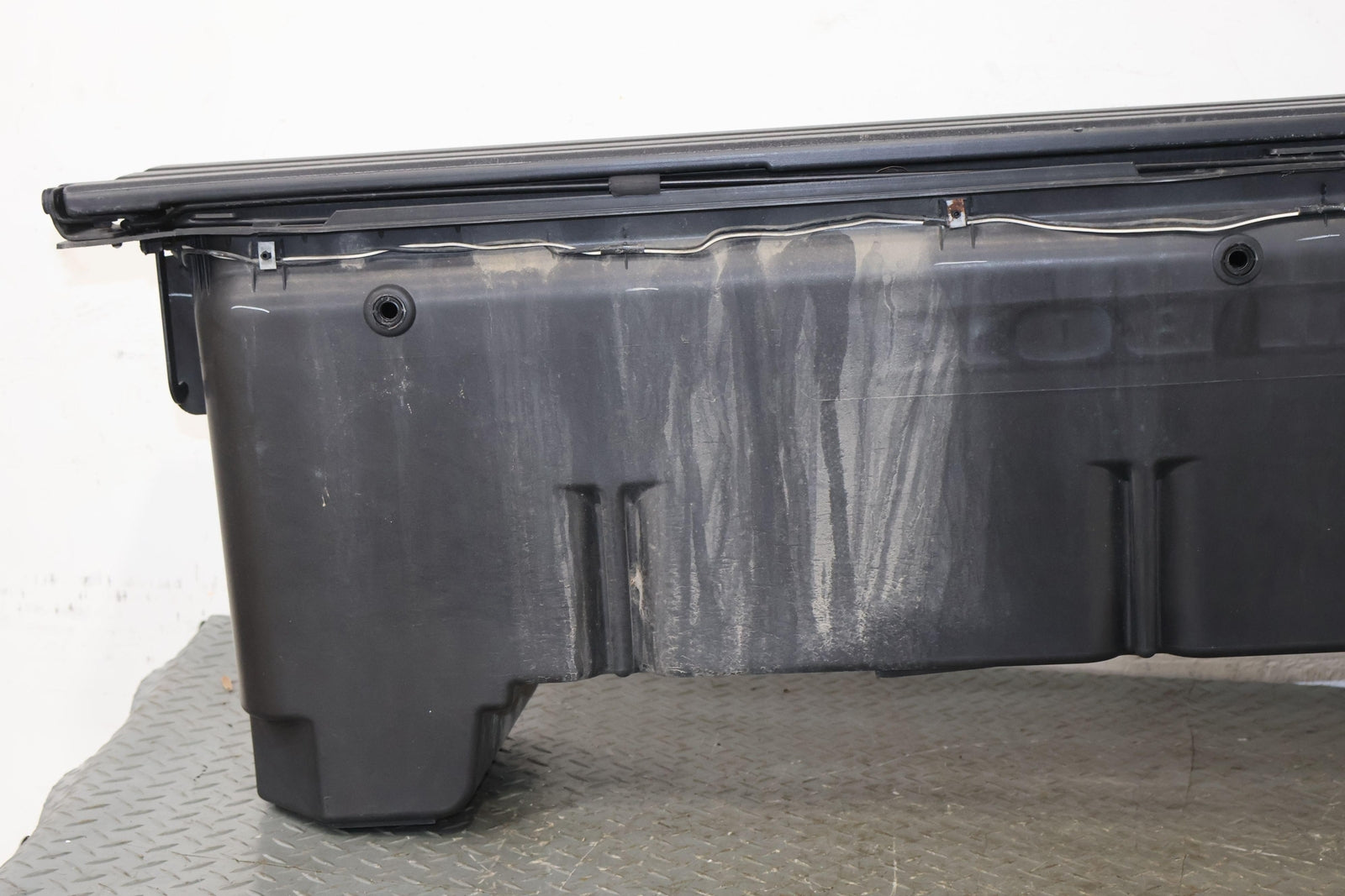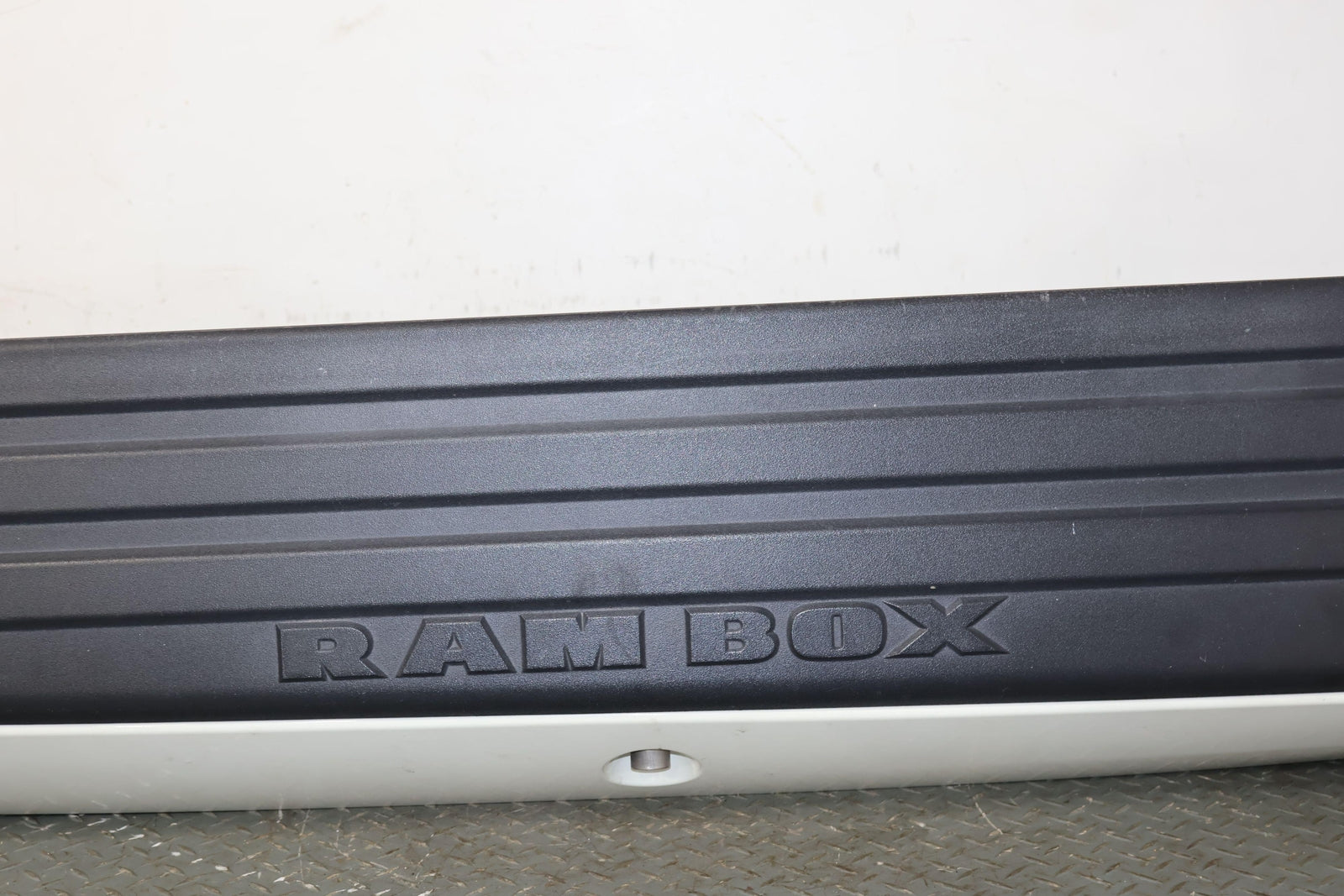 Rh Ram Box, Pearl White (pxq), Light Sun Fade To Black Textured Plastic, Latch Functions Properly, Mounted Solid