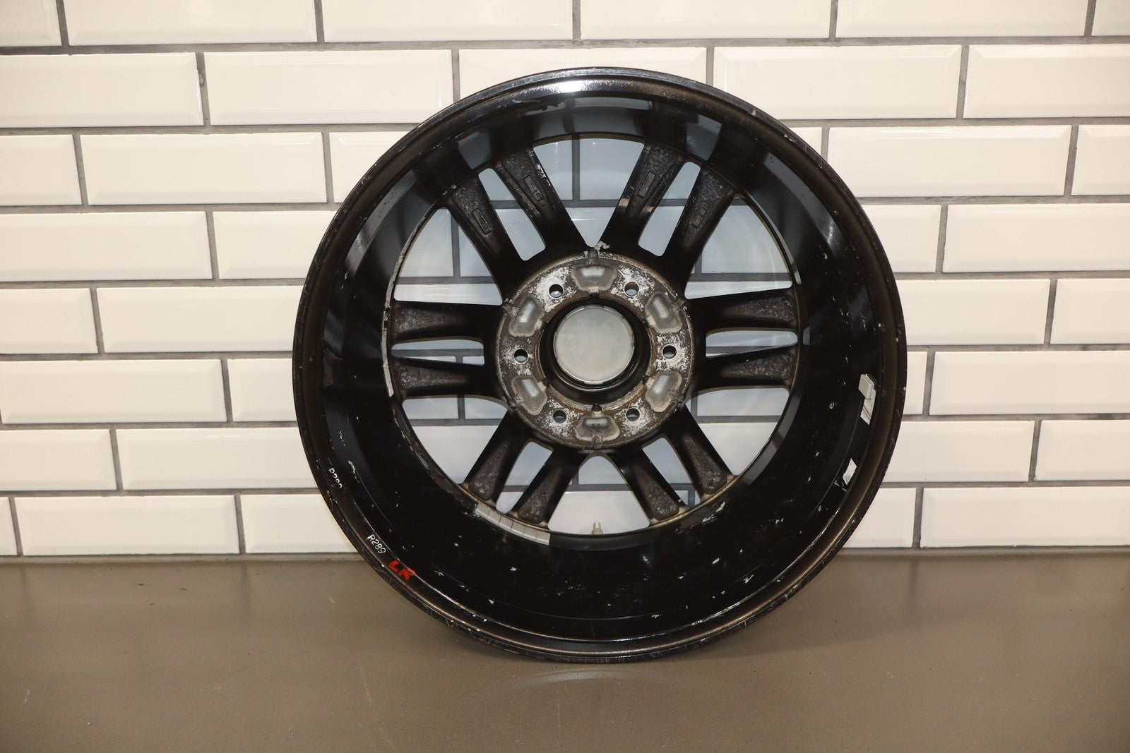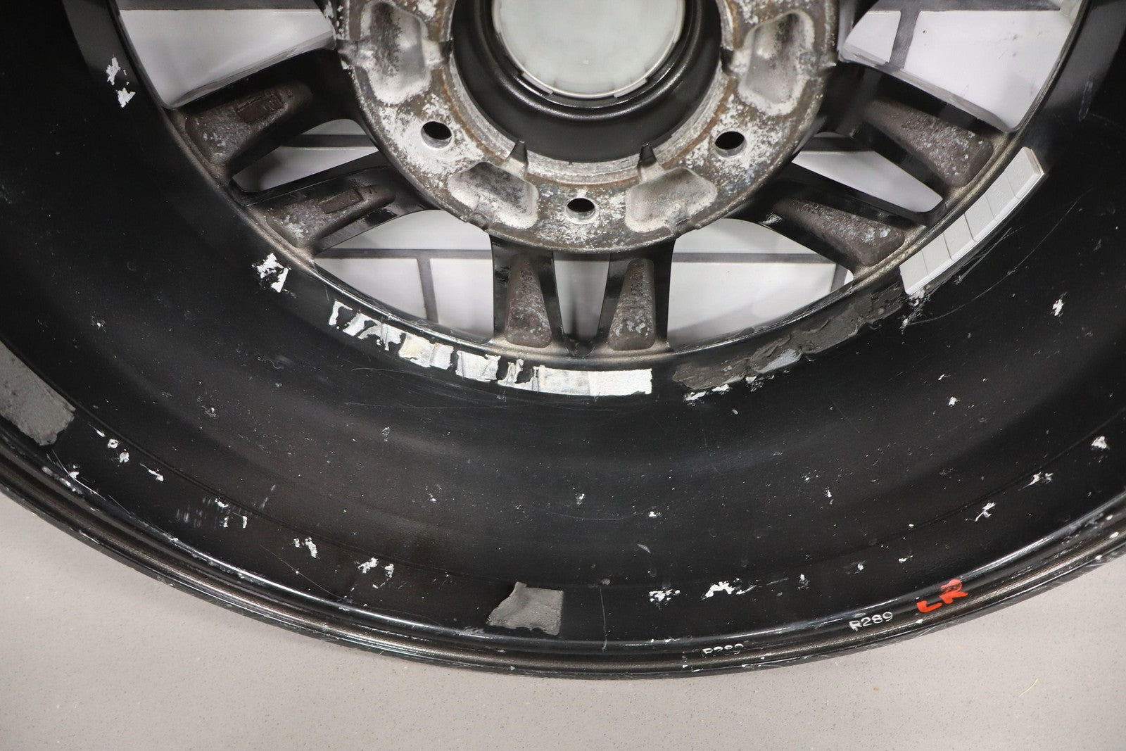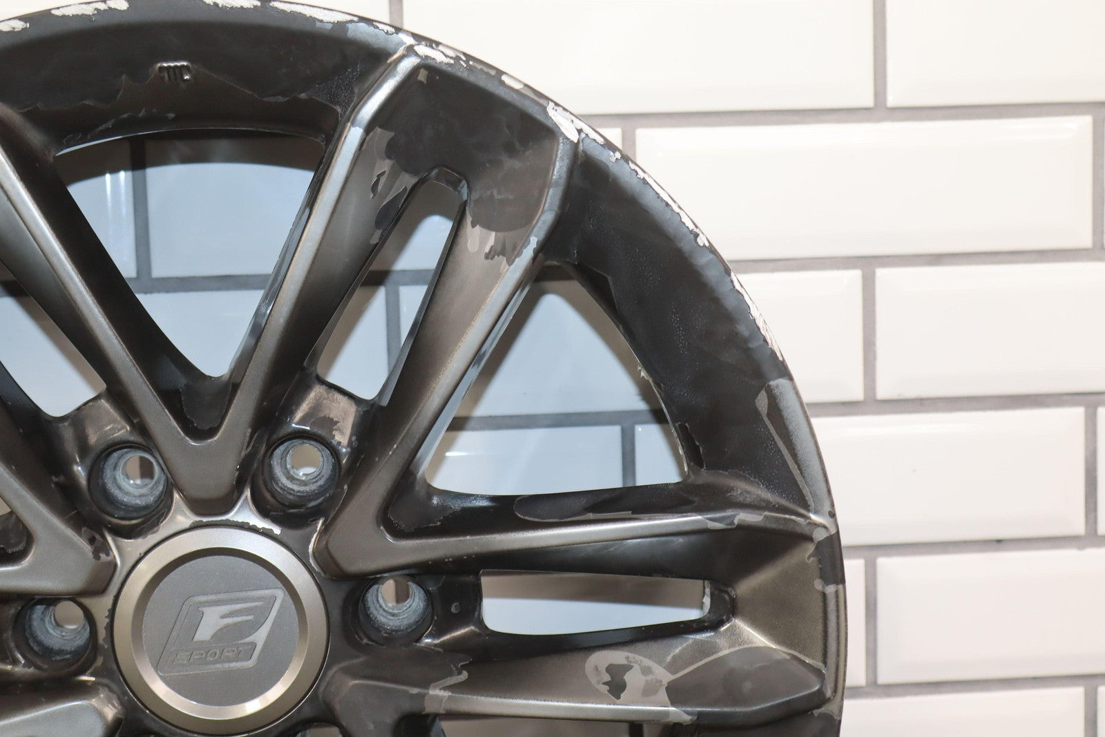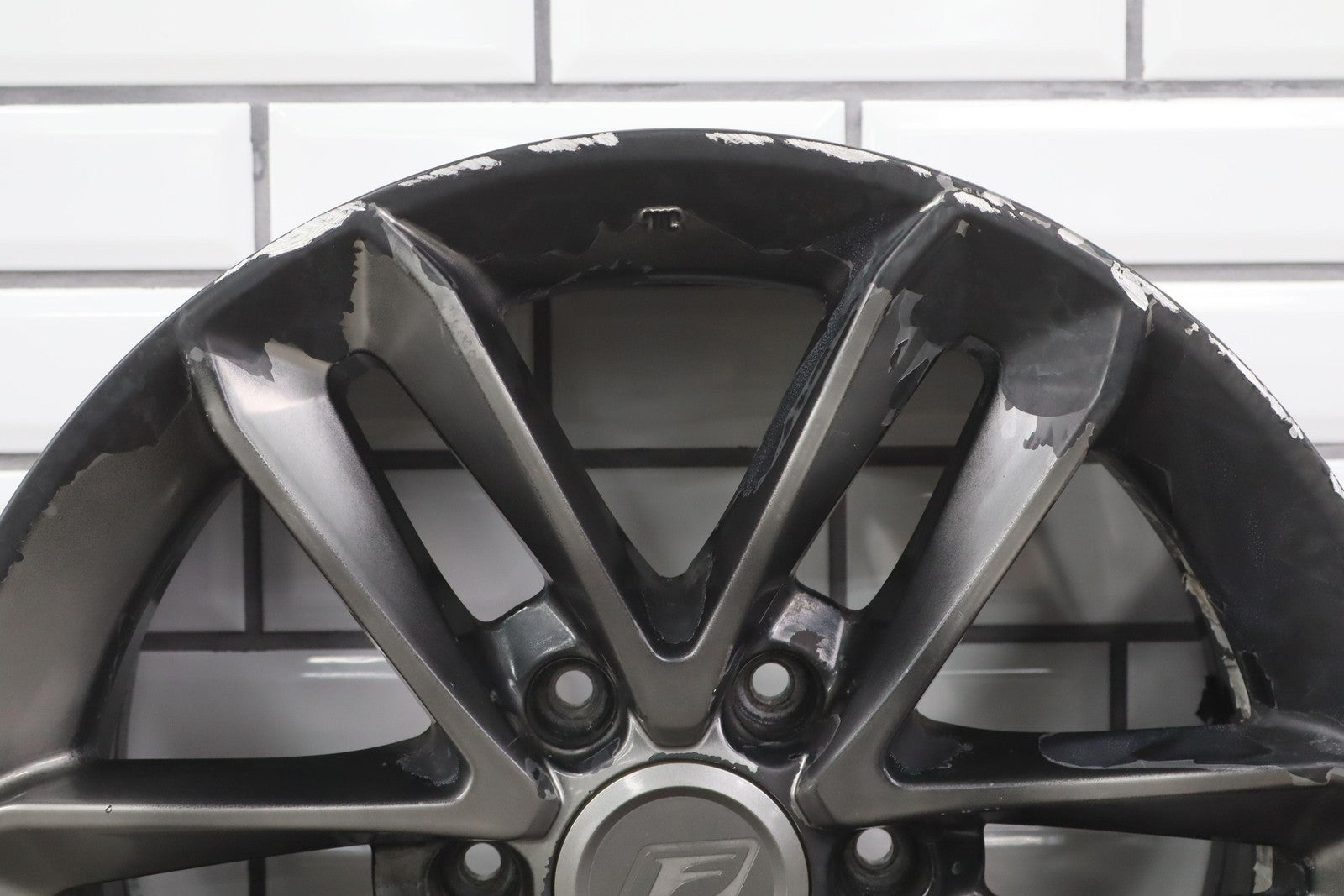 Lh Rear, 18x7.5 Split 6 Spoke Wheel, Gunmetal, Some Curb Rash, Heavy Finish Peel, Spun True