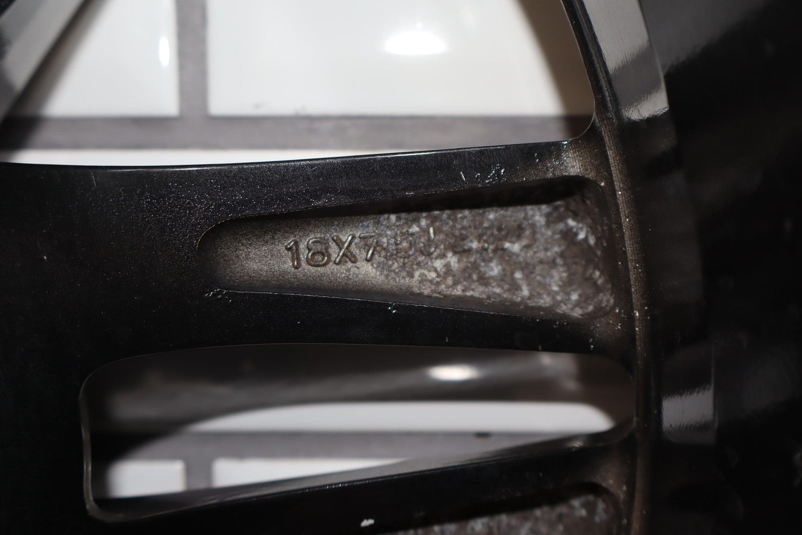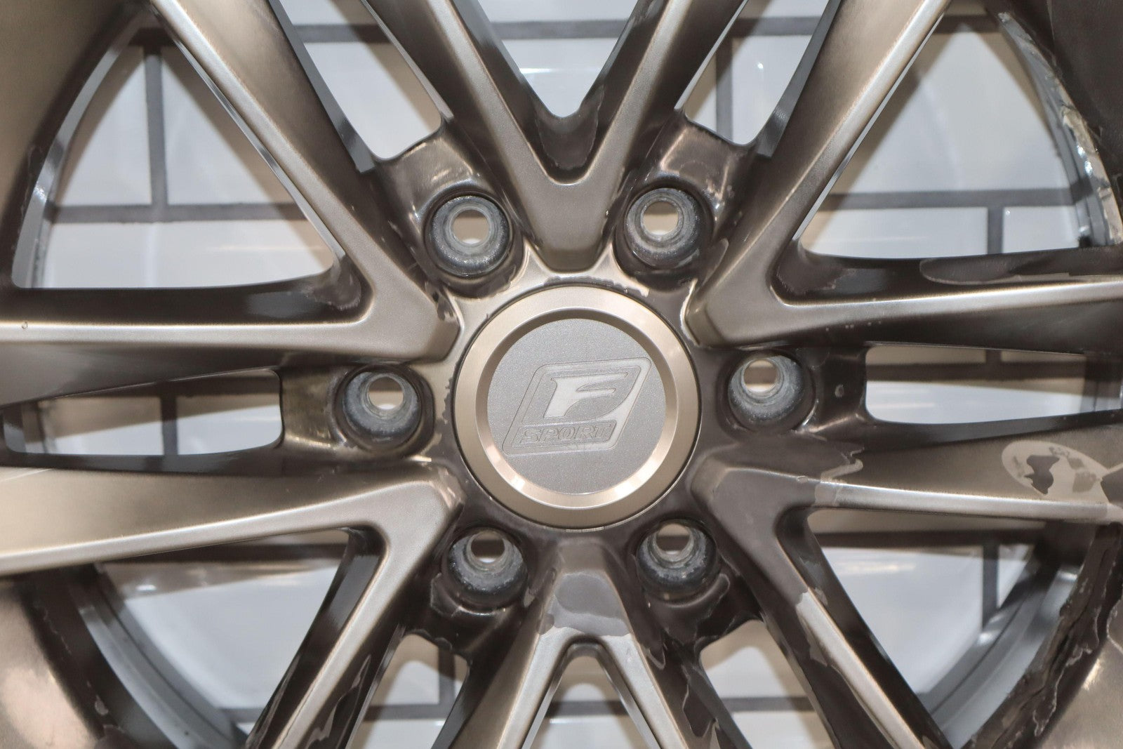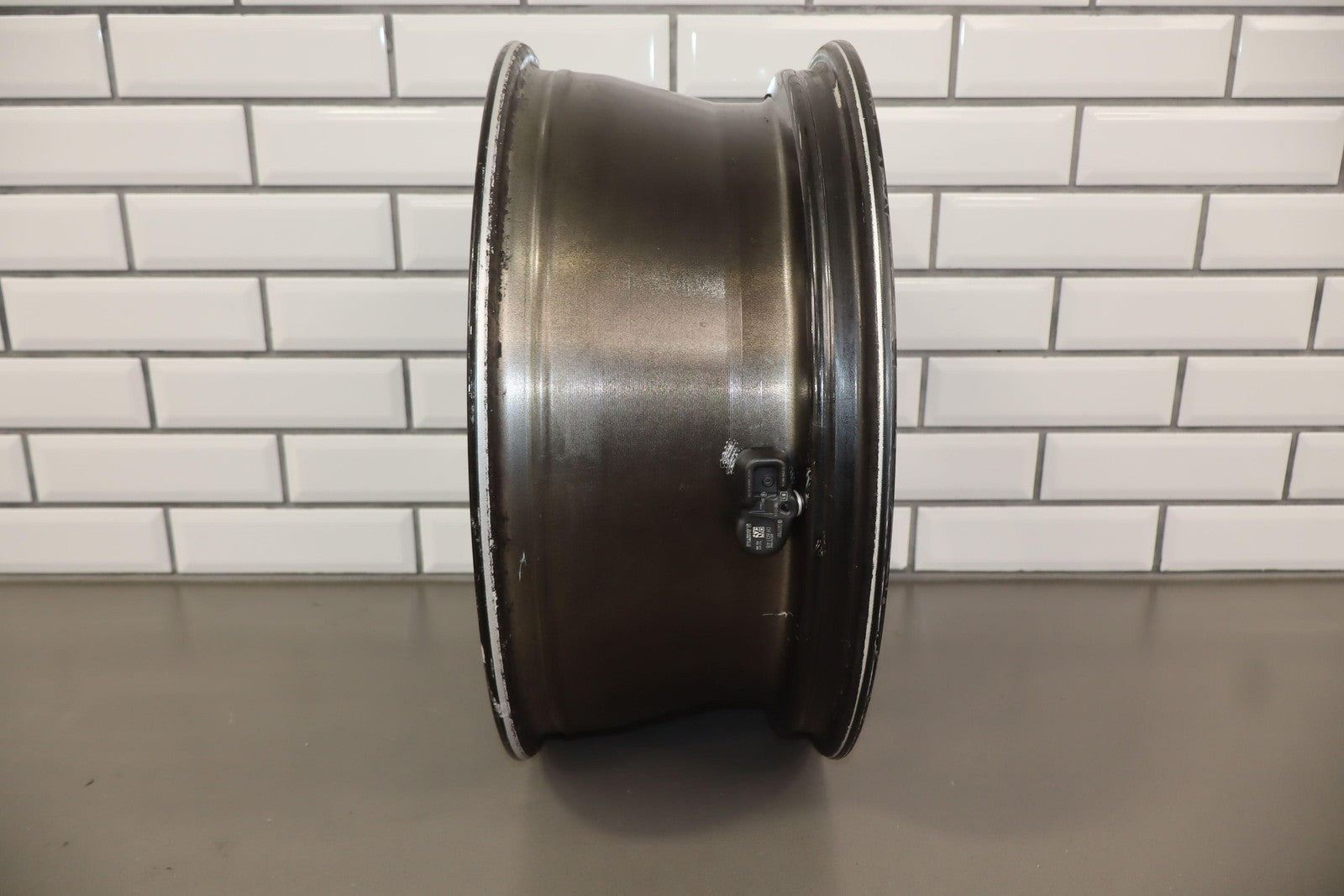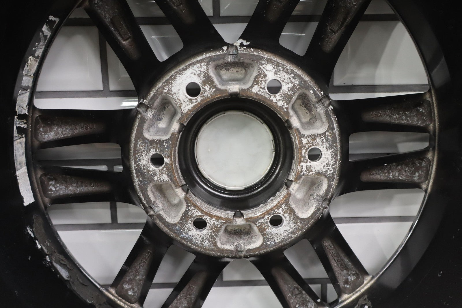 Lh Rear, 18x7.5 Split 6 Spoke Wheel, Gunmetal, Some Curb Rash, Heavy Finish Peel, Spun True