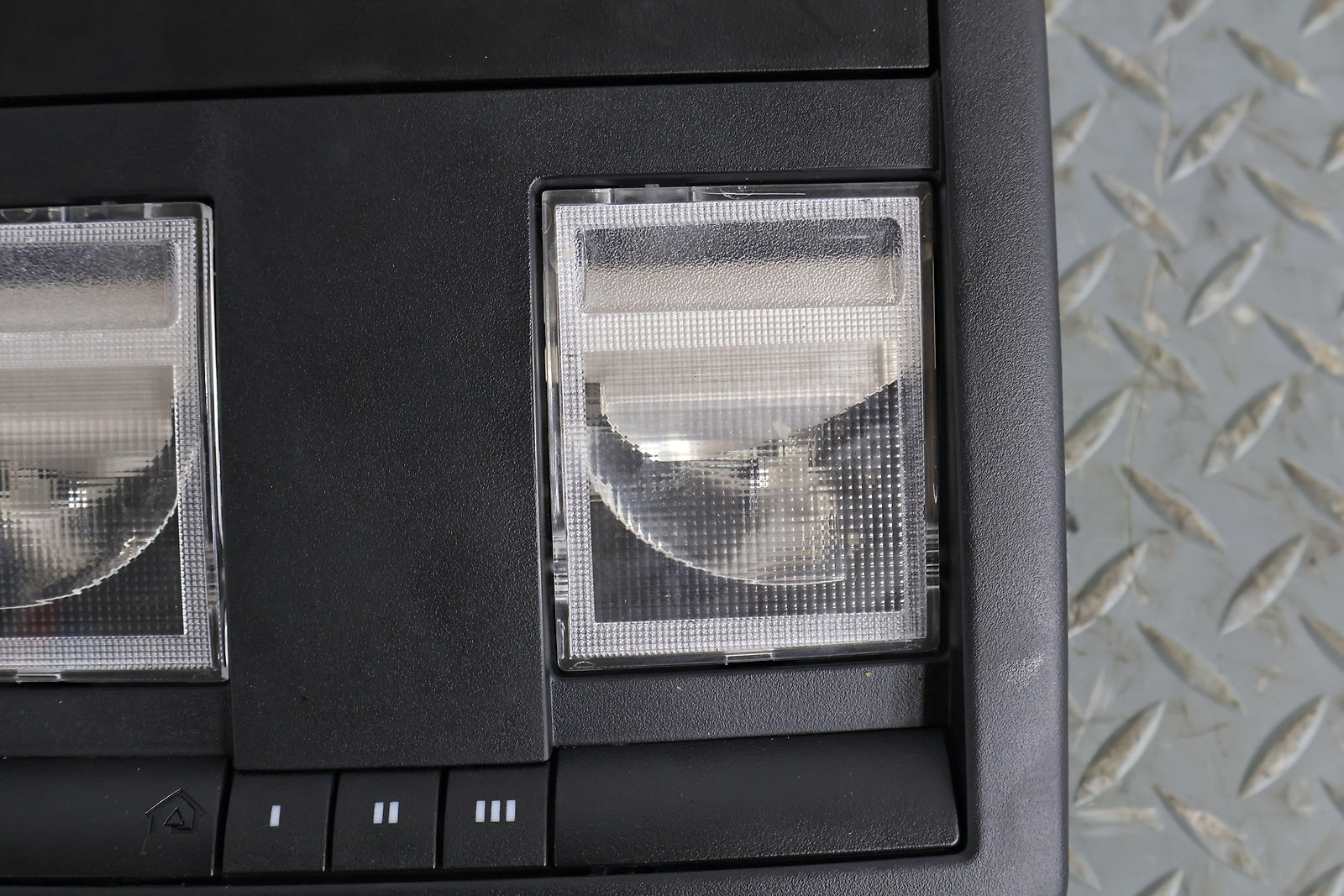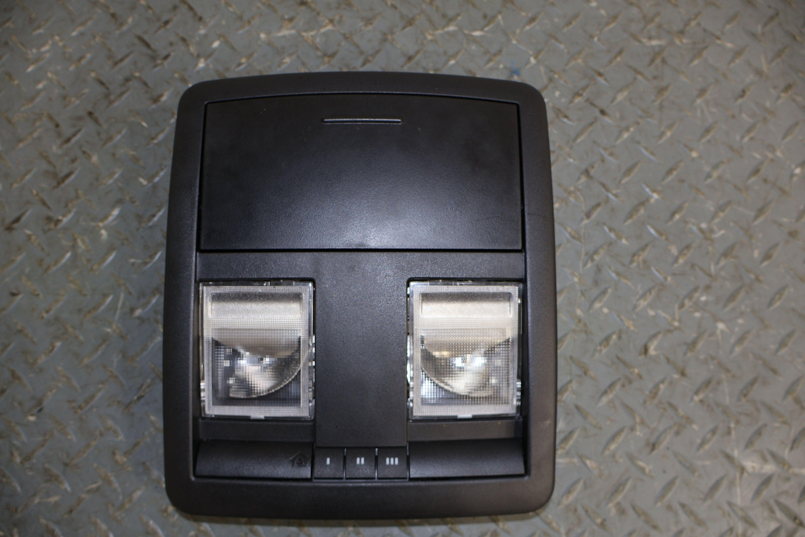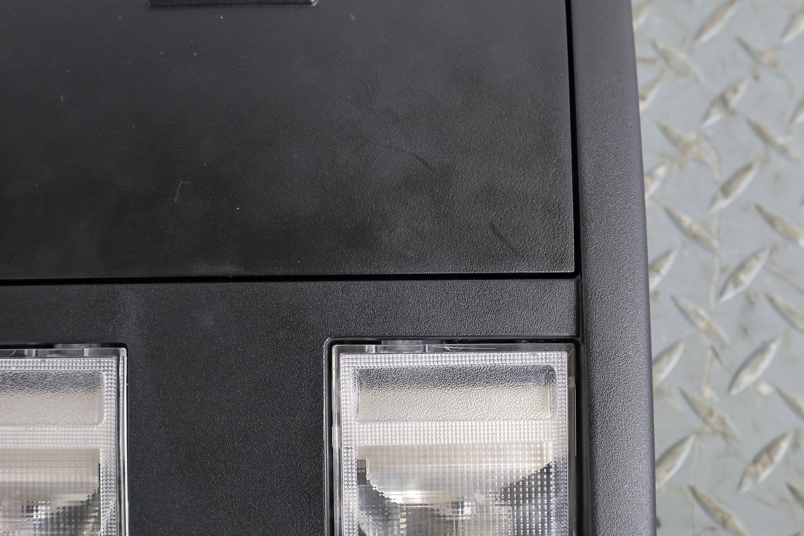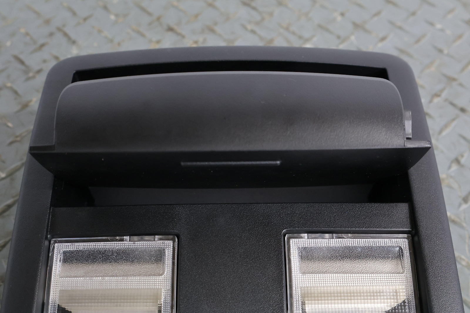 Roof Console, W/o Sunroof, Black (x9), Sunglass Door Functions Properly, Mounted Solid