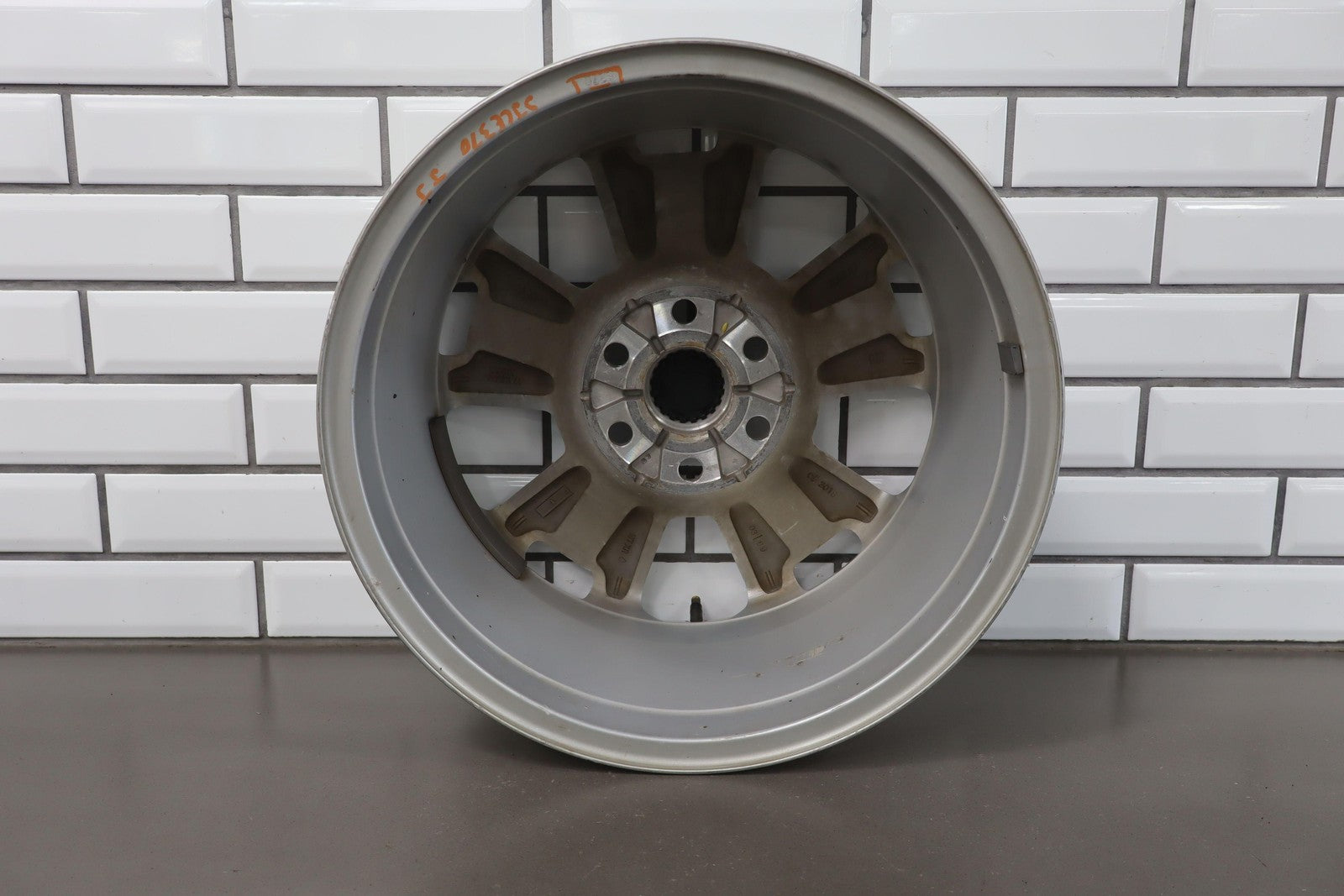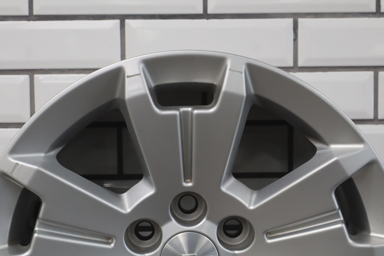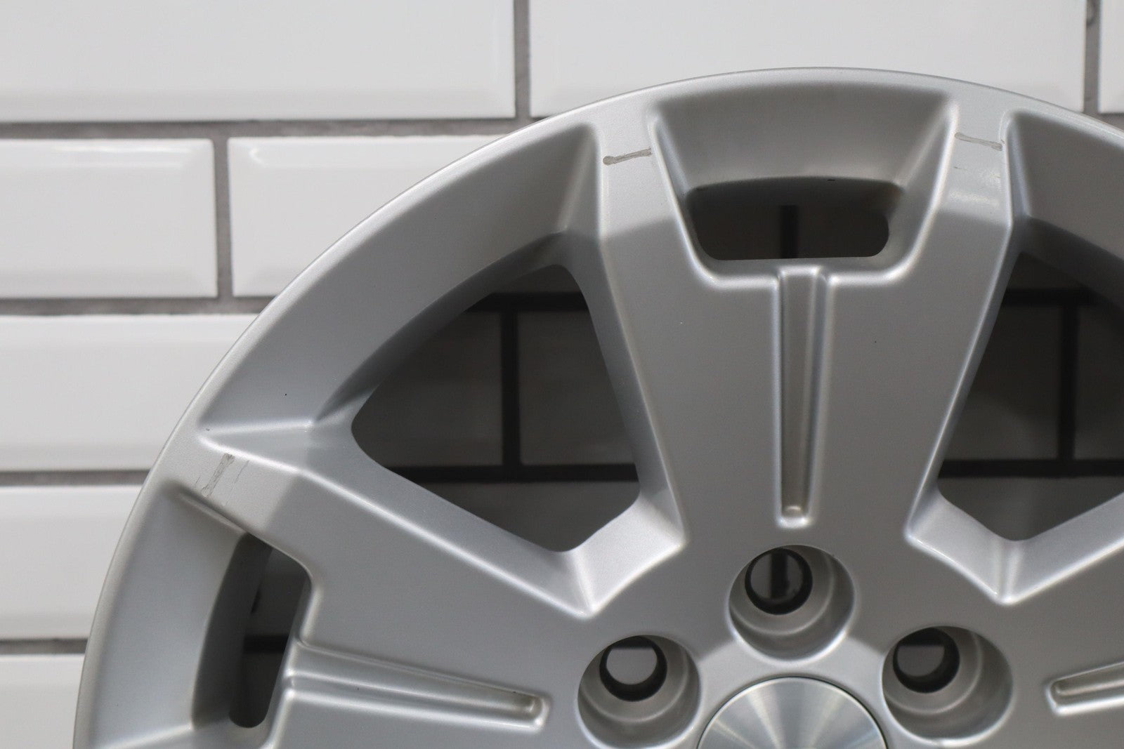Rh Front, 17x8 Blade Silver (q5u) 5 Spoke Wheel, Decent Scrapes To Face, Spun True