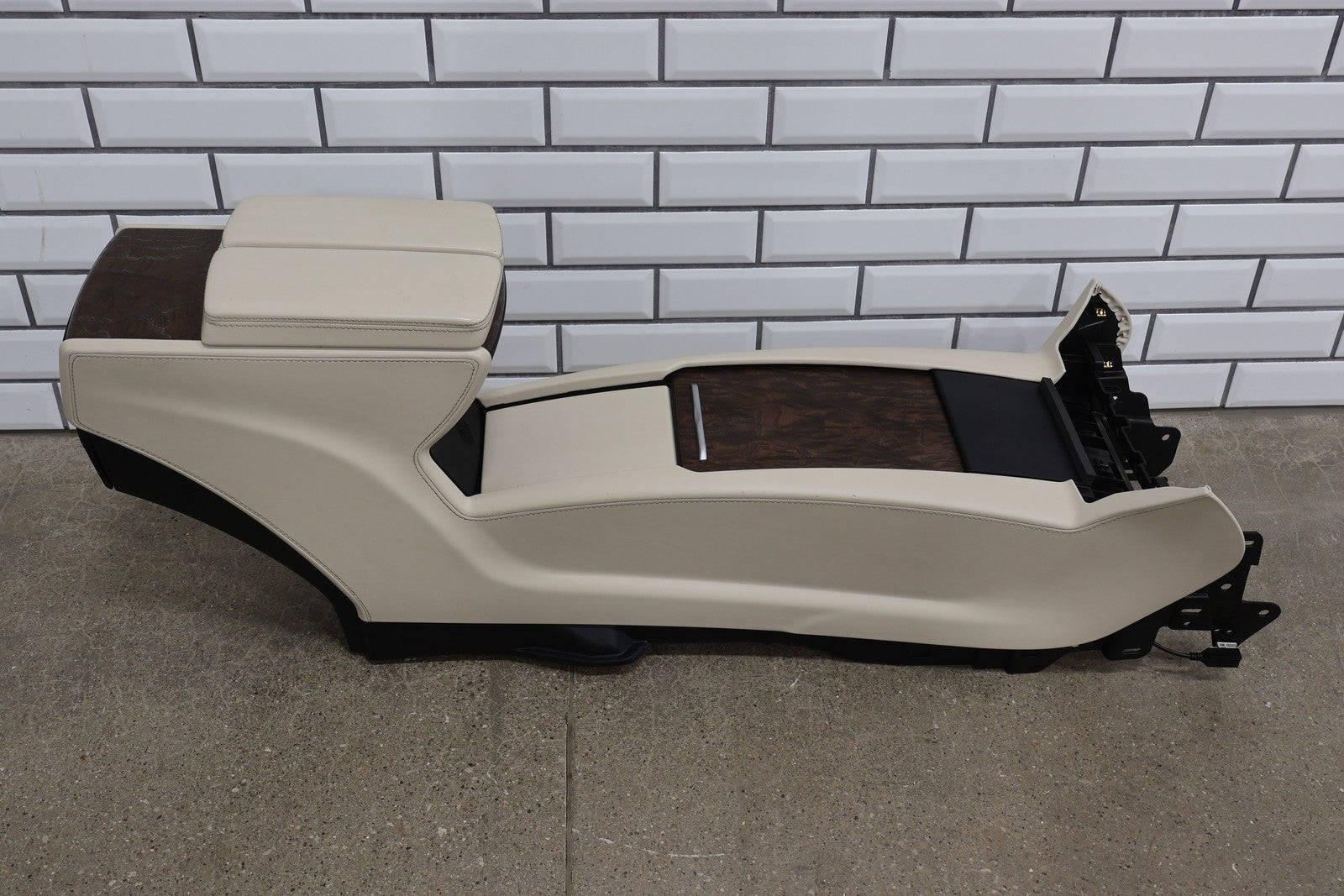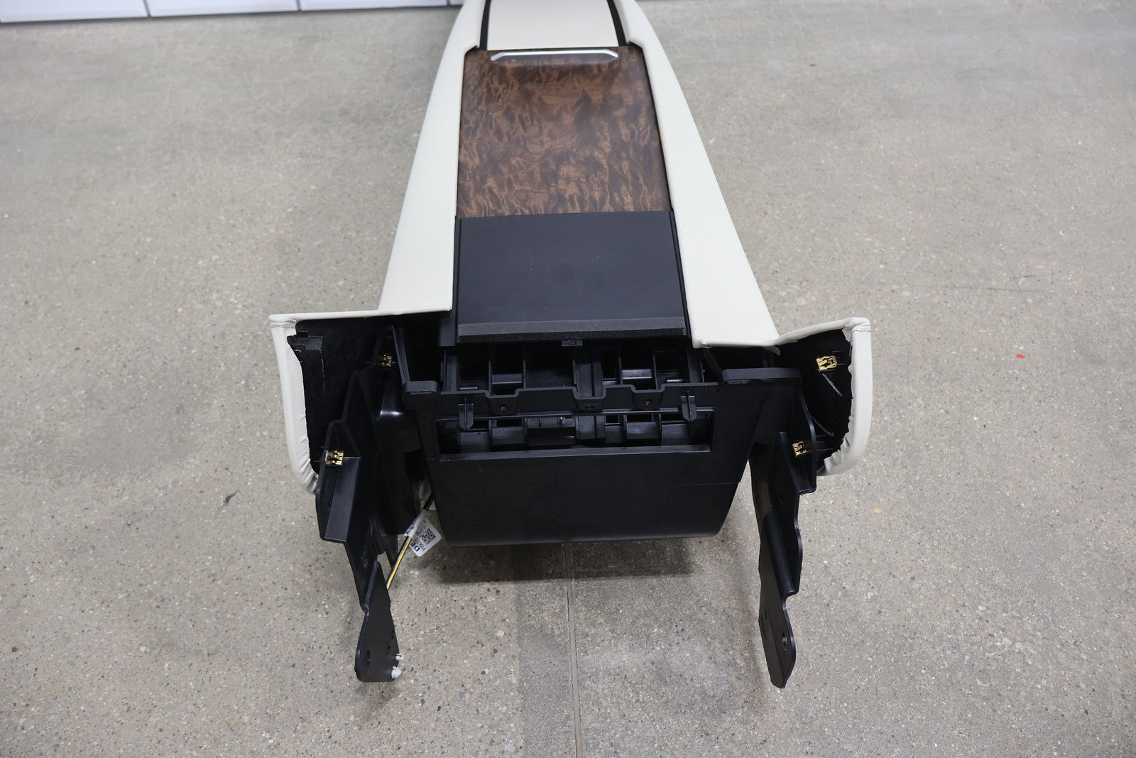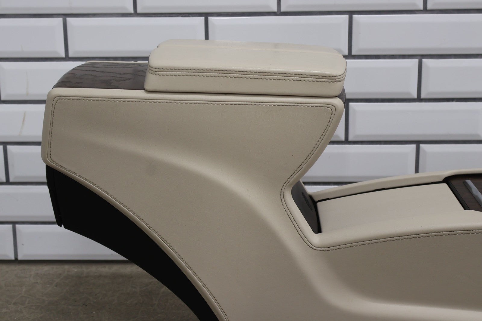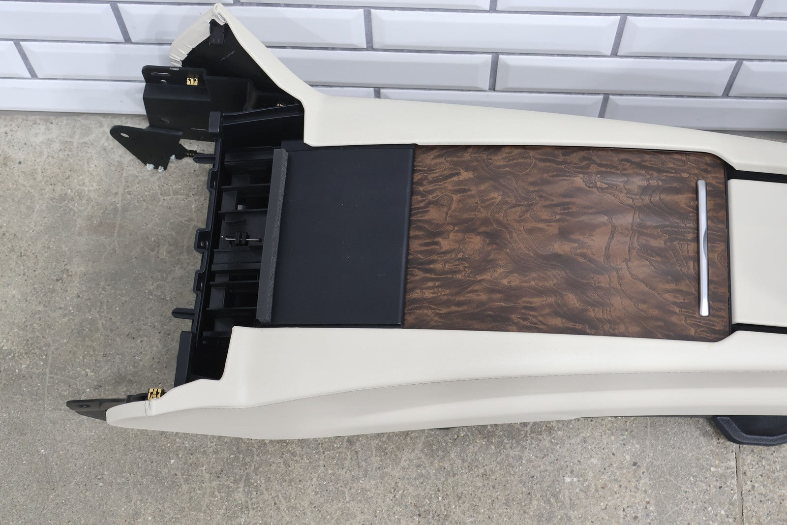 Floor Console, Cream W/woodgrain Trim, Includes Arm Rest- Lid, Scuffs/scratches, Mounted Solid