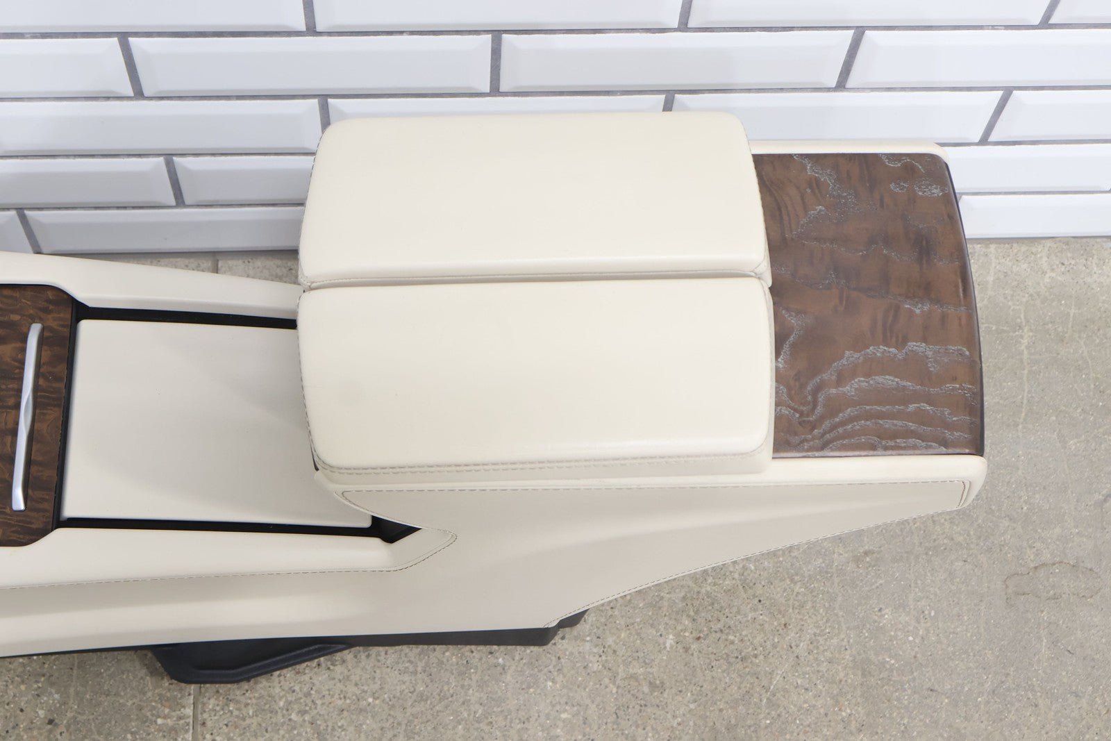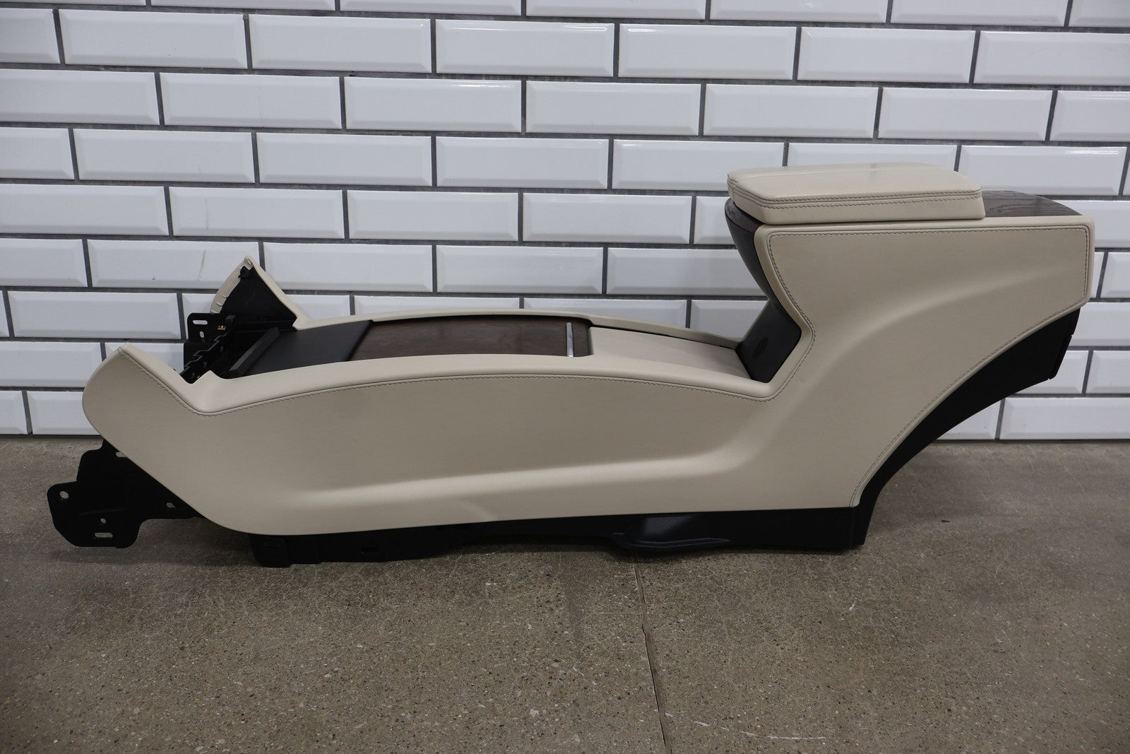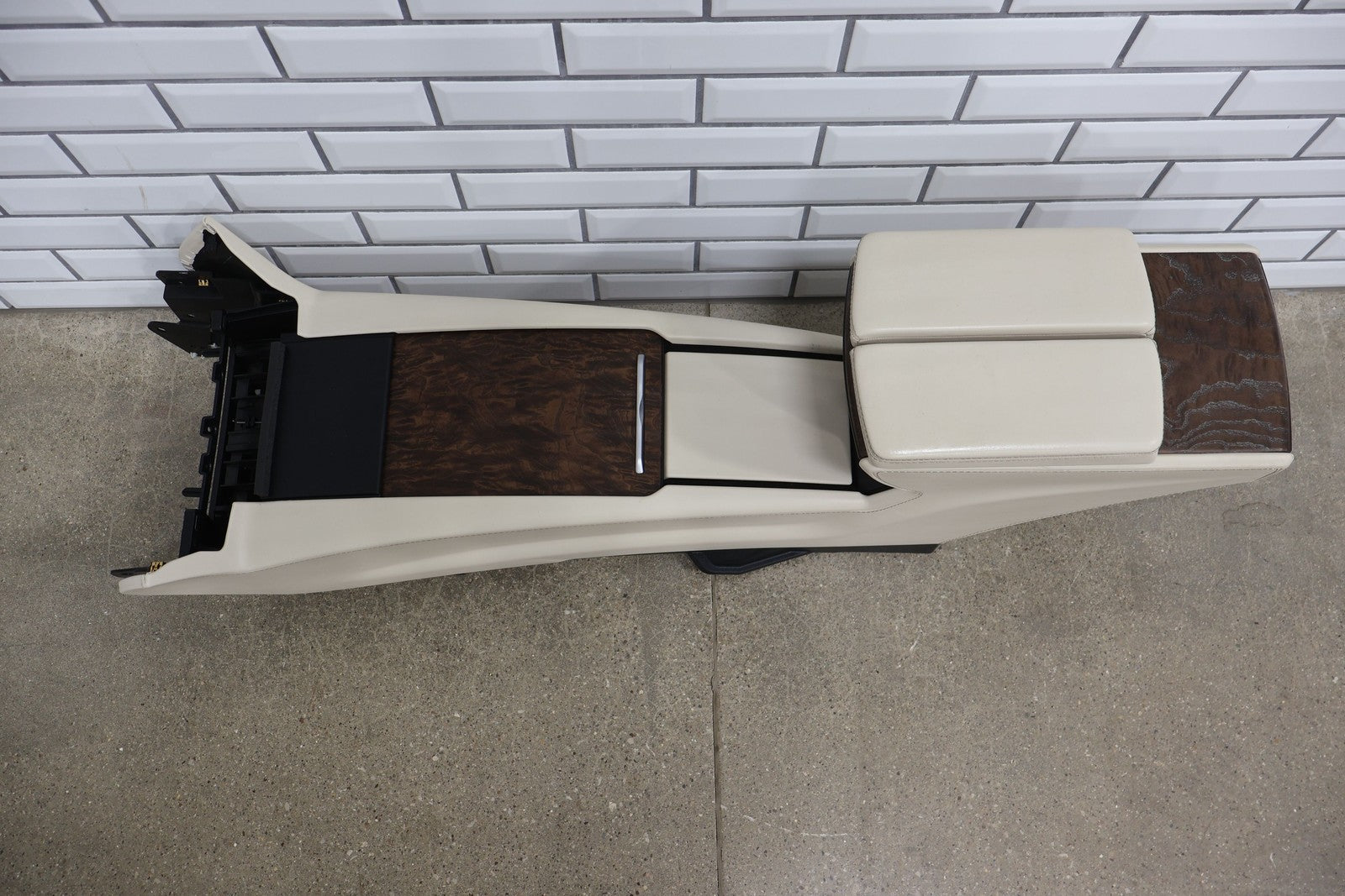 Floor Console, Cream W/woodgrain Trim, Includes Arm Rest- Lid, Scuffs/scratches, Mounted Solid
