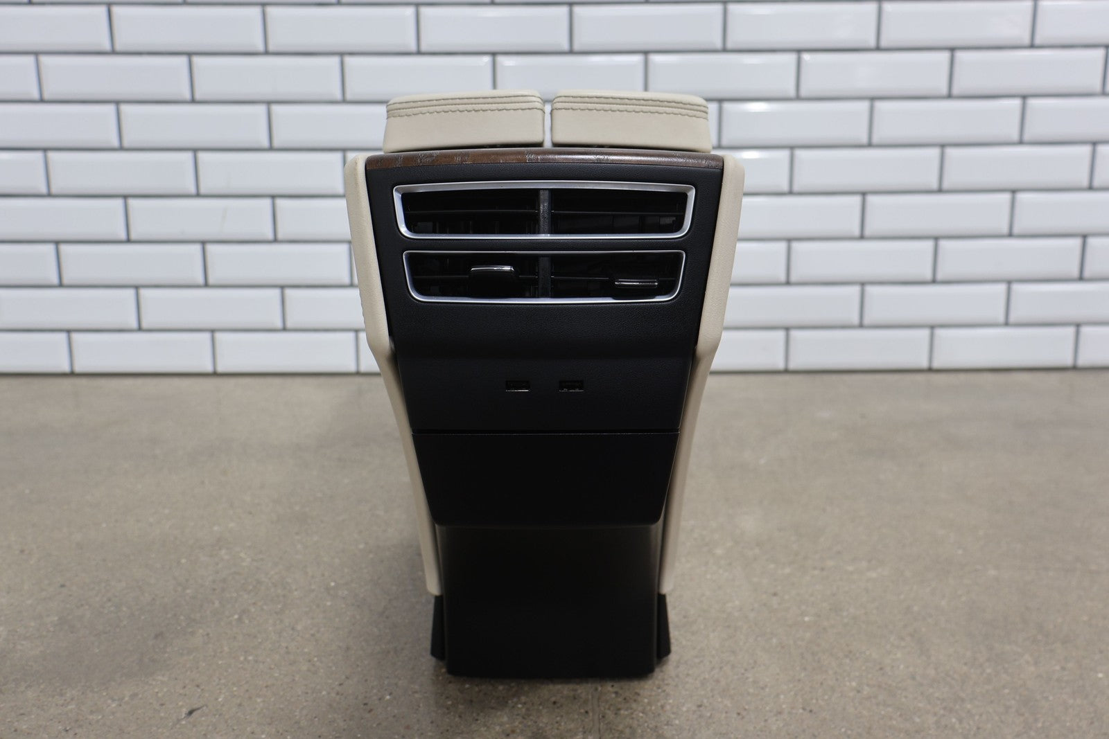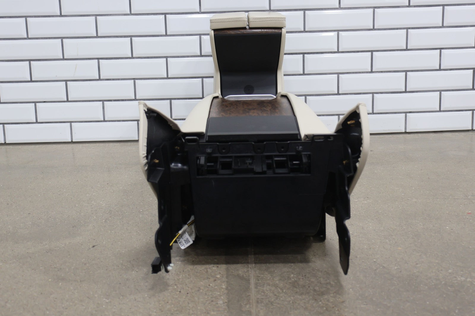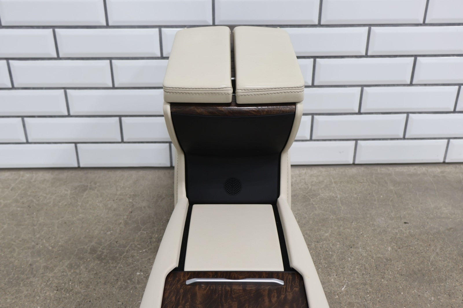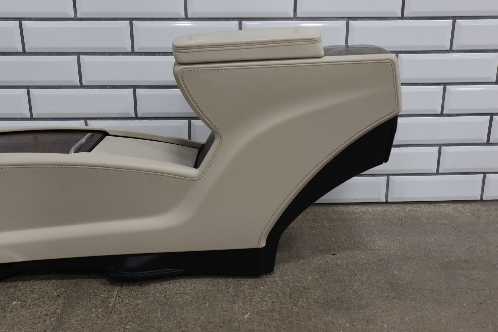 Floor Console, Cream W/woodgrain Trim, Includes Arm Rest- Lid, Scuffs/scratches, Mounted Solid
