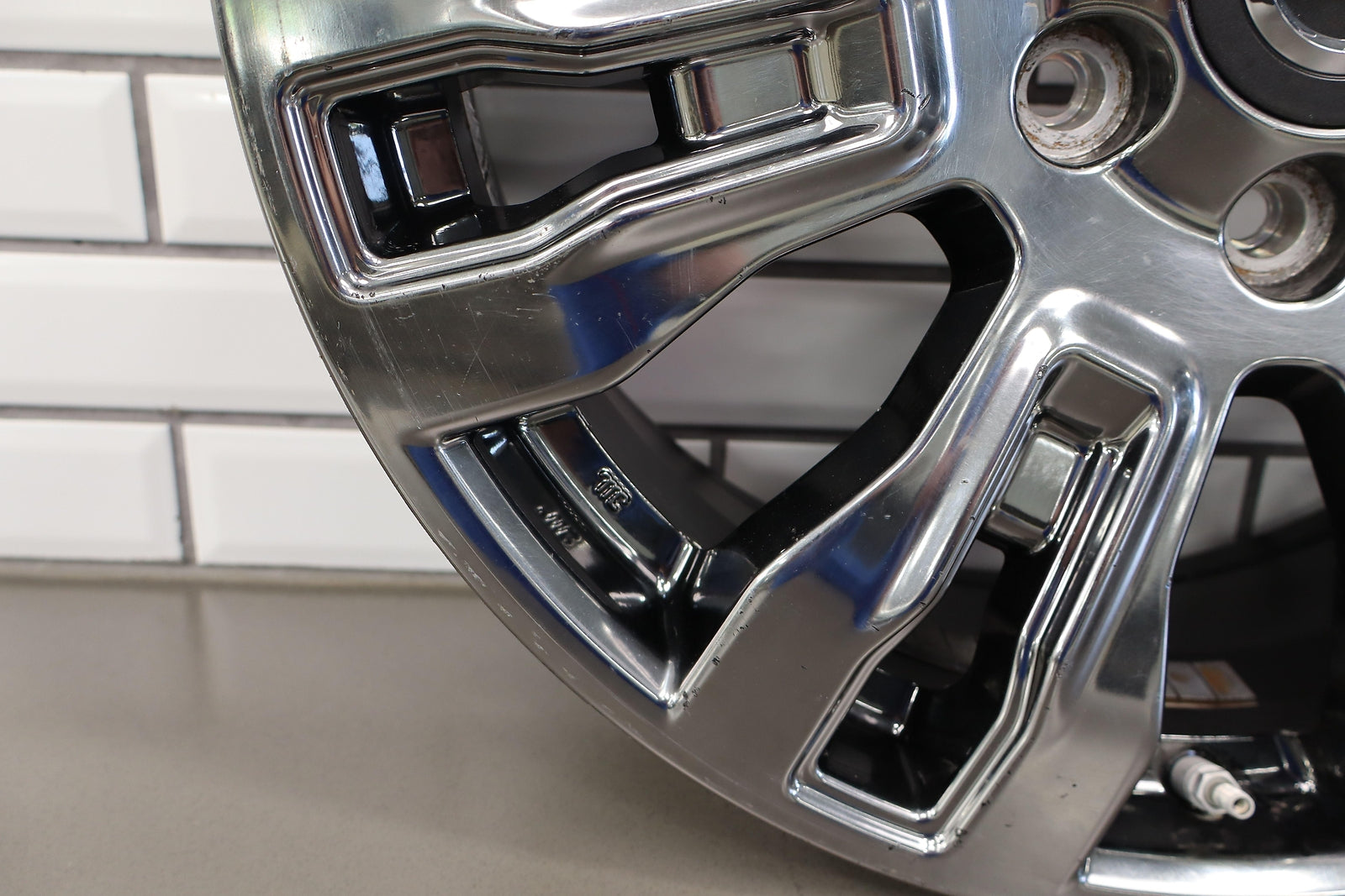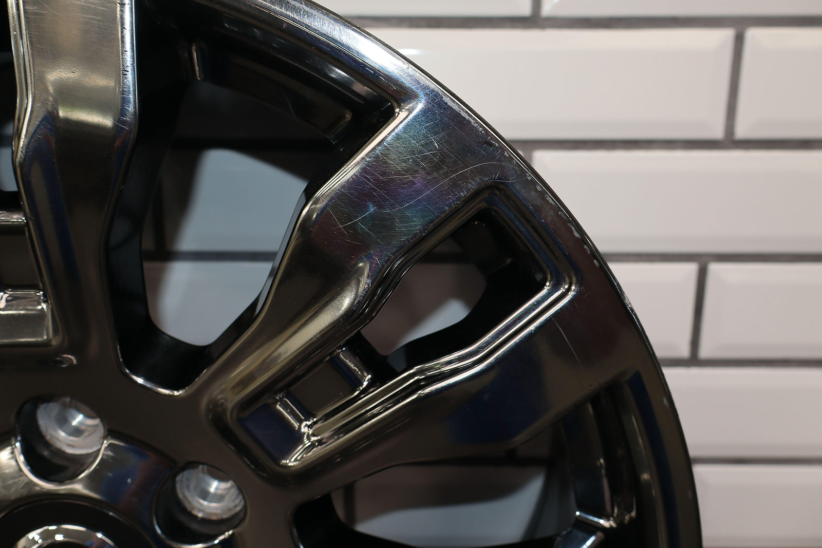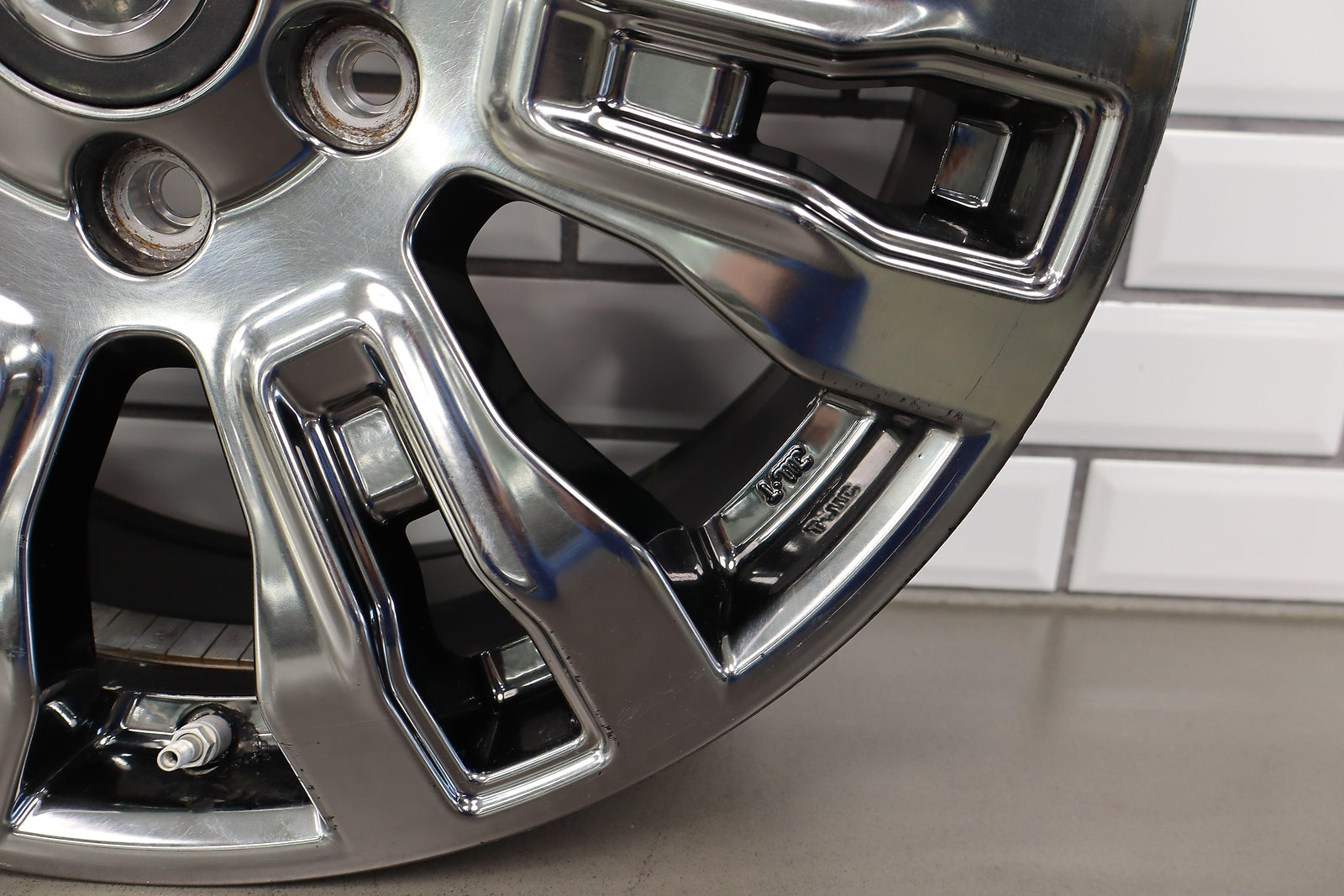 Rh Front, 20x7.5 7 Spoke Chrome Wheel, Light Curb Rash, Decent Scratches To Spokes, Spun True