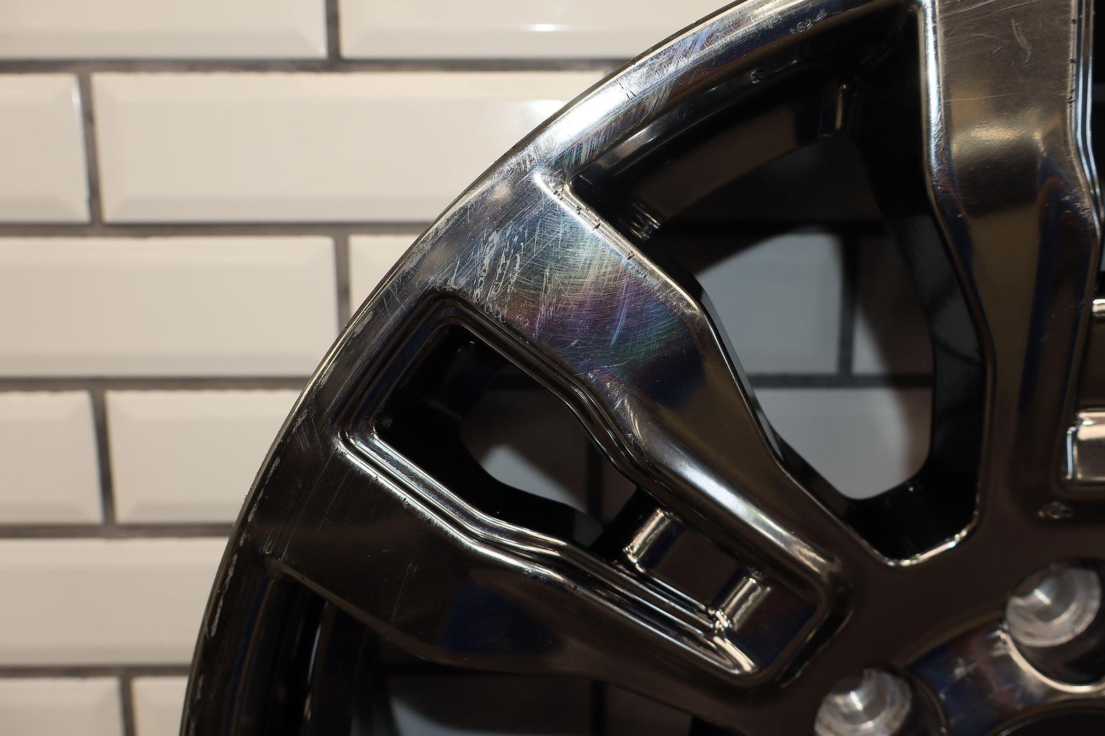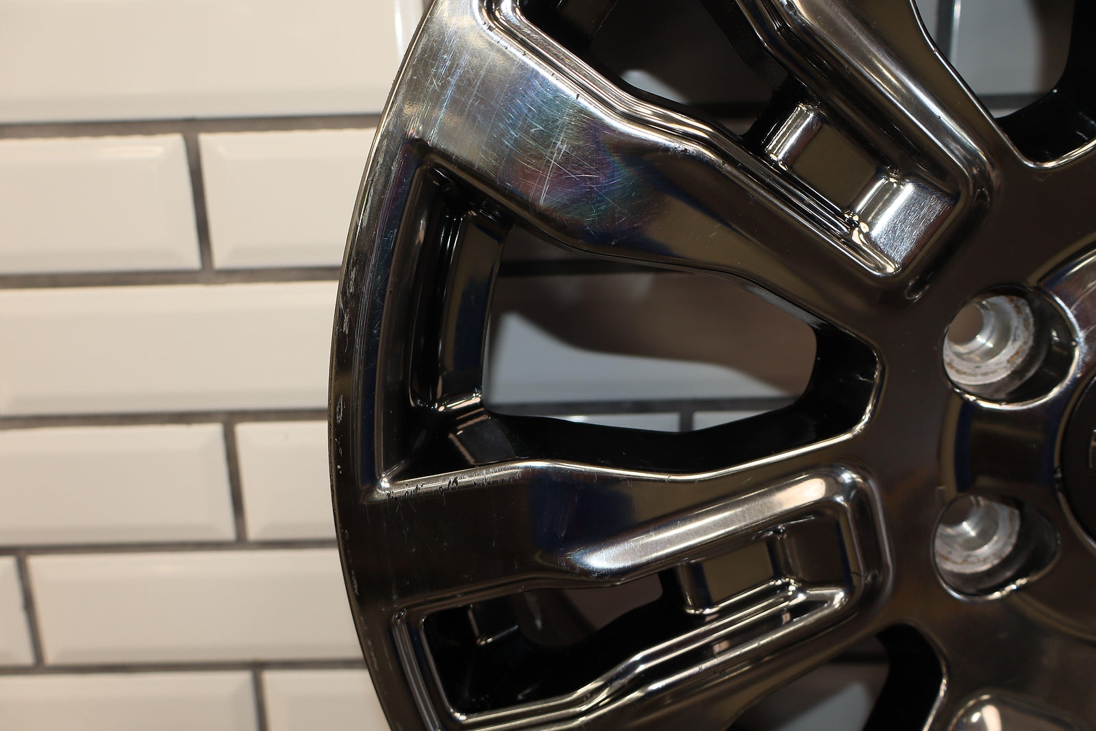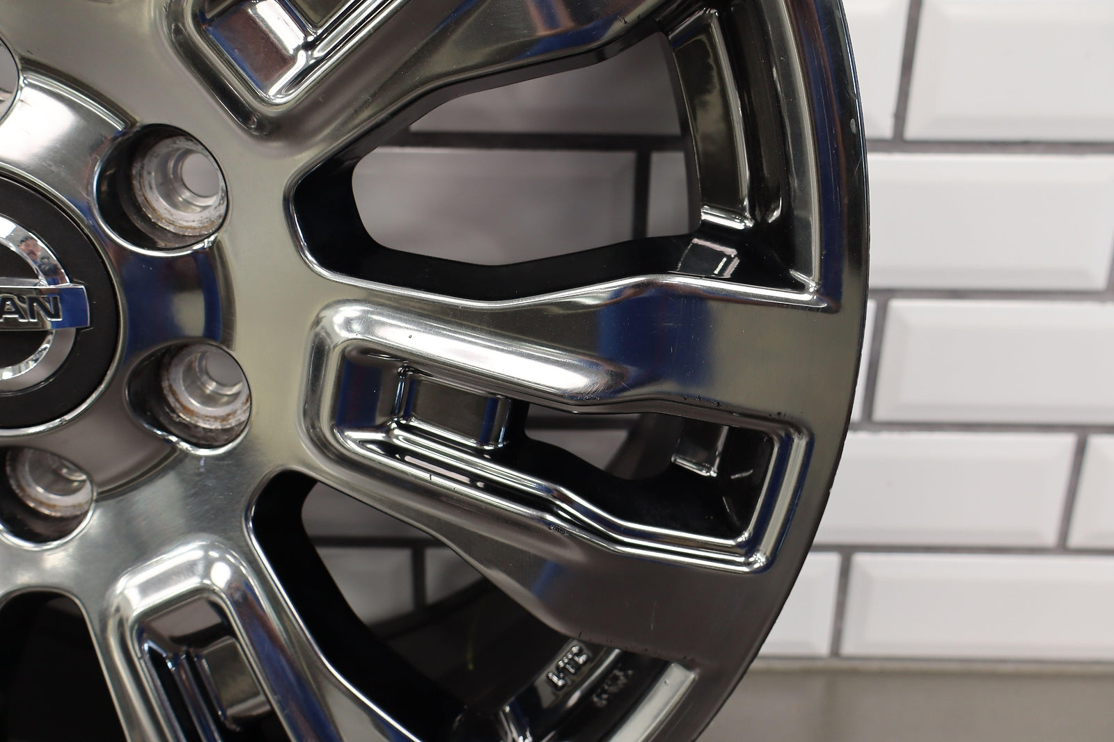 Rh Front, 20x7.5 7 Spoke Chrome Wheel, Light Curb Rash, Decent Scratches To Spokes, Spun True