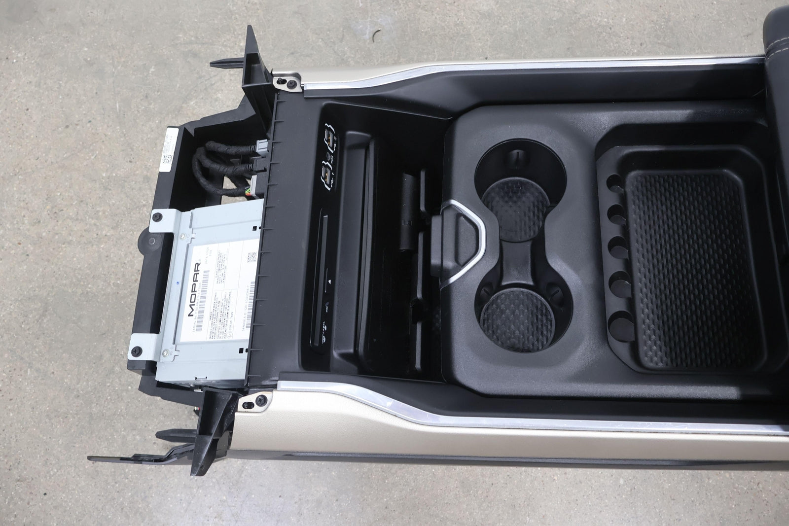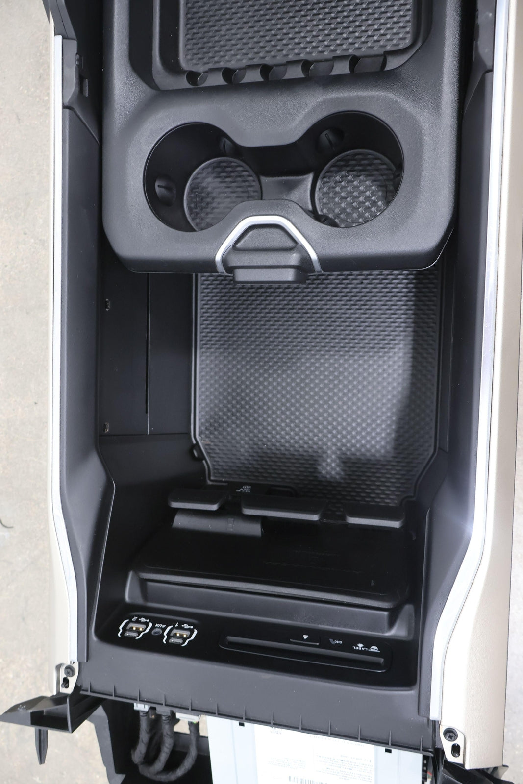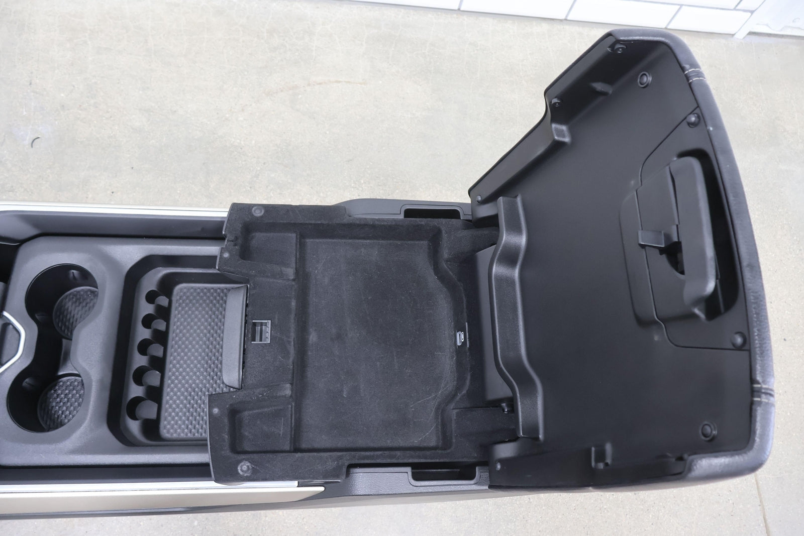 New Style (6 Lug) Floor Console, Black (x9) W/gold Trim, Couple Scratches, Latches/slides Function Properly, Mounted Solid