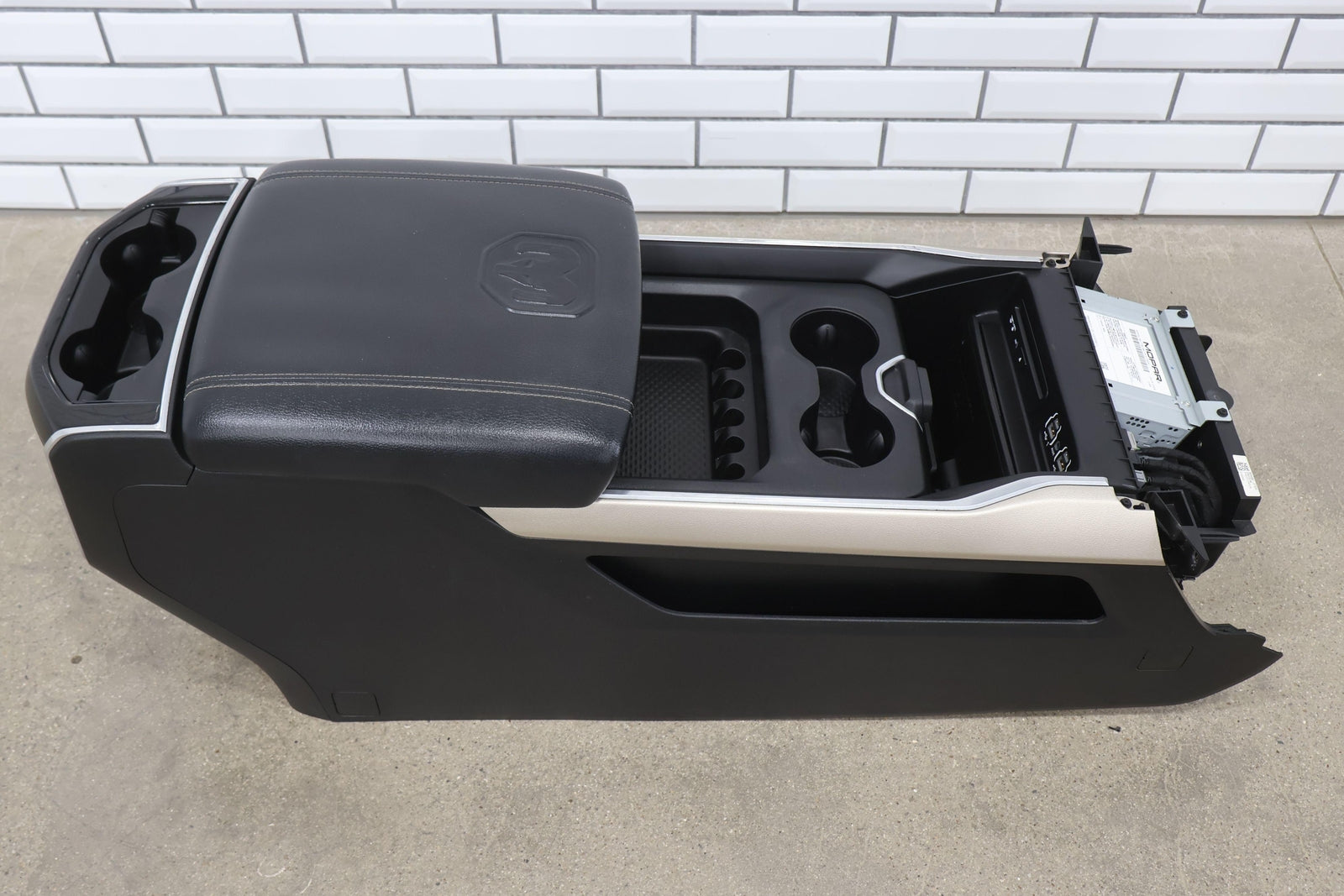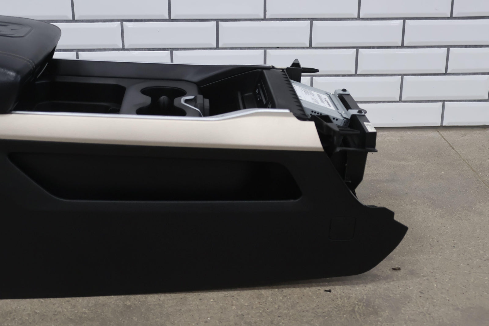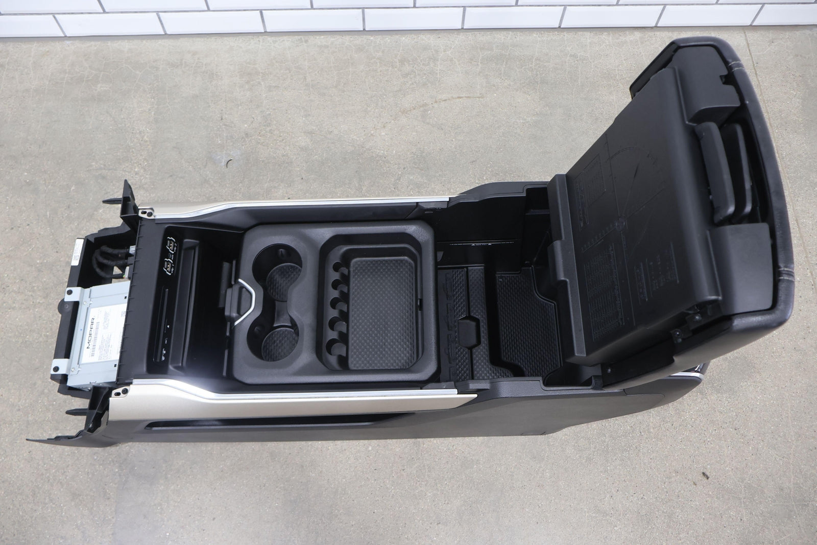 New Style (6 Lug) Floor Console, Black (x9) W/gold Trim, Couple Scratches, Latches/slides Function Properly, Mounted Solid