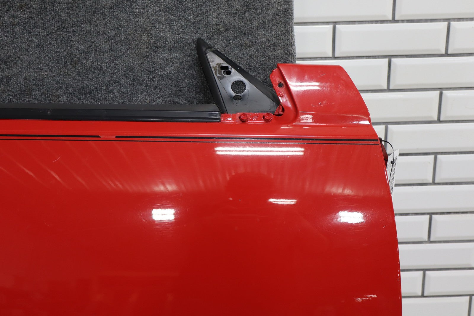 Rh Door Shell, Super Red (3e5), Sold Less Mirror-trim Panel-glass-regulator, Decent Sun Fade, Multiple Knicks, Scuffs/scratches