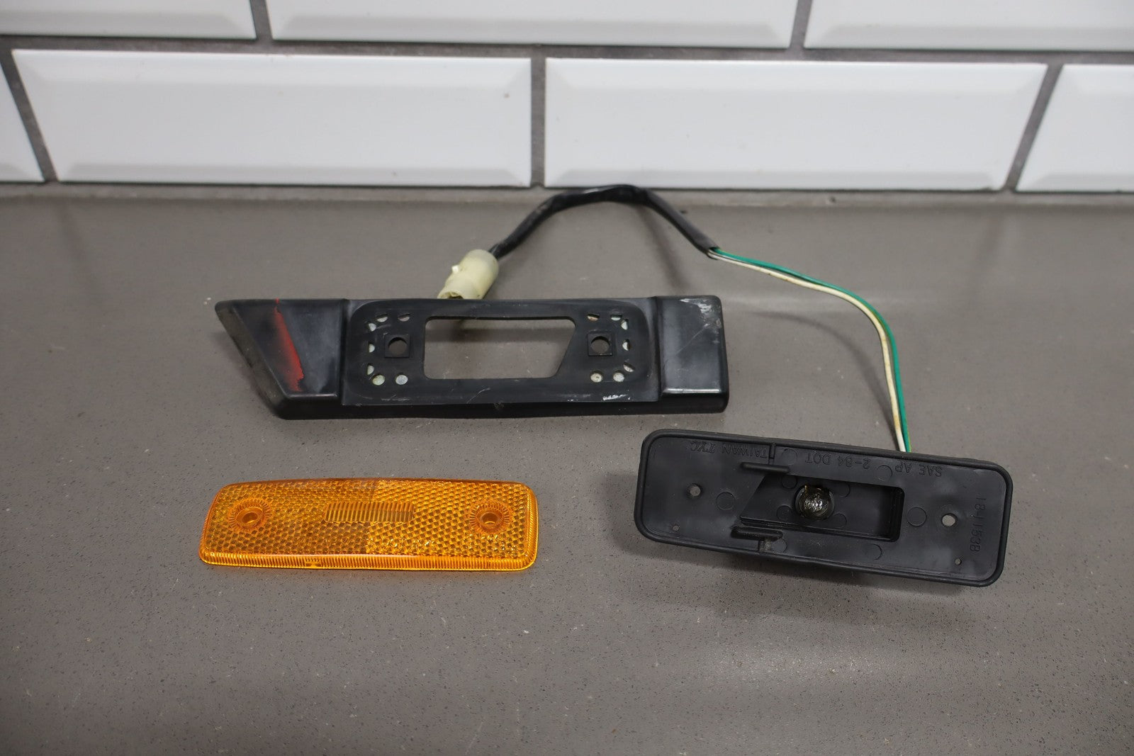 Important notes: Rh (forward), Includes Marker Light, Black, Has Overspray, Scuffs, Mild Sun Fade