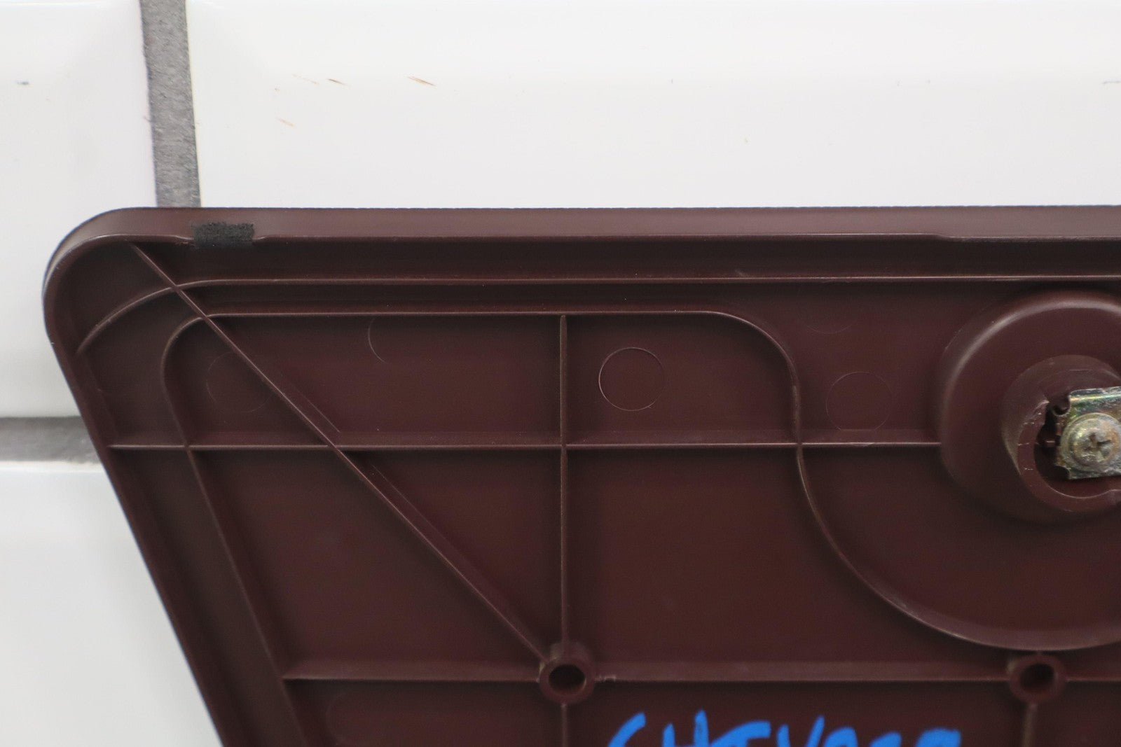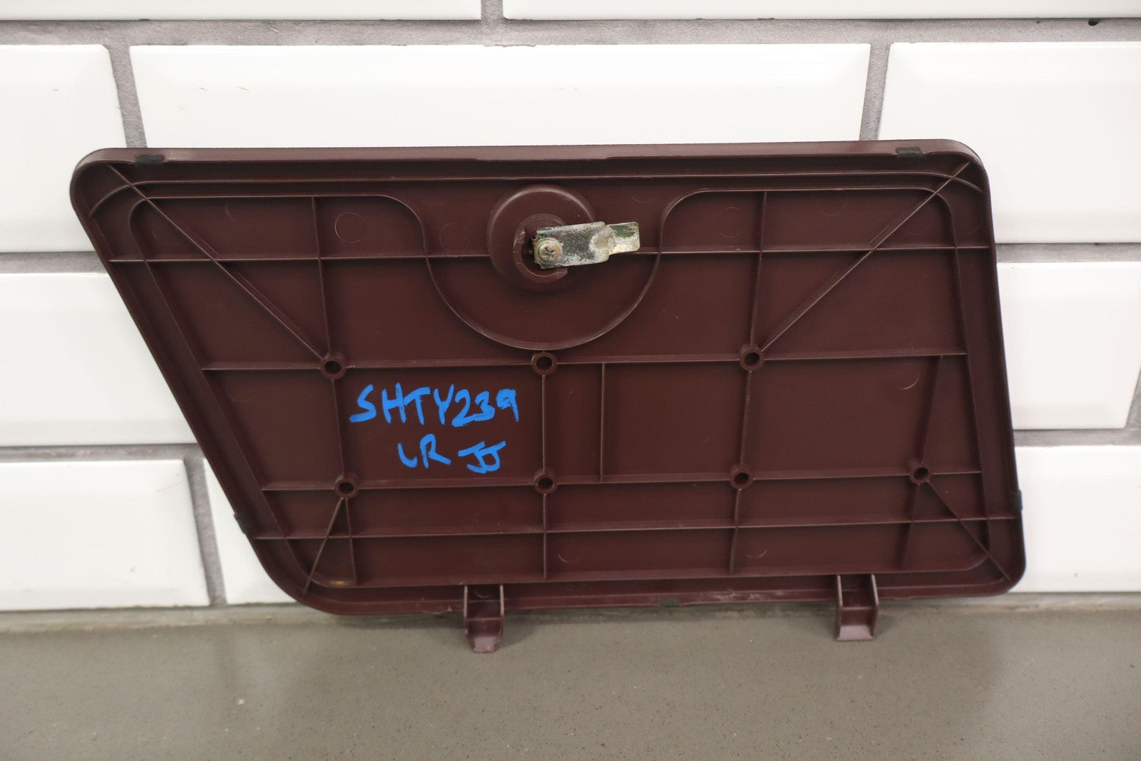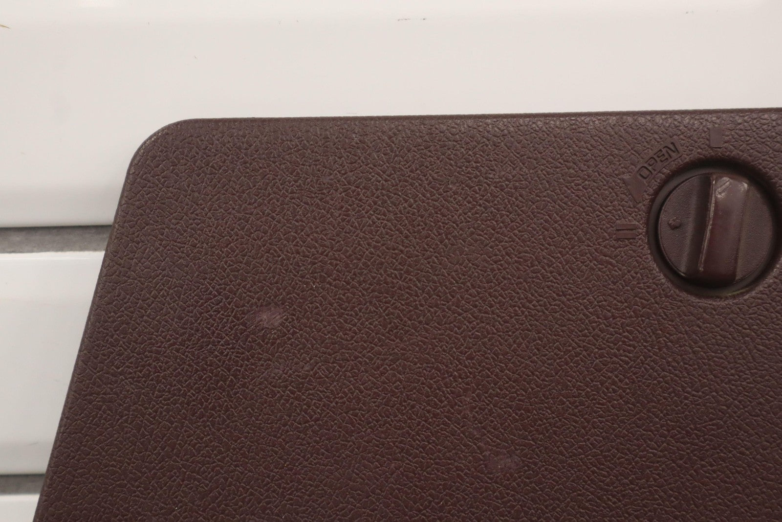 Jack Storage Door, Maroon, Latch Functions Properly, Couple Scrapes, Light Sun Fade, 64076-14060