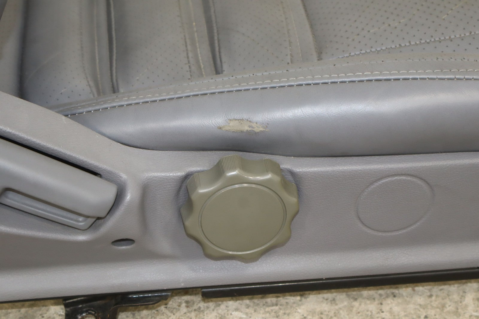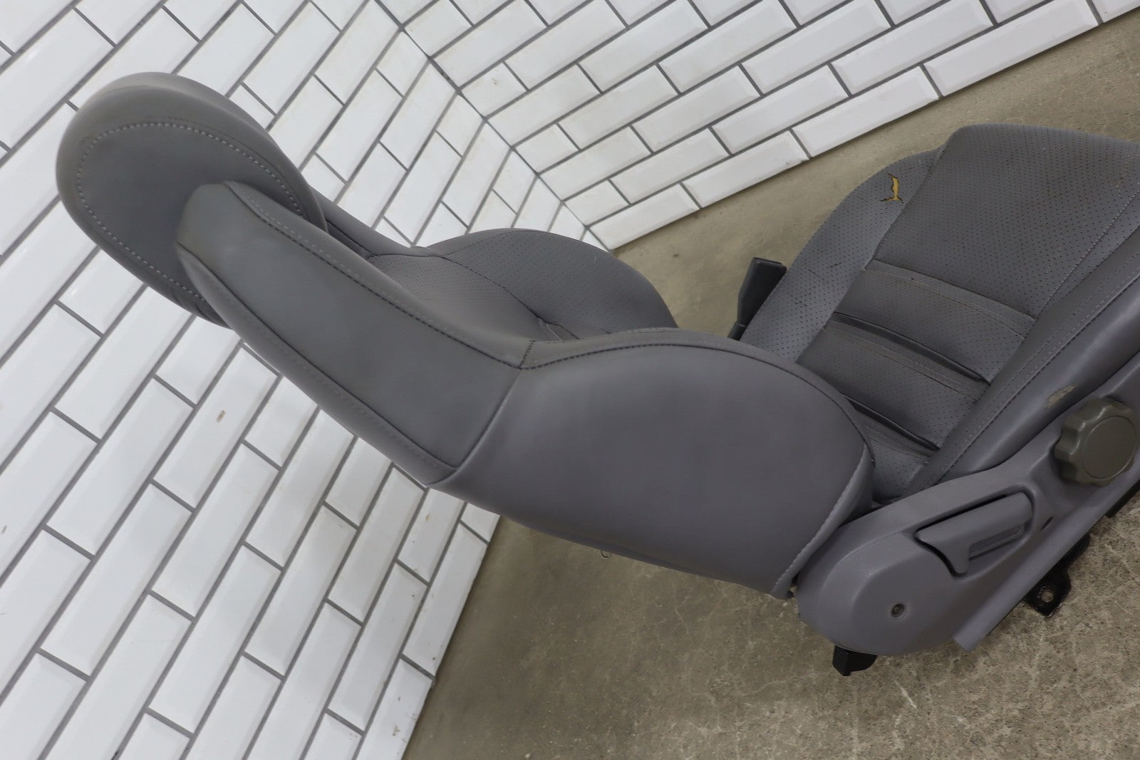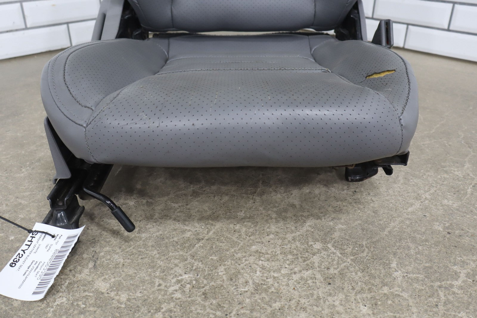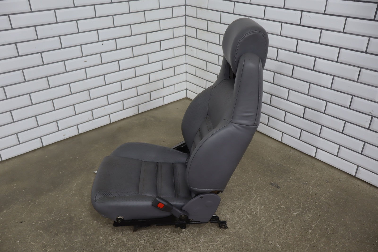 Rh Front Leather Bucket Seat, Gray, Decent Wear Thrgouhout, 1 Lower Bolster Tear, Mild Aged Leather, Some Staining, Manual