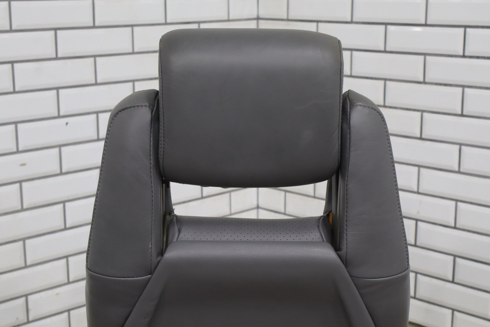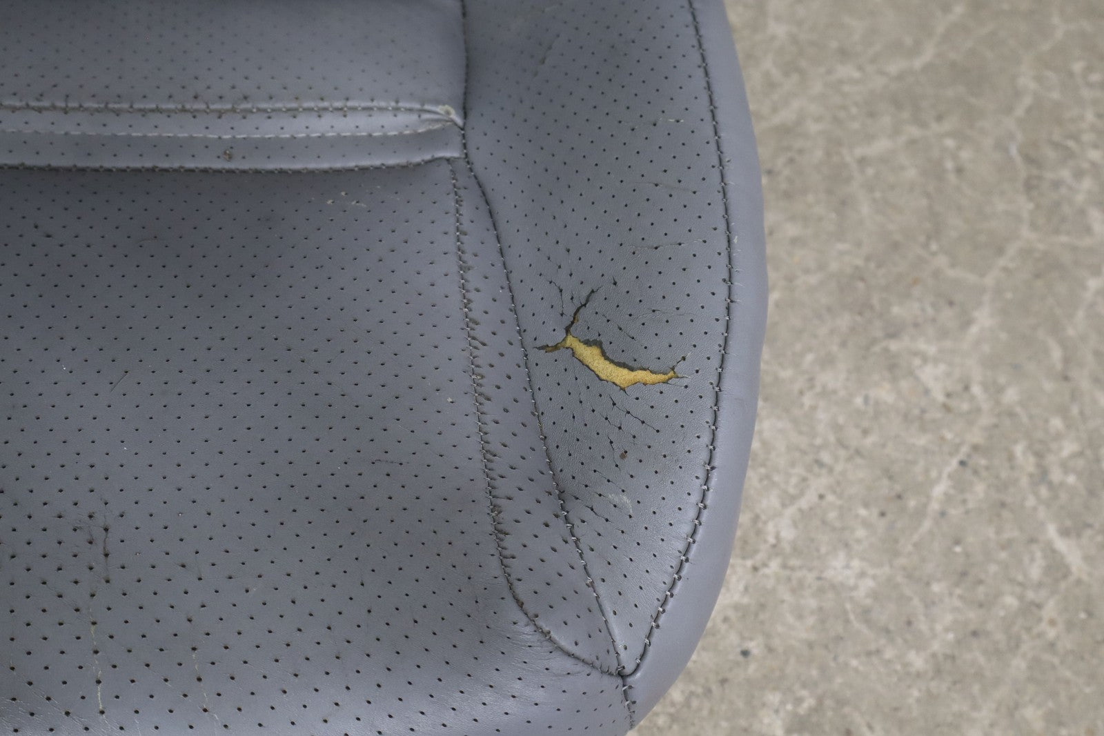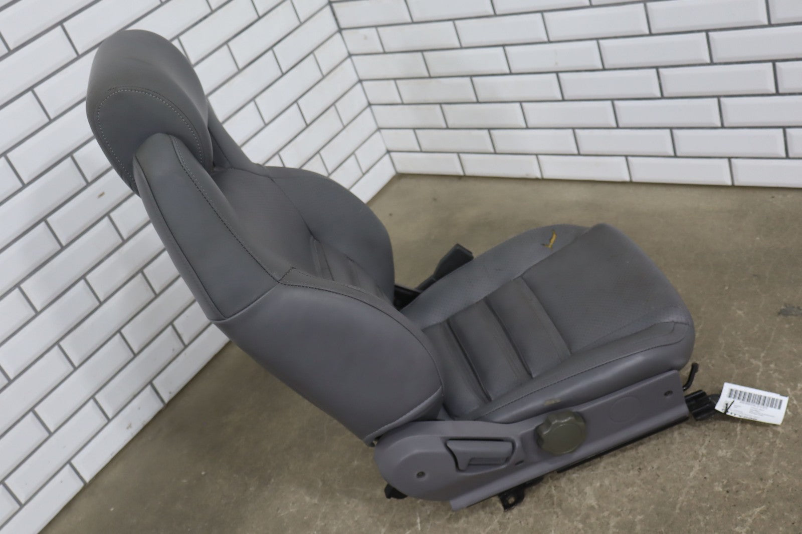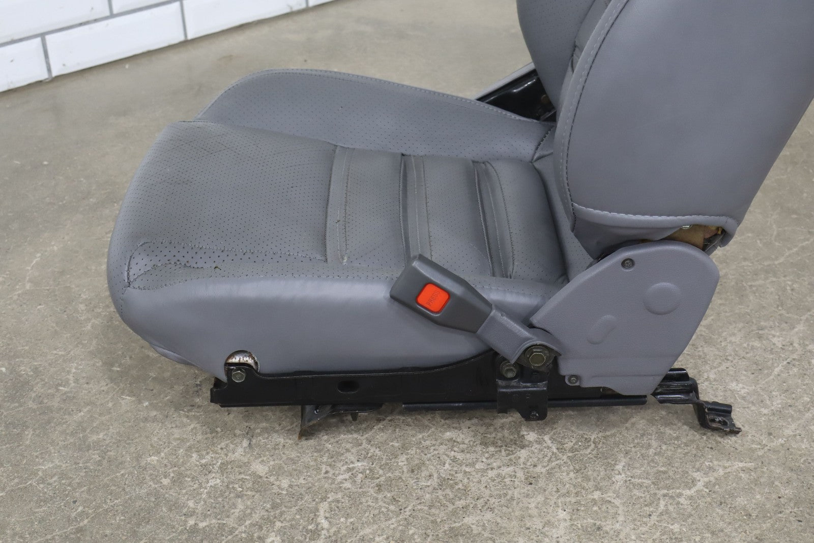 Rh Front Leather Bucket Seat, Gray, Decent Wear Thrgouhout, 1 Lower Bolster Tear, Mild Aged Leather, Some Staining, Manual
