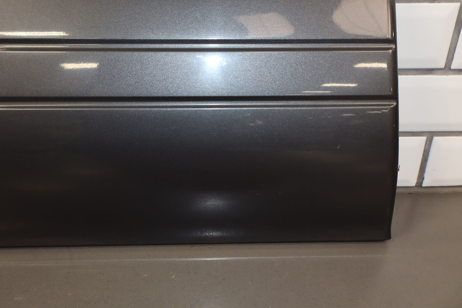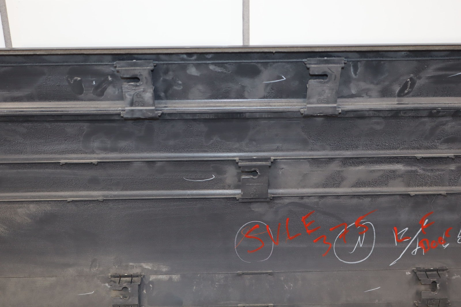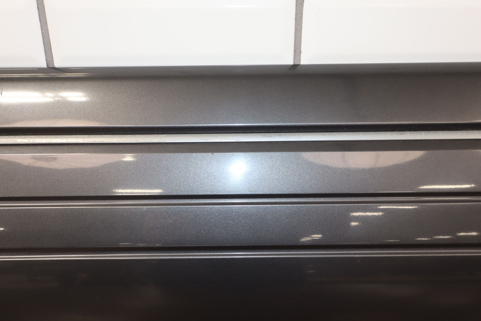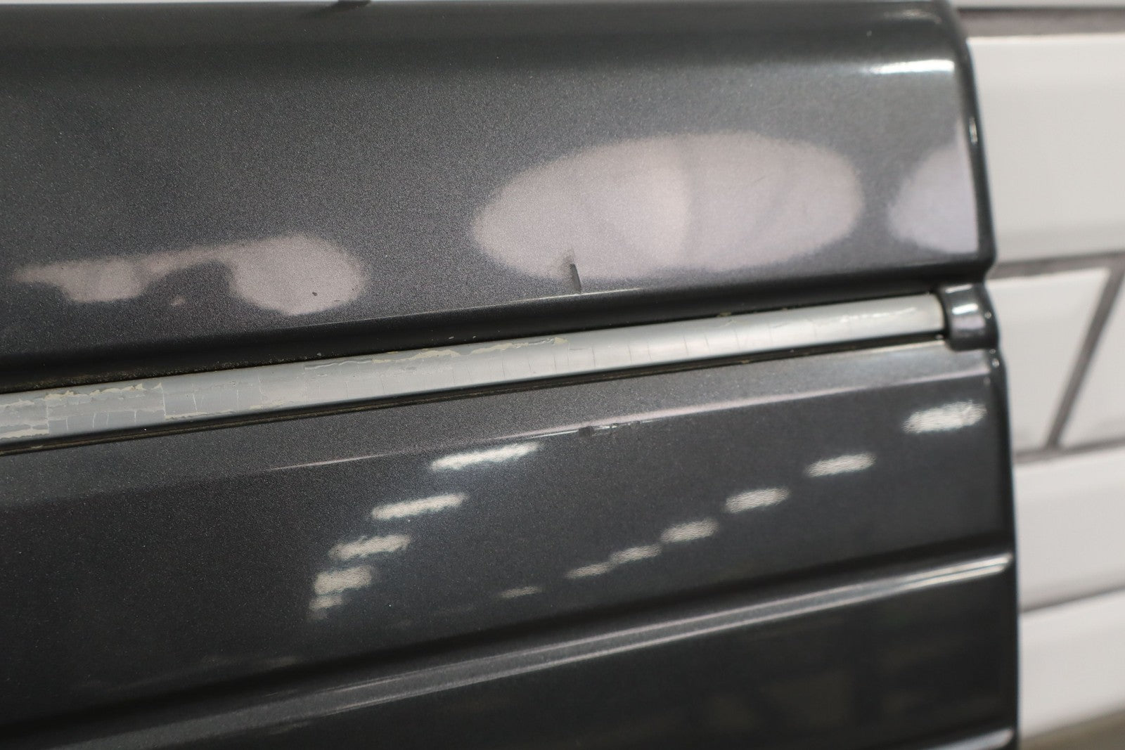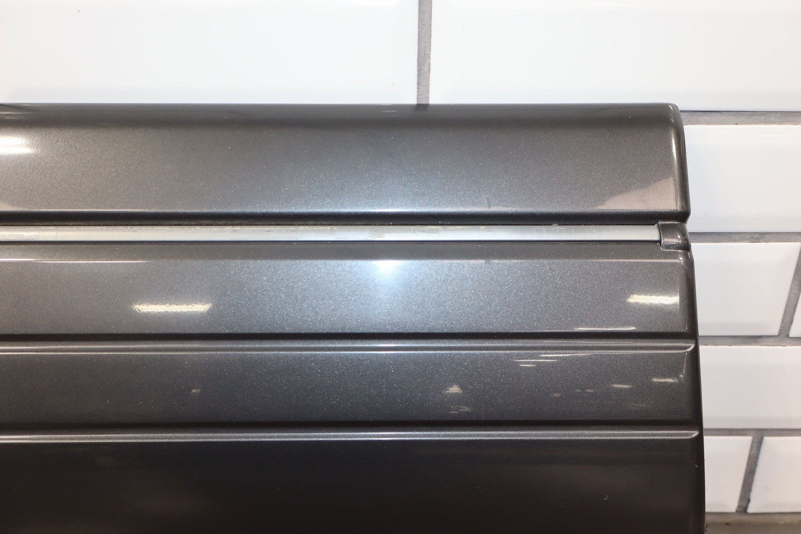 Lh Front Door Moulding, Dark Gray, Mild Fade Across Top, Multiple Scuffs/scratches/knicks Throughout