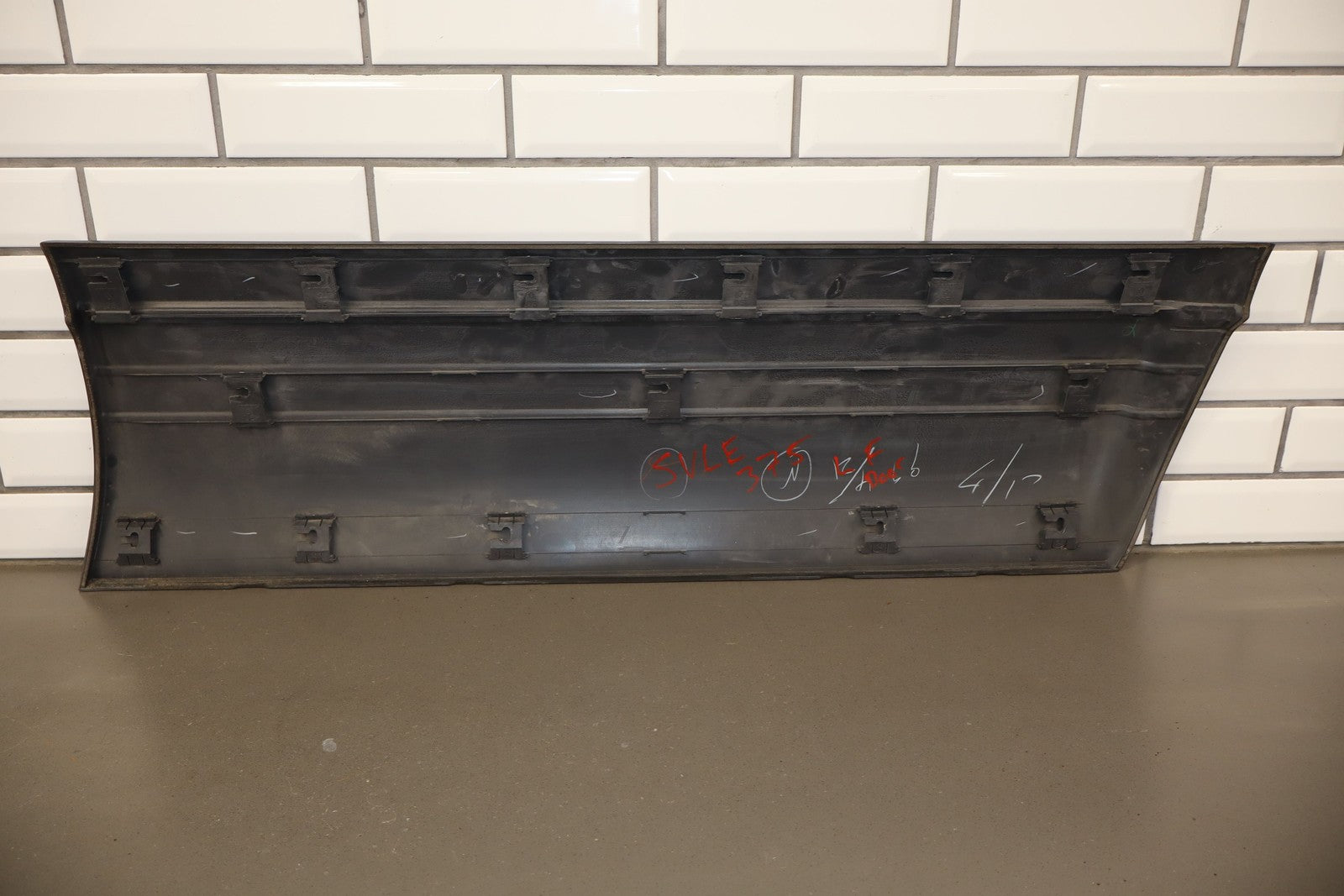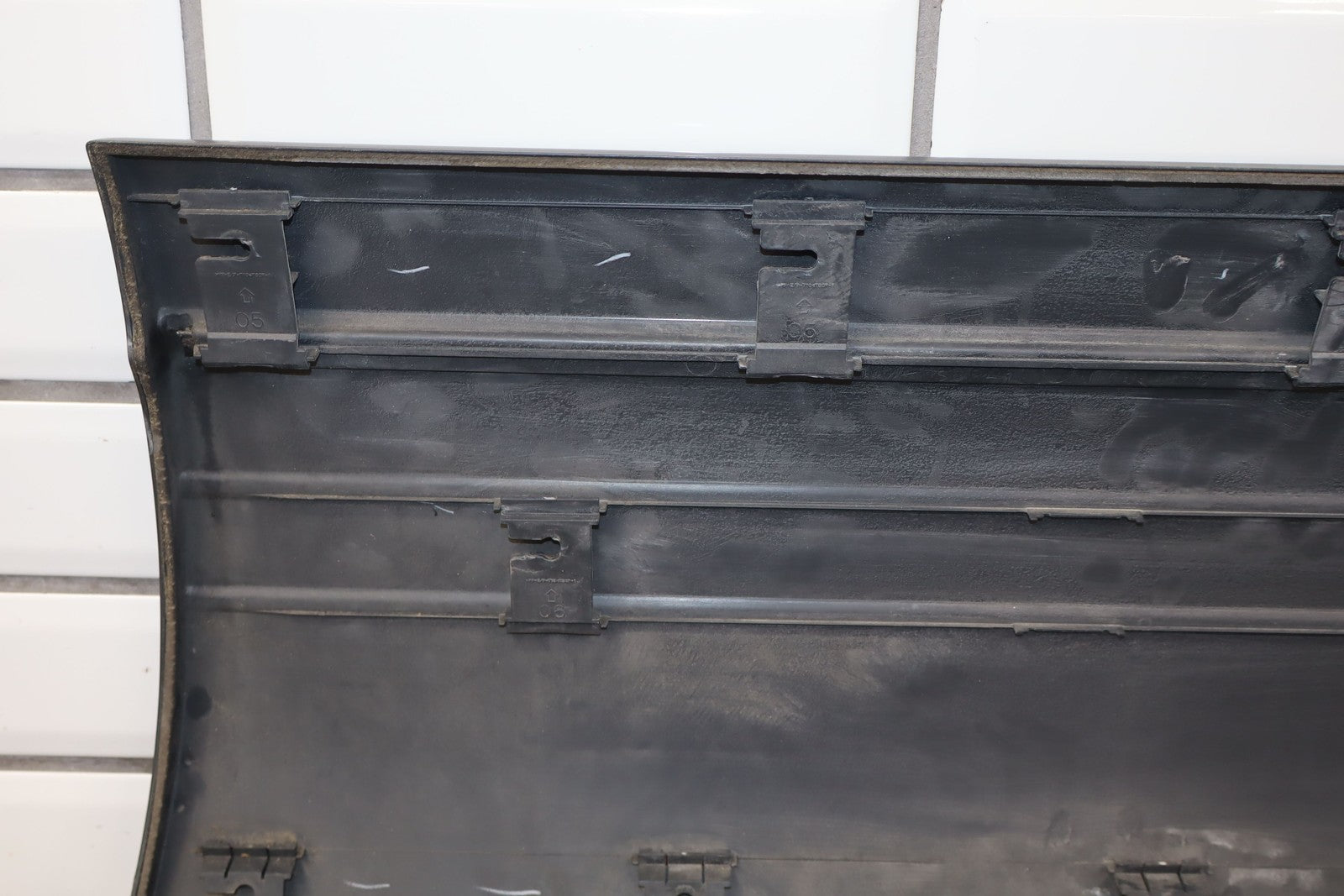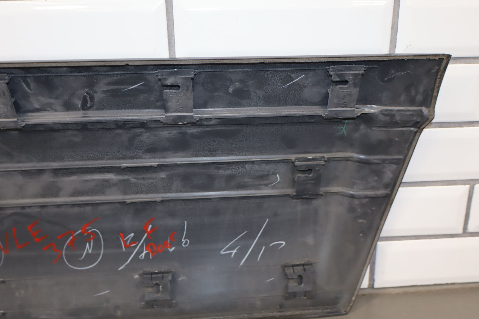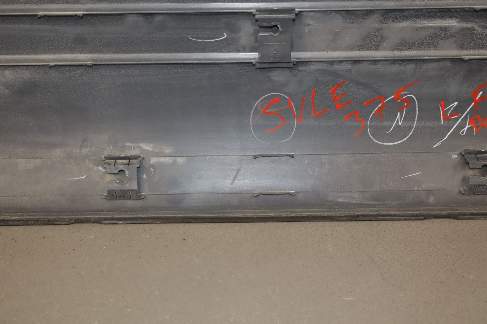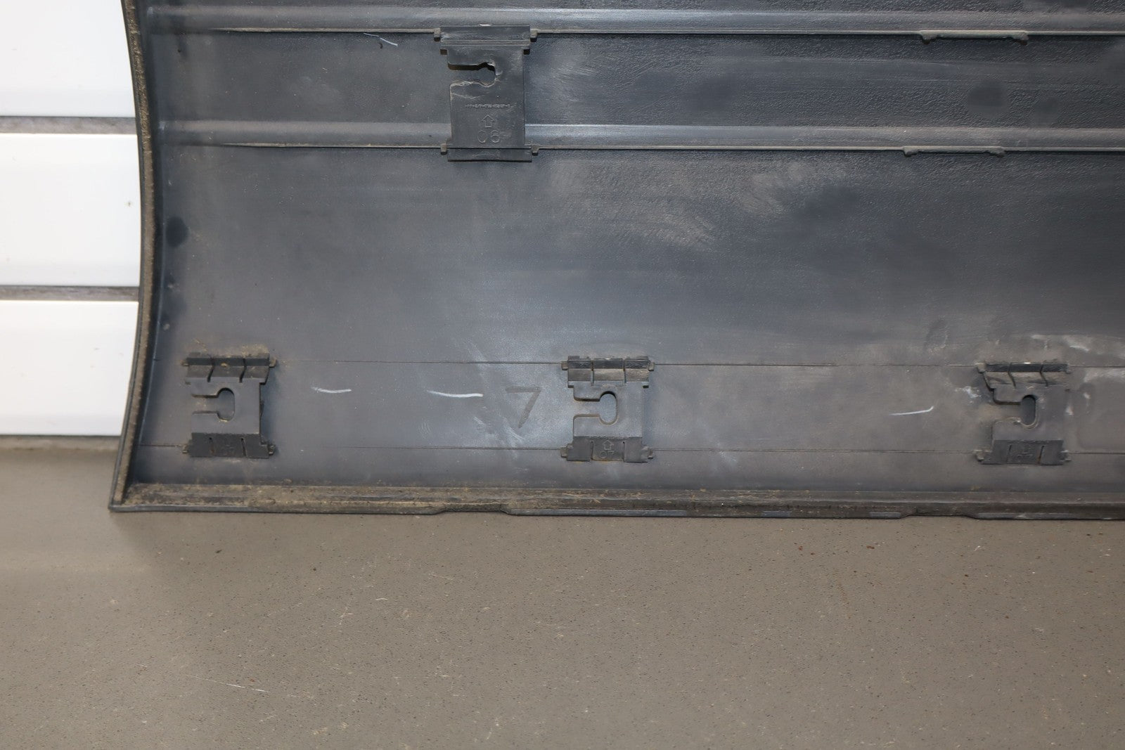Lh Front Door Moulding, Dark Gray, Mild Fade Across Top, Multiple Scuffs/scratches/knicks Throughout