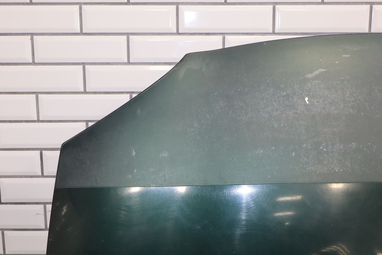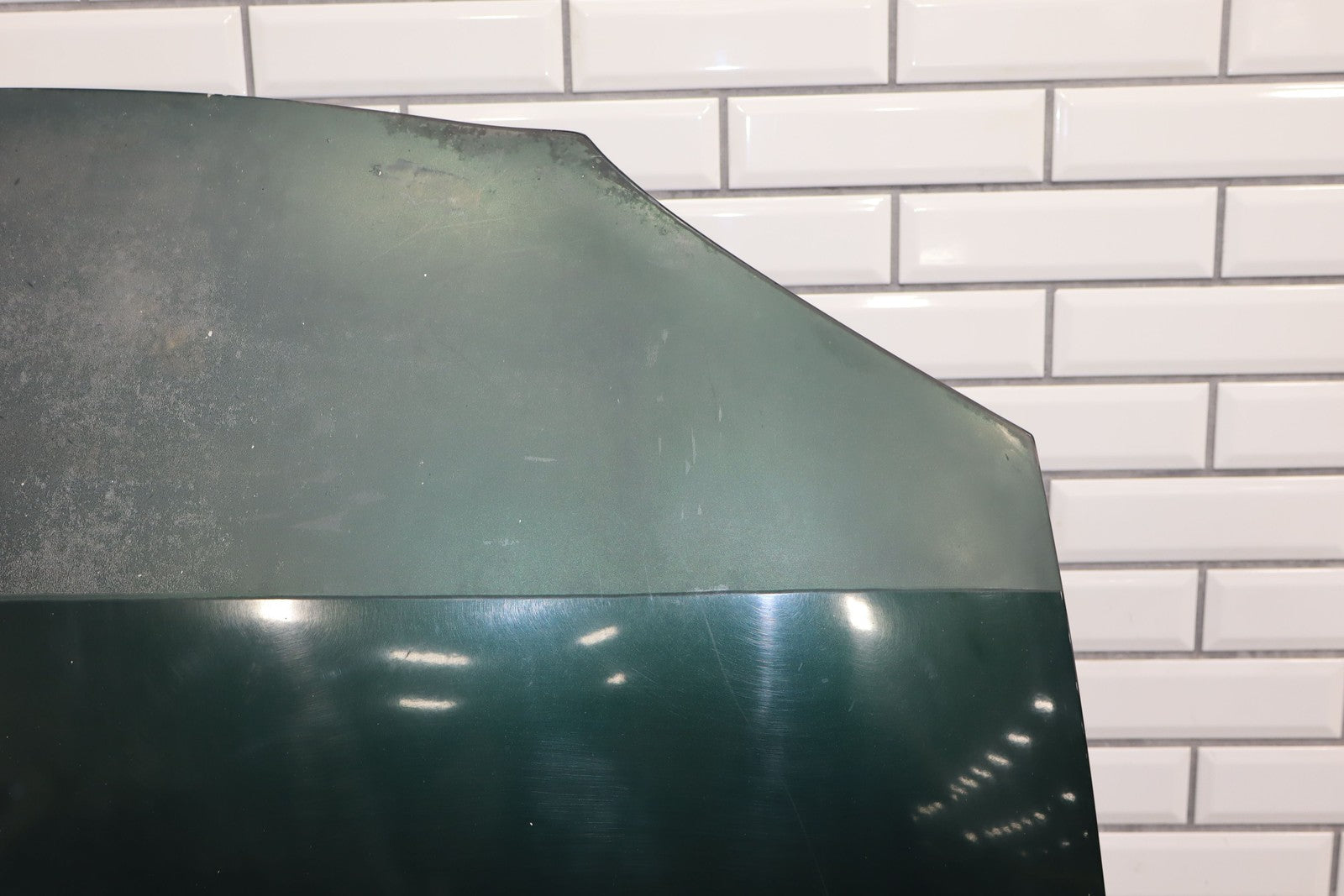 Emerald Mica (18j), Baked Clear Bra On Nose, Few Stone Chips, Decent Scratches, Mild Sun Fade