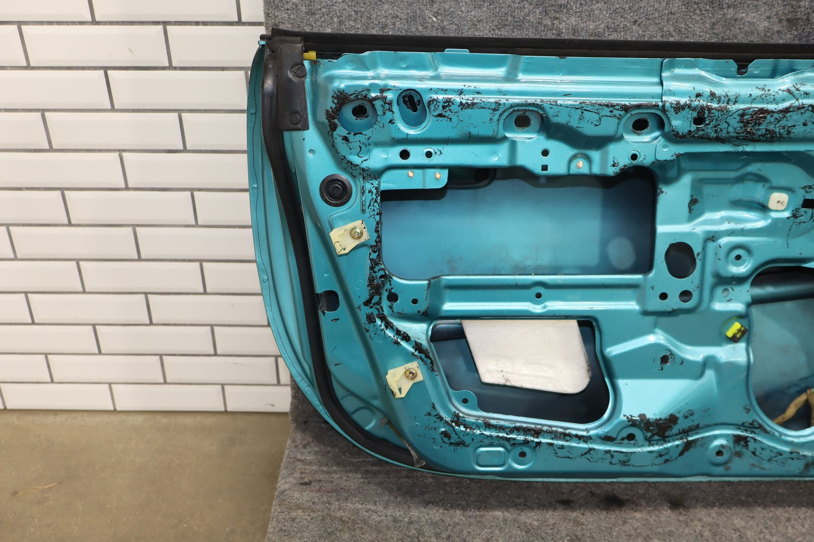 Lh Door Shell, Splash Green Metallic (25r), Sold Less Mirror-trim Panel-glass-regulator-latch, Scuffs/scratches, Chips Rear Edge