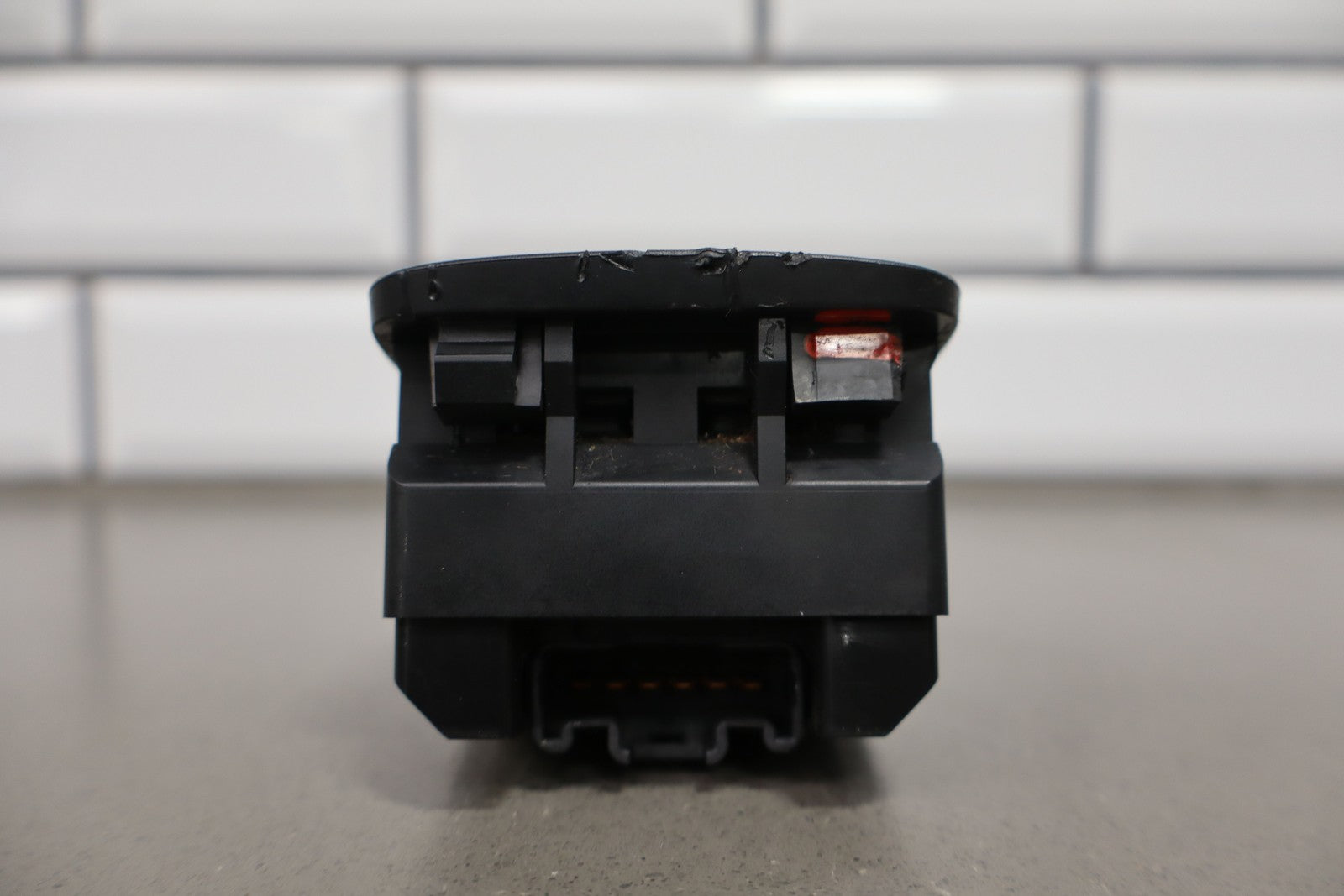 Console Mounted Window Master Switch, Tan Bezel (chips), 1 Tab Missing (red), Functions Properly