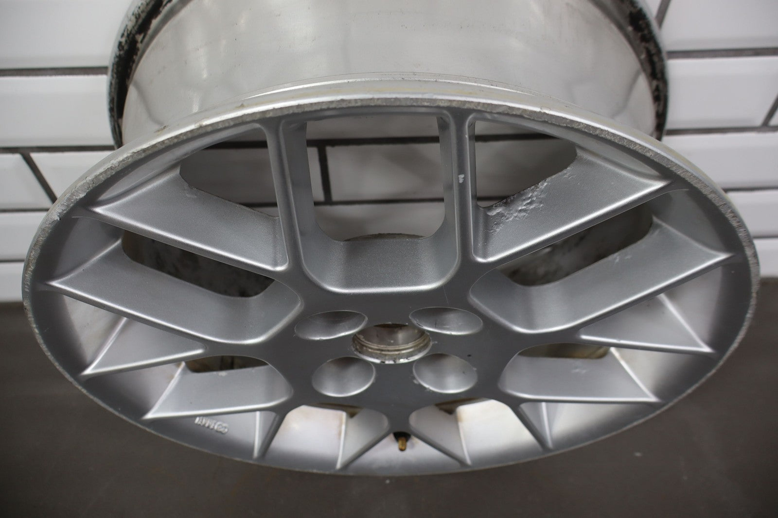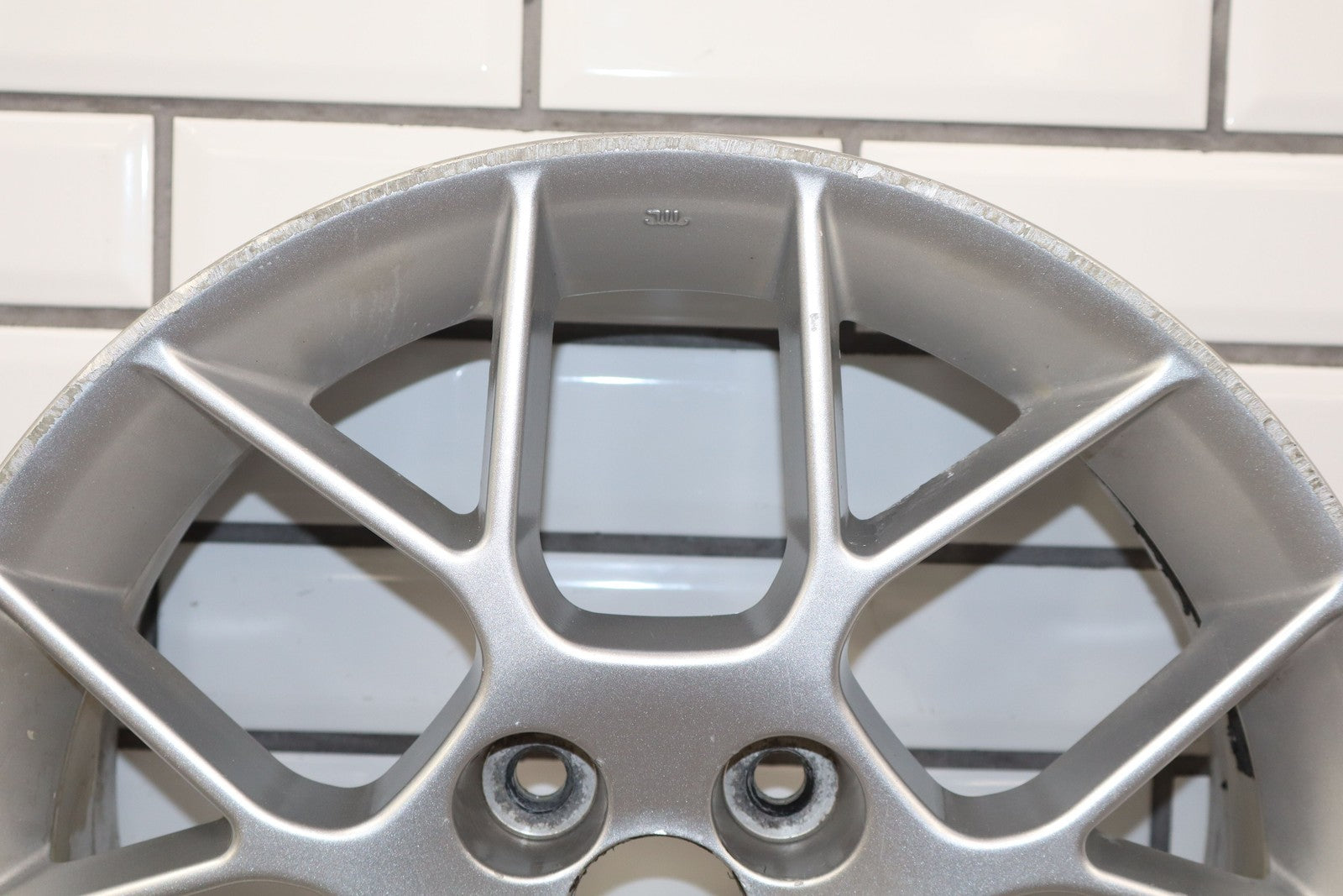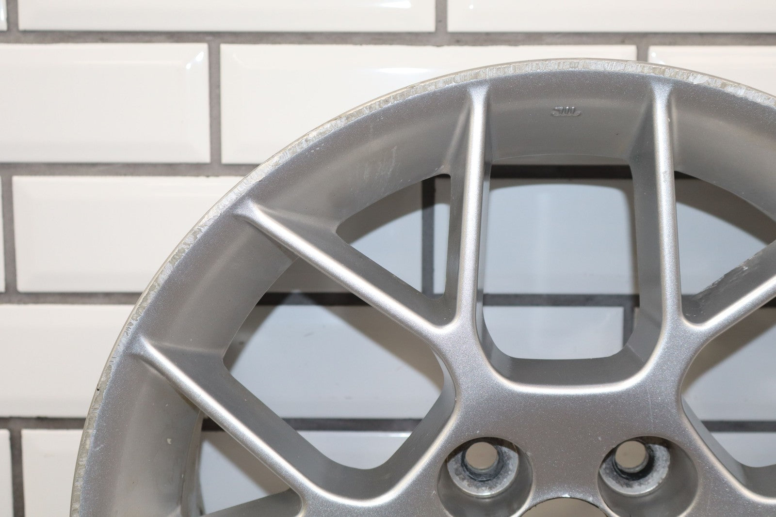 Rh Rear, 16x6.5 Silver 7 Twin Spoke Wheel, Decent Curb Rash, Couple Knicks, Few Corrosion Spots, Spun True