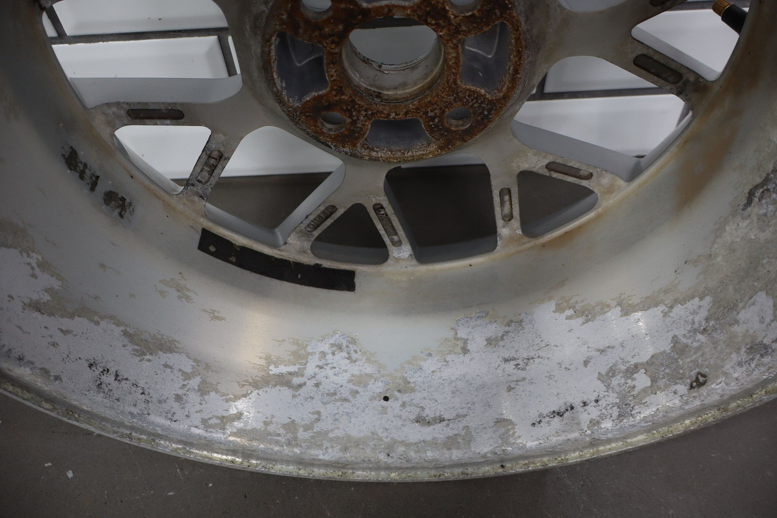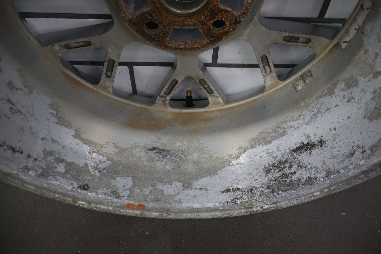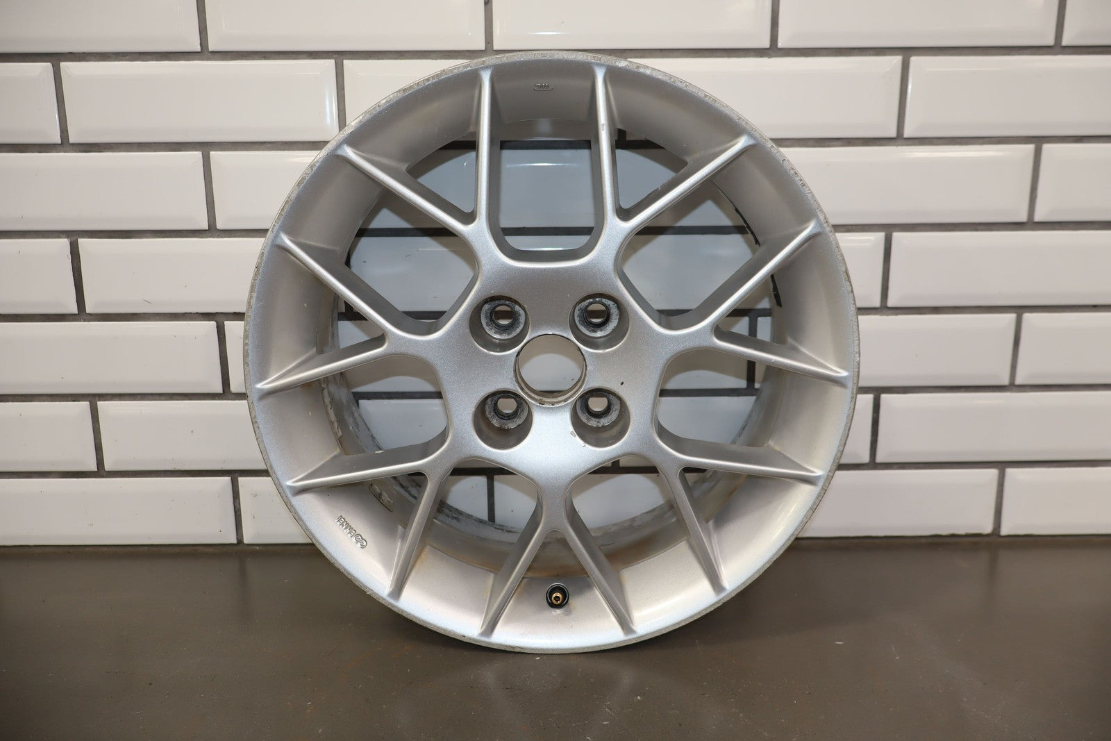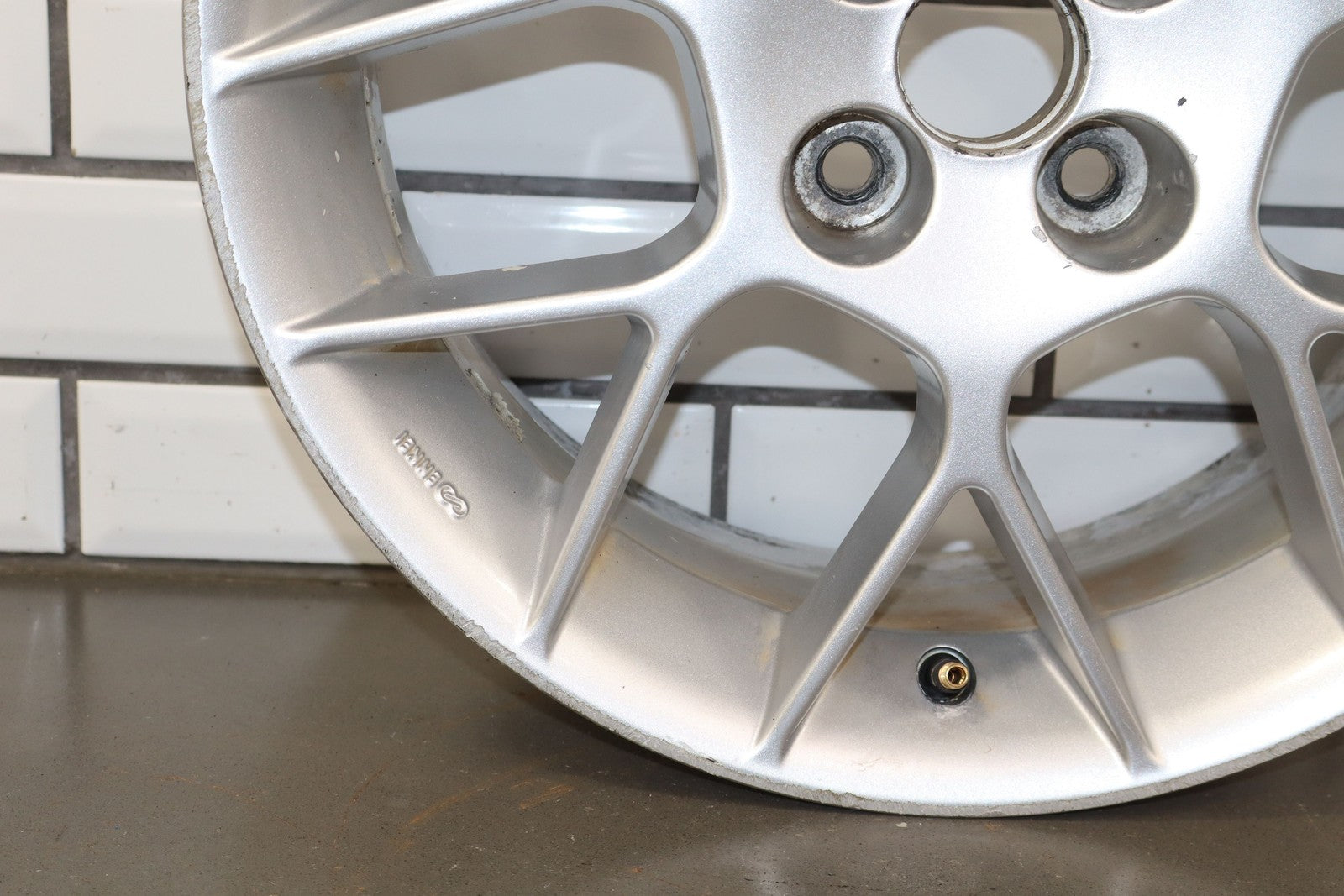 Rh Rear, 16x6.5 Silver 7 Twin Spoke Wheel, Decent Curb Rash, Couple Knicks, Few Corrosion Spots, Spun True