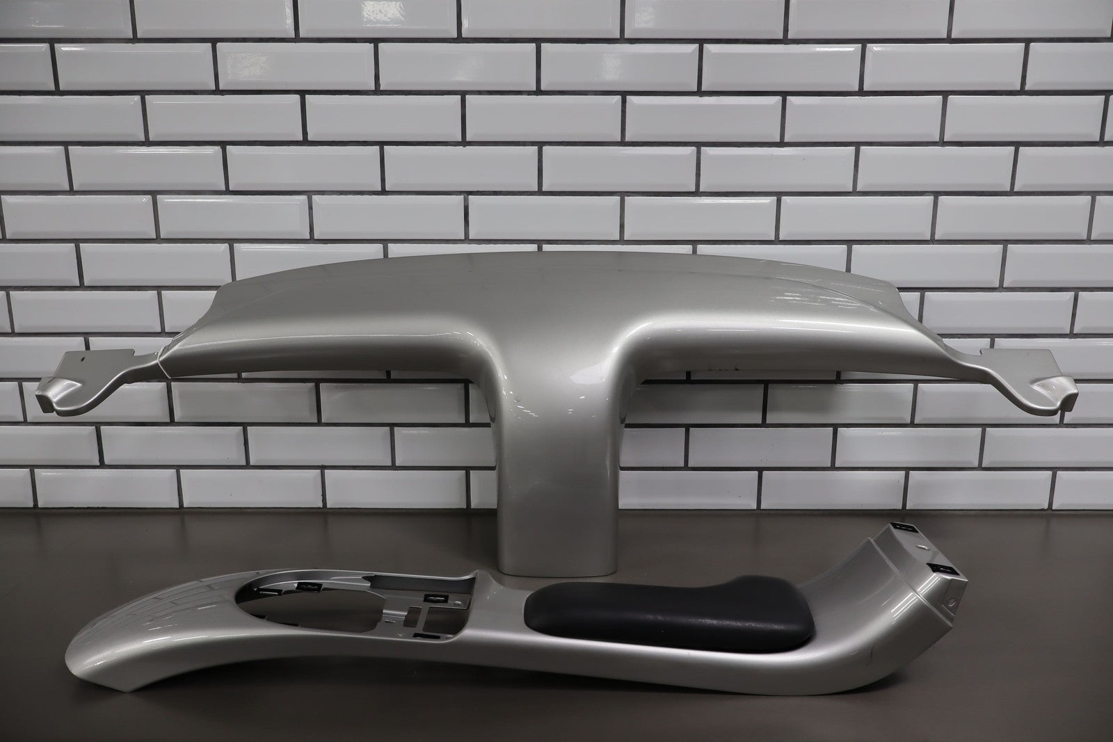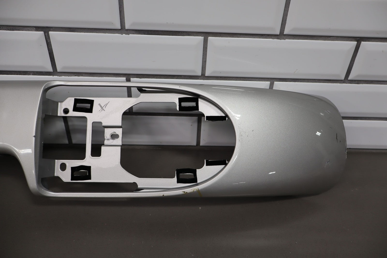 Upper Console Trim, Ricochet Silver Metallic (67u), Includes Lid W/hinge-waterfall Trim, Mild Scuffs/scratches