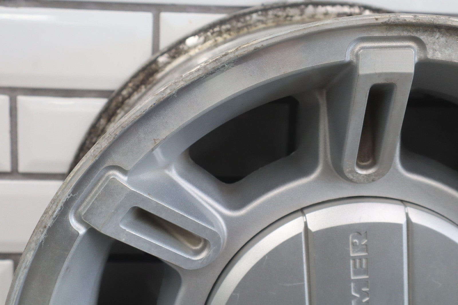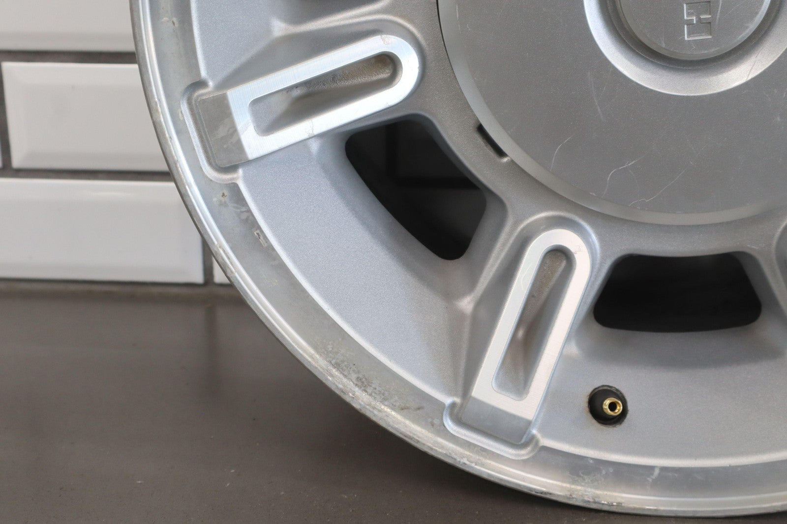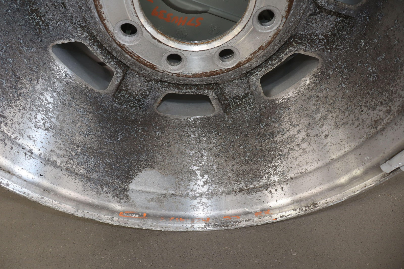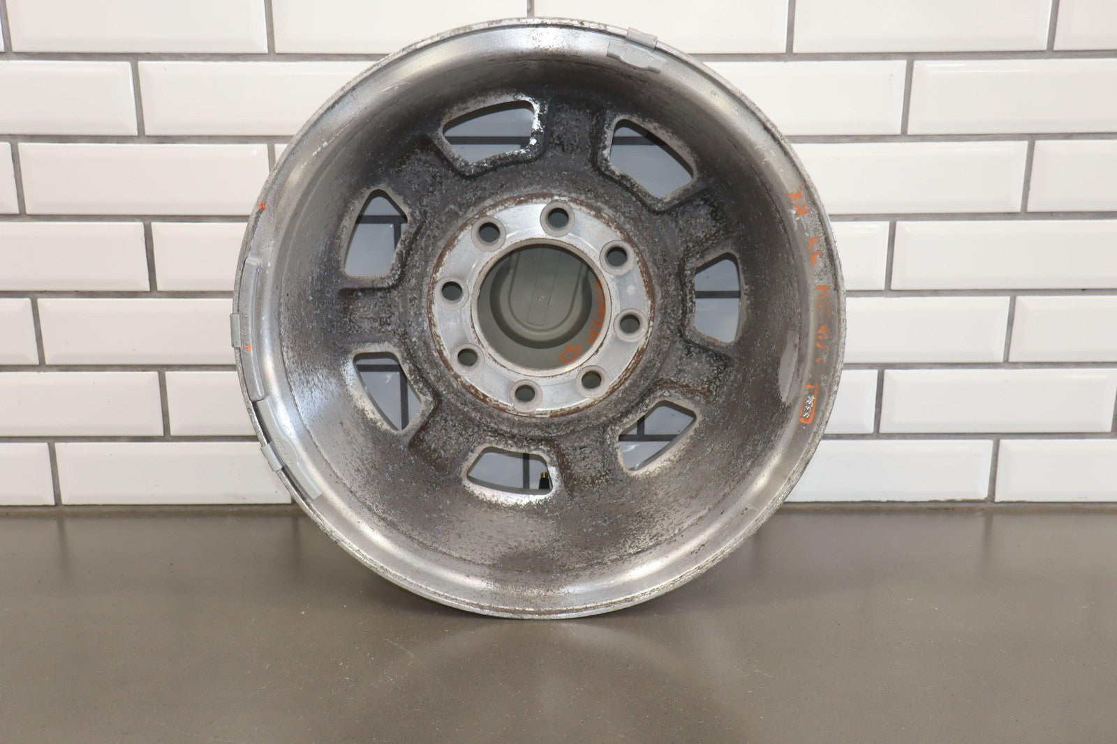 Rh Rear, 17x8.5 Aluminum Finish 7 Spoke Wheel, Decent Corrosion To Face, Spun True