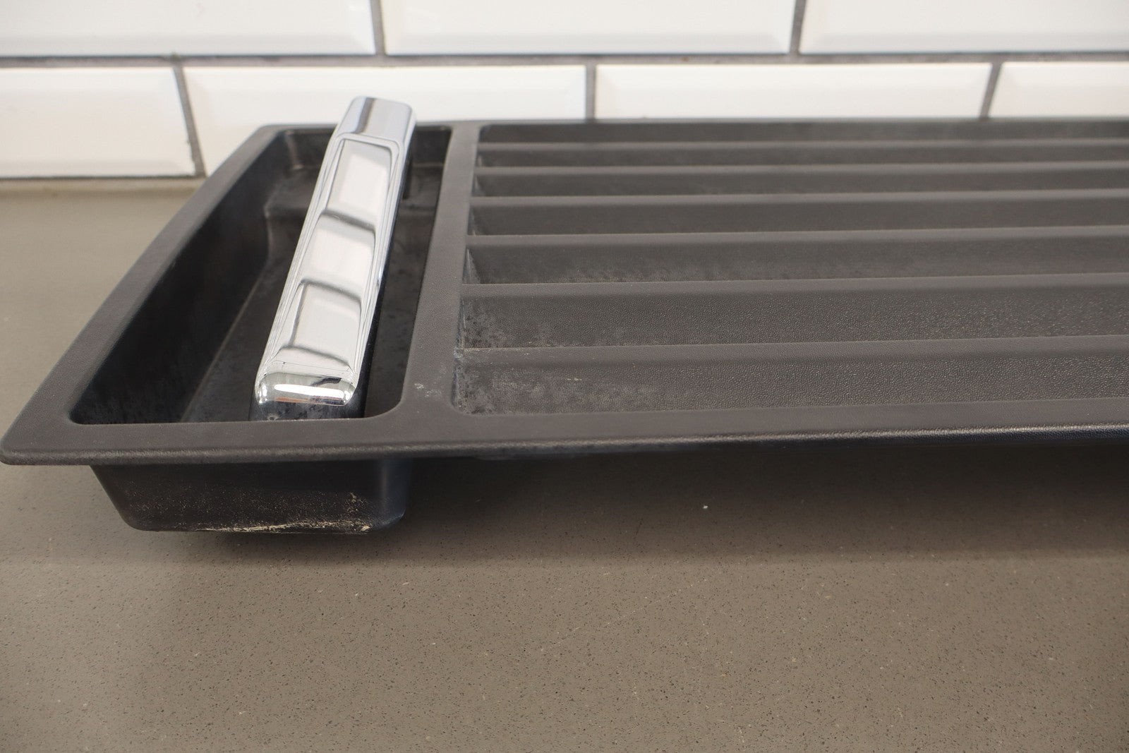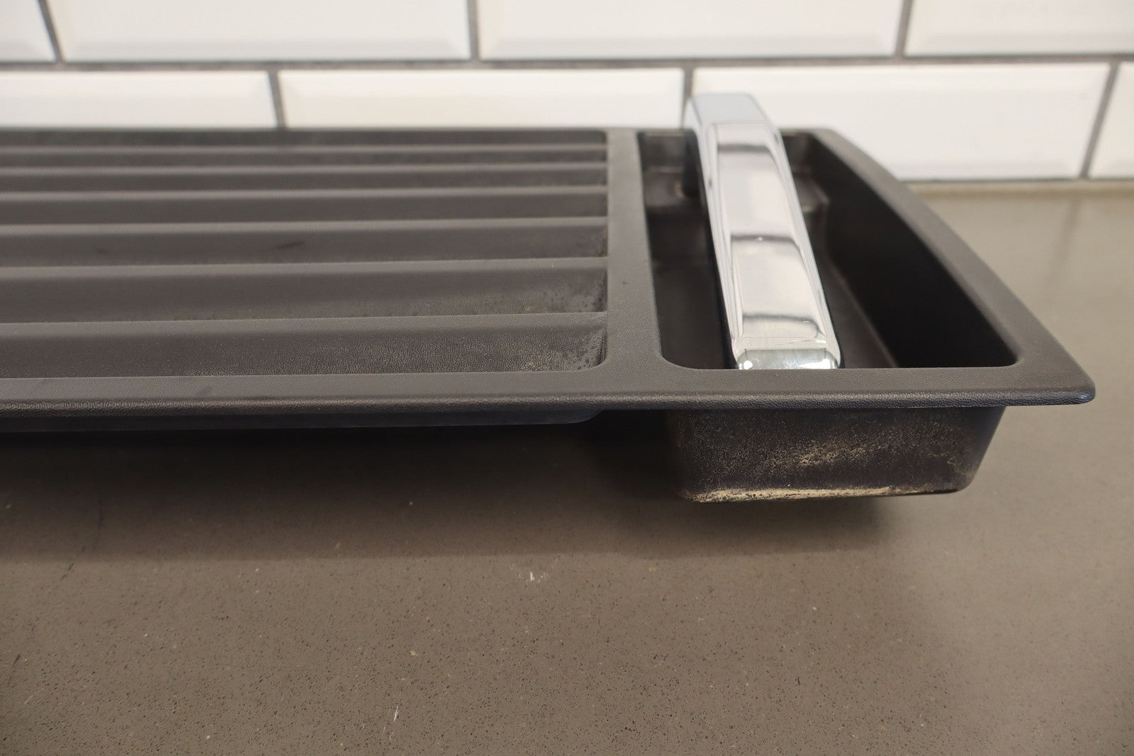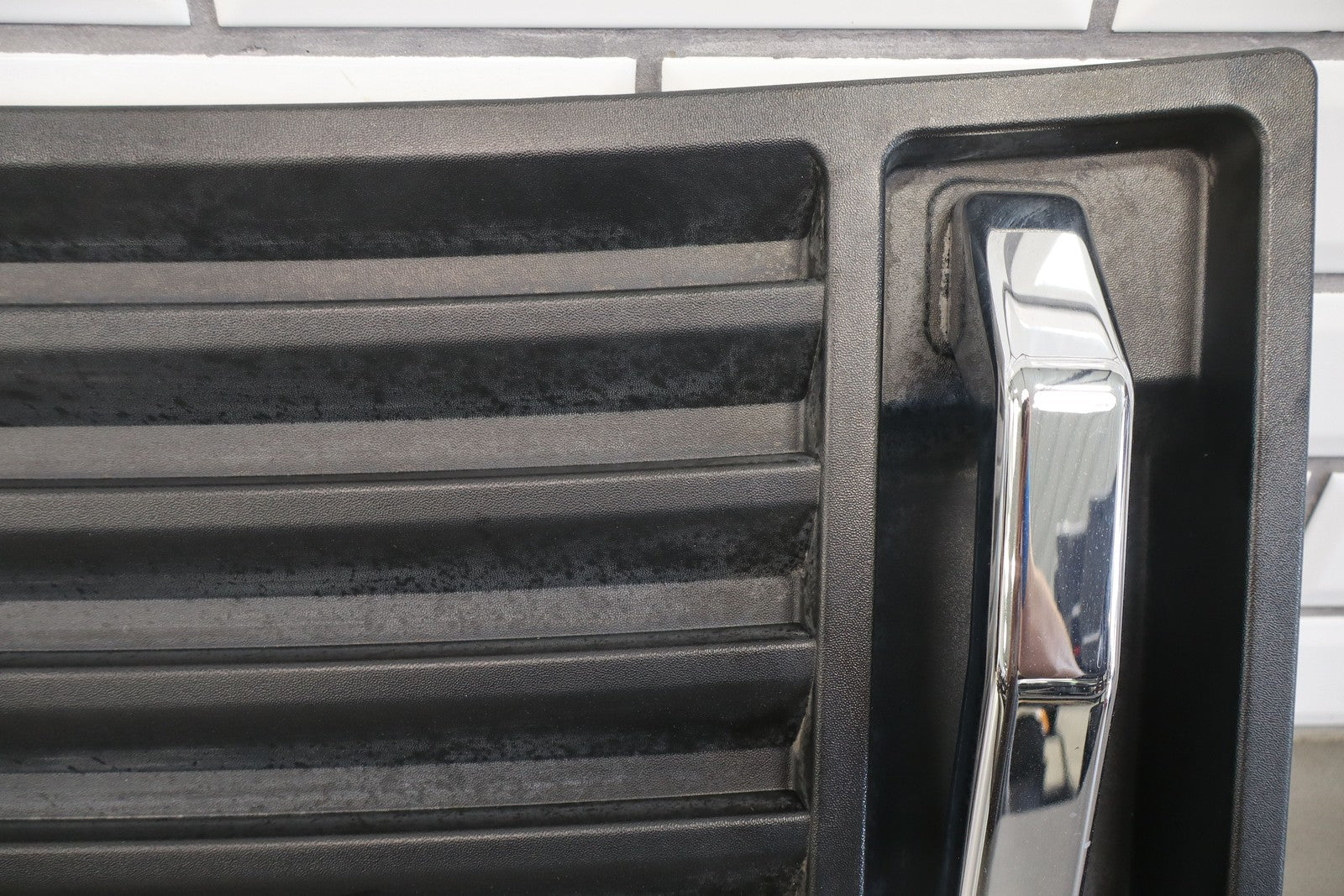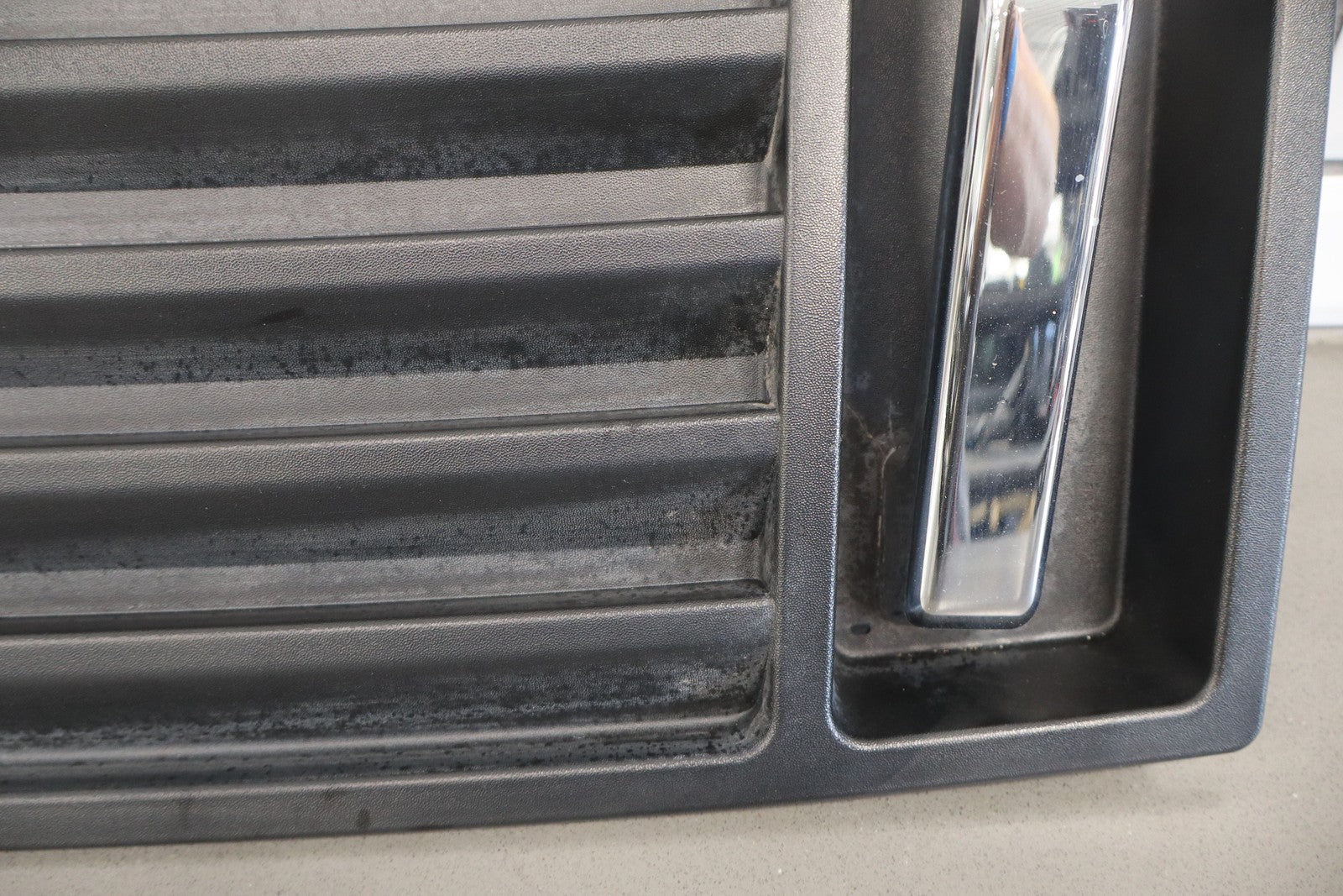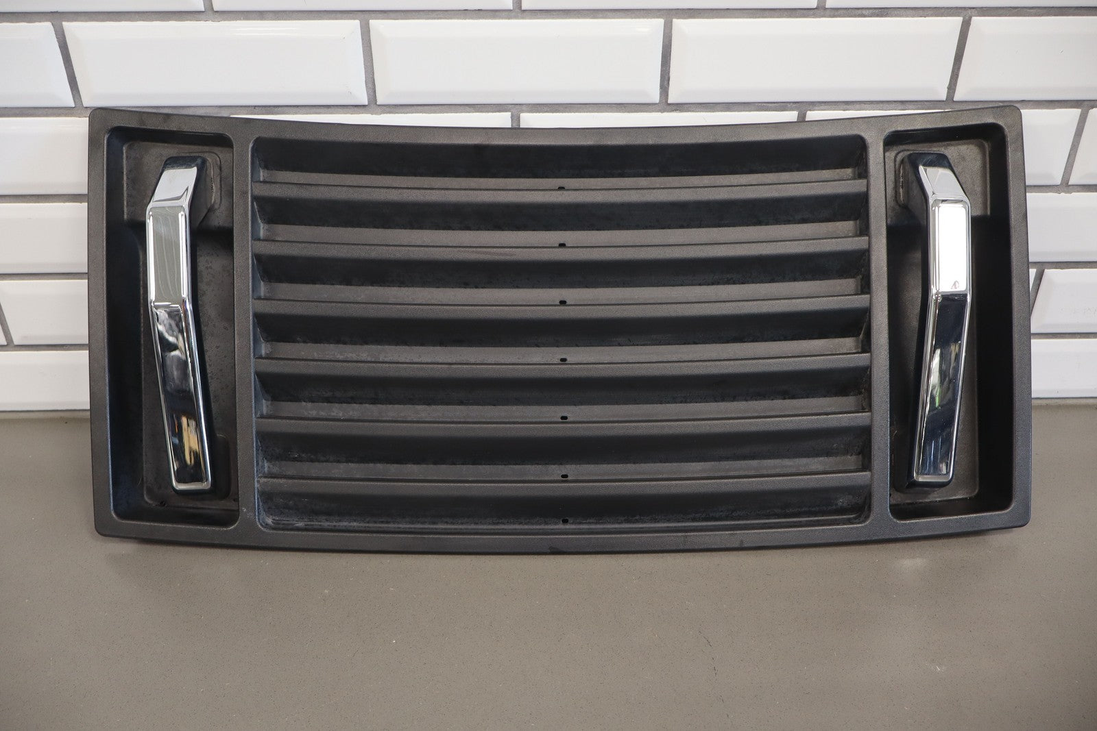 Upper Hood Grill, Black Textured Plastic, Includes Chrome (jha) Handles, Mild Sun Fade, 1 Visible Crack (red)
