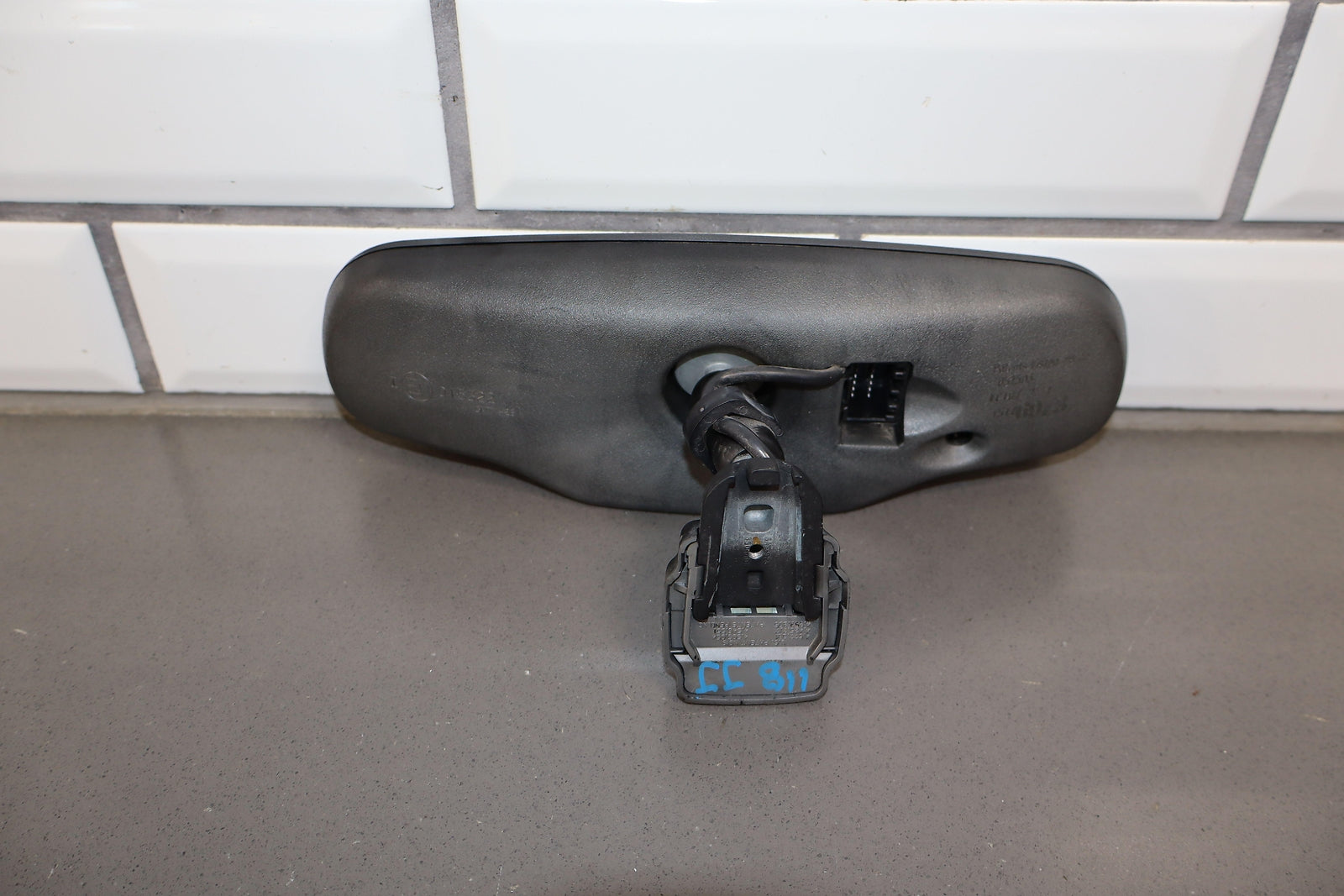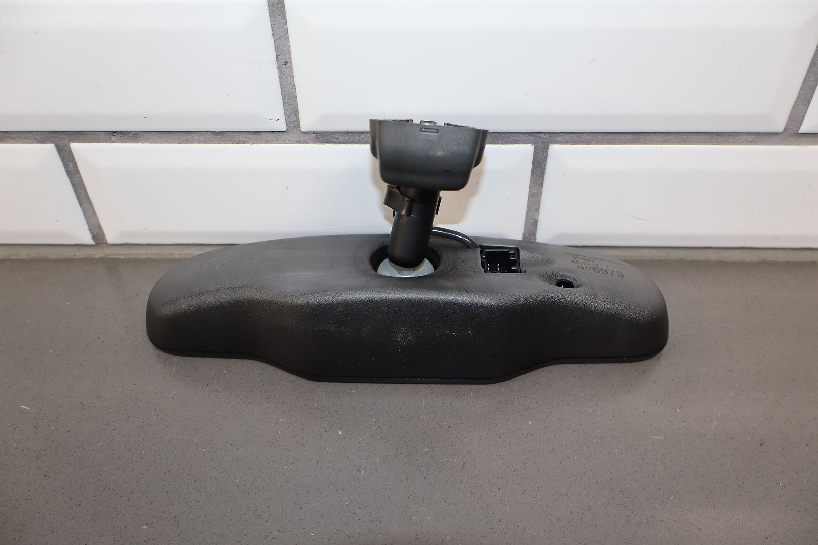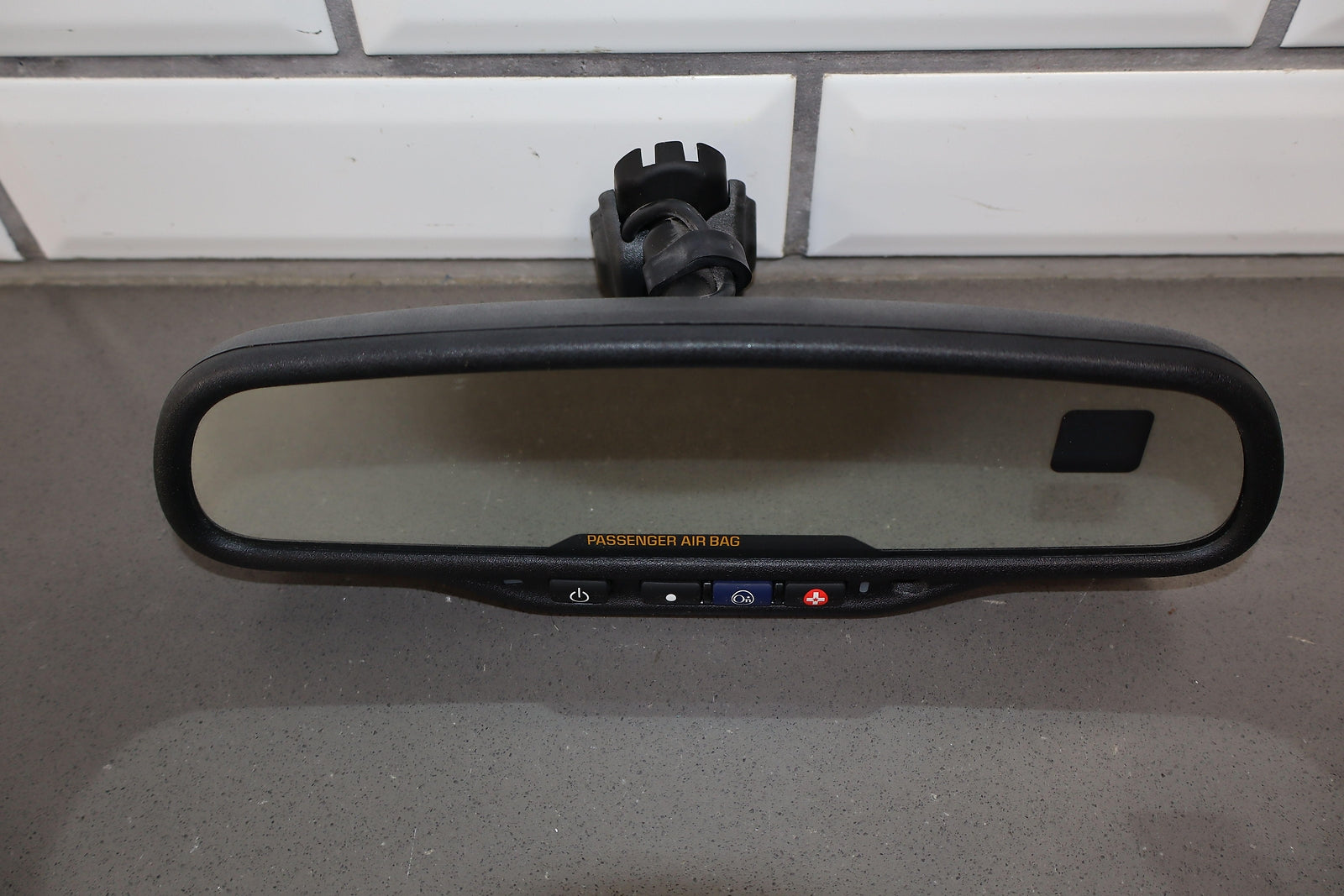 Automatic Dimming Mirror, Black Textured Plastic Frame, Clean Lettering, Clear Glass, Mild Fade To Frame, Functions Properly