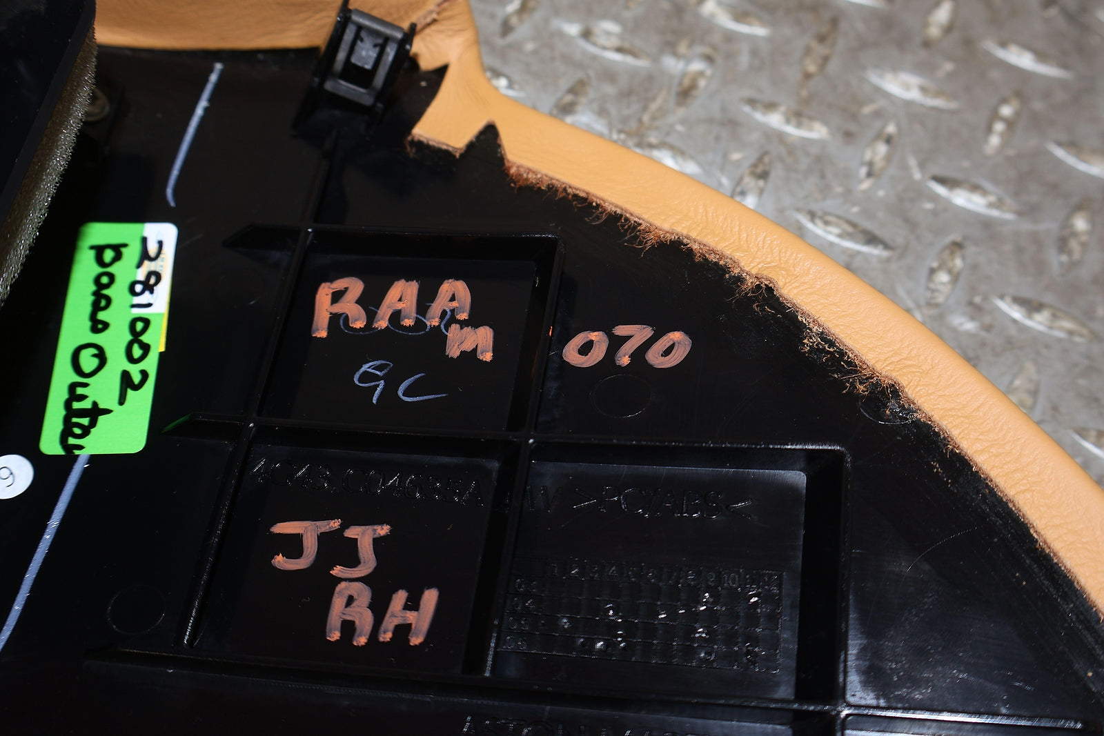 Important notes: Rh Dash Mounted Ac Vent, Sahara Tan Leather Wrapped Bezel, Light Staining, Mounted Solid, Vent Functions Properly