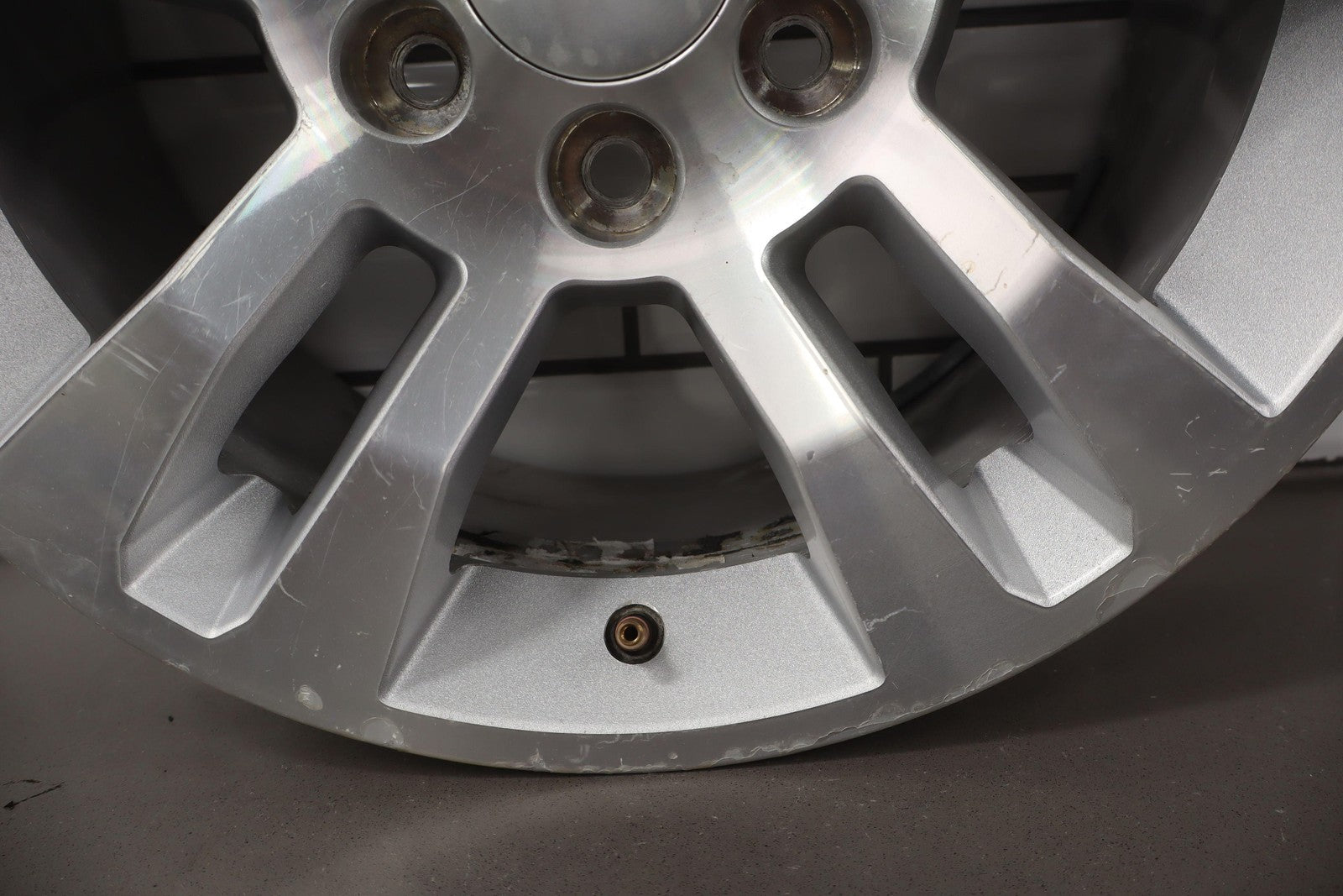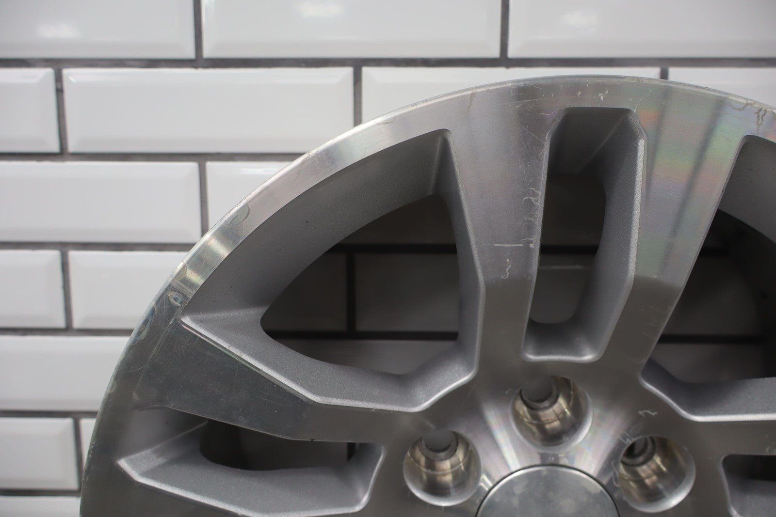 Important notes: 20x8.5 Split 5 Spoke Wheel (recessed Center), Silver/machined, Clear Coat Damage, Mild Sratches, Spun True