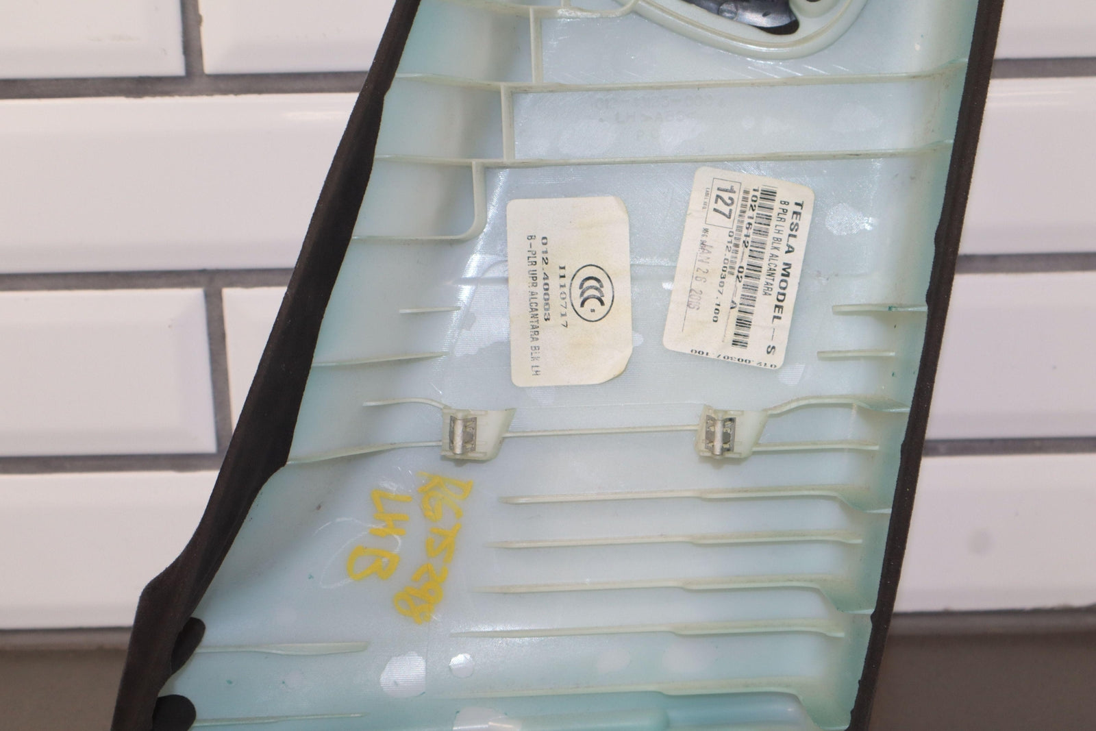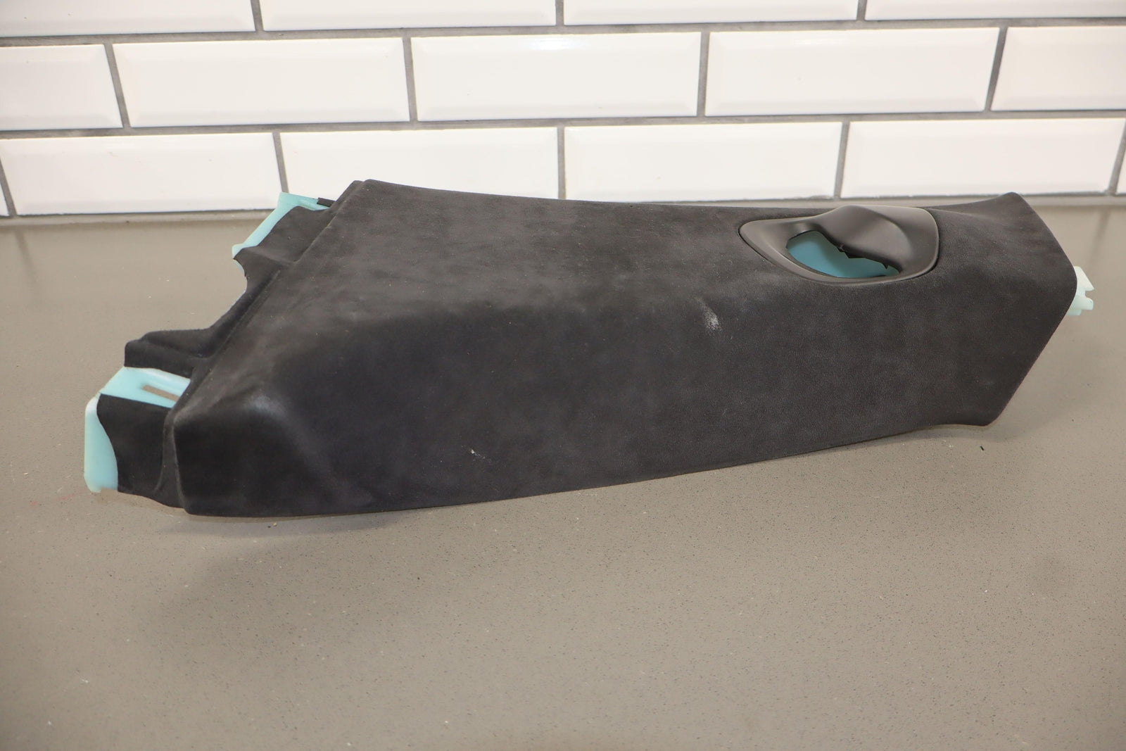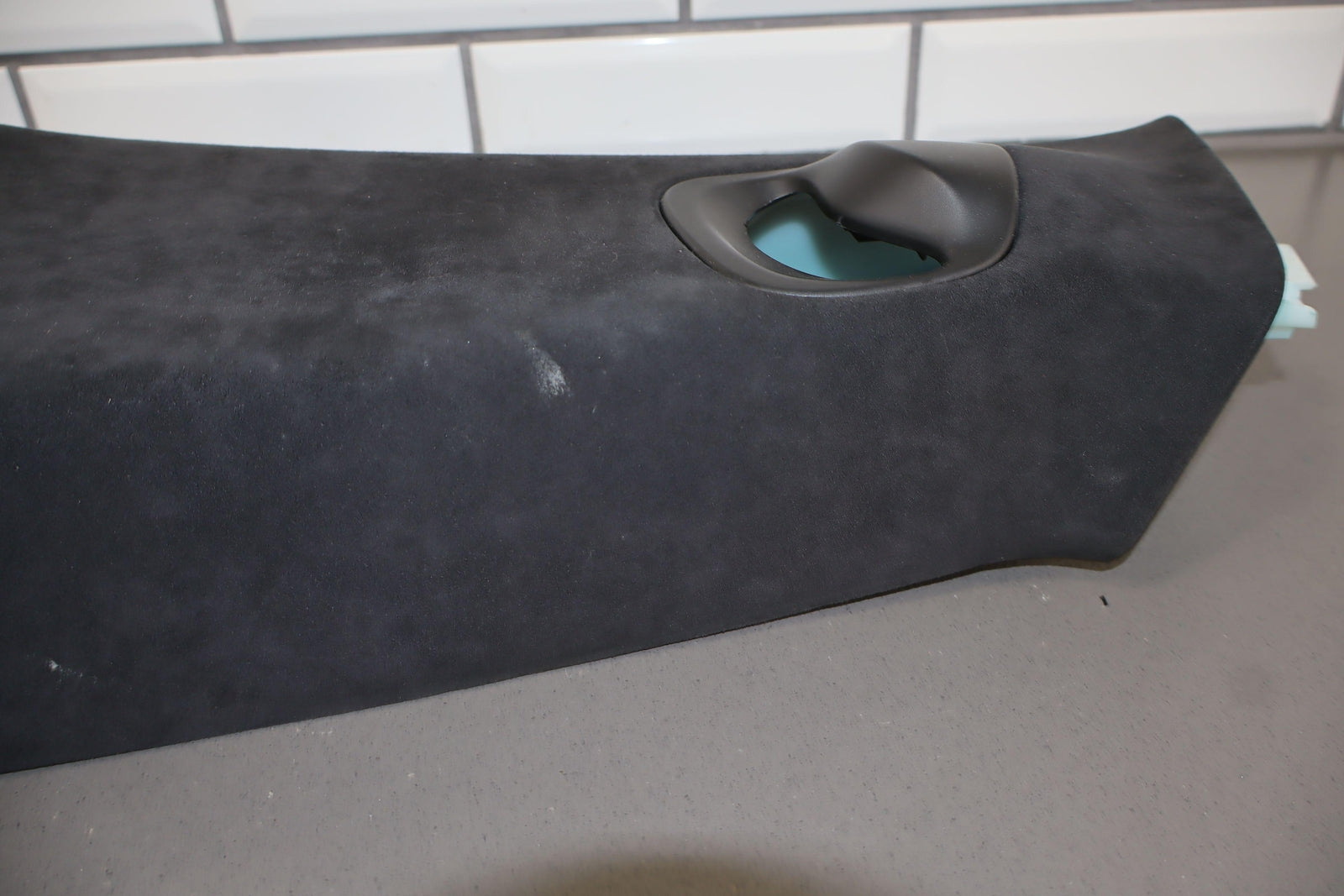 Lh Upper Interior B Pillar Trim, Black (blk) Suede, Couple Small Burn Marks, Light Staining, 1021612-02-a