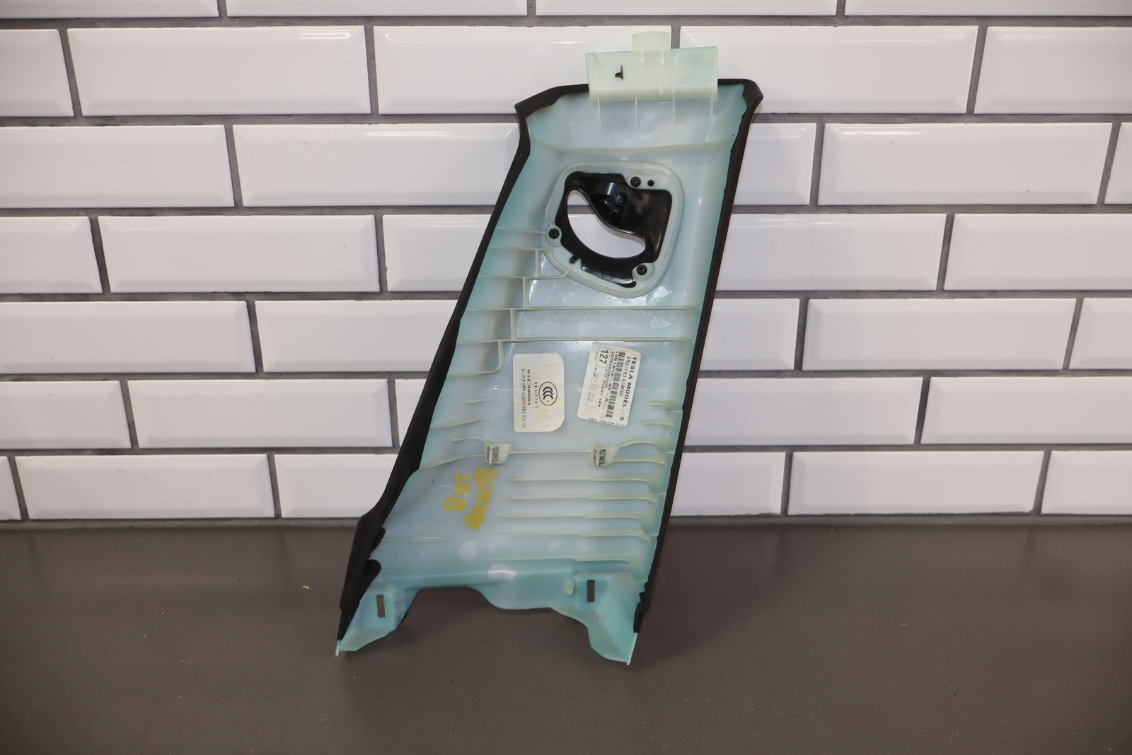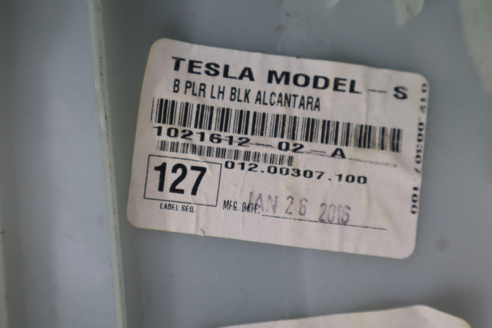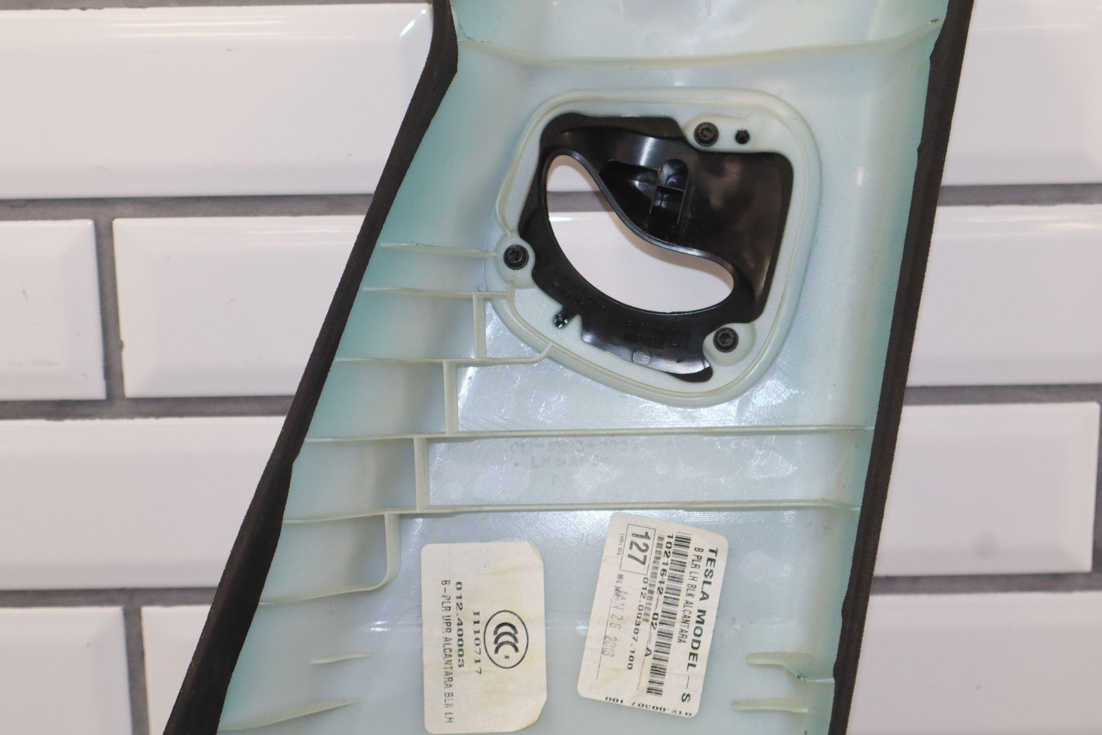 Lh Upper Interior B Pillar Trim, Black (blk) Suede, Couple Small Burn Marks, Light Staining, 1021612-02-a