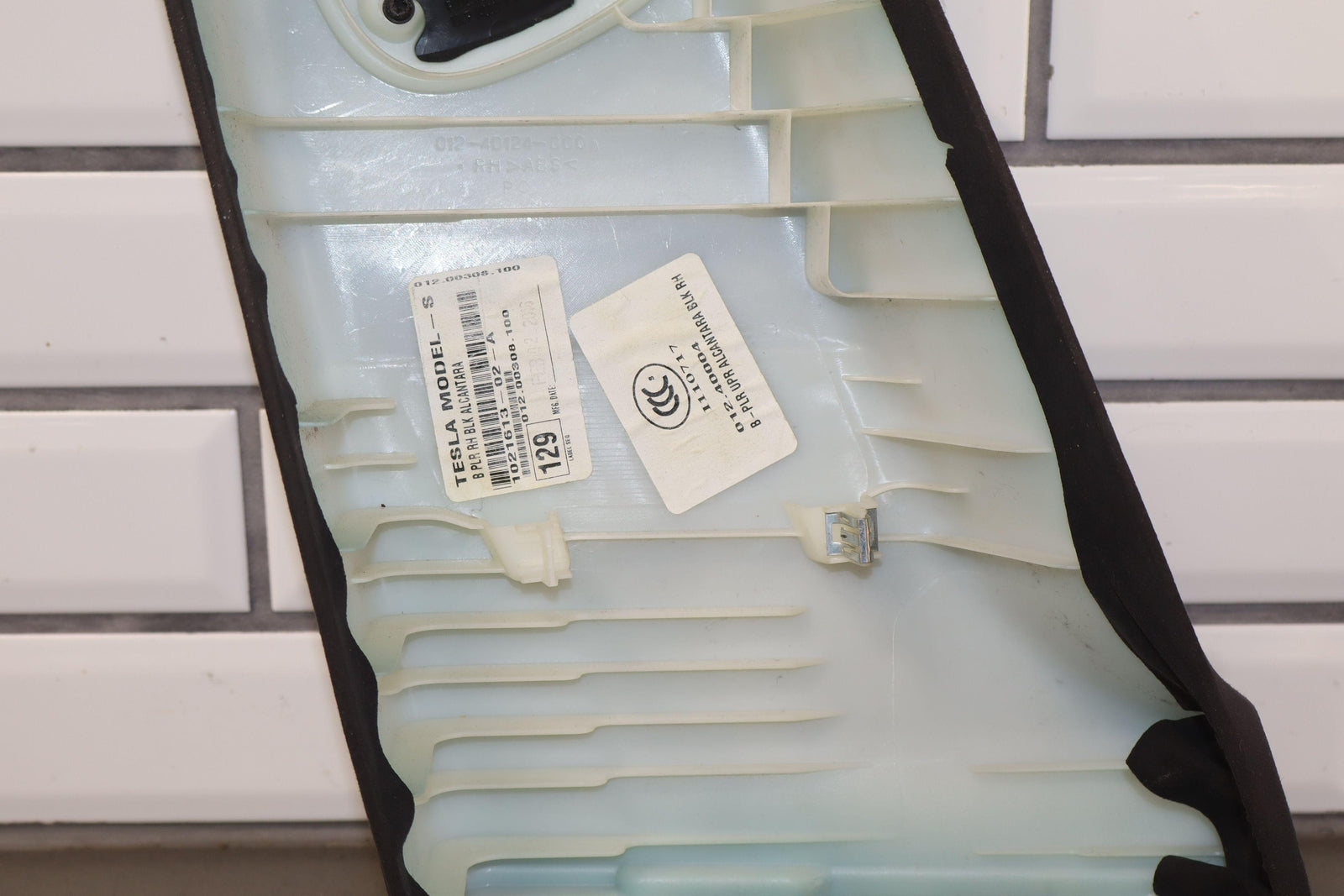 Rh Upper Interior B Pillar Trim, Black (blk) Suede, Light Signs Of Wear, 1021613-02-a