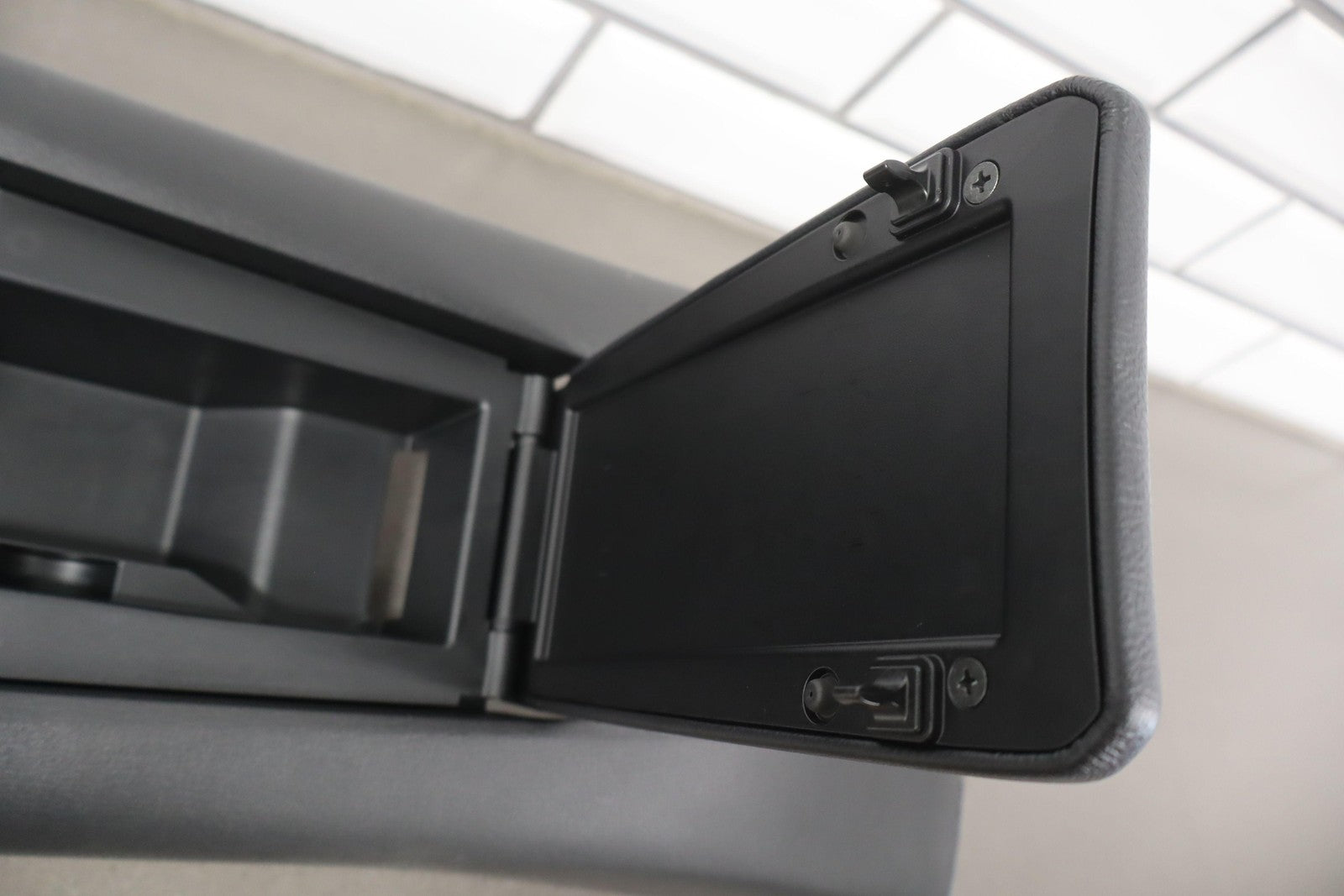 Floor Console, Black (x9), Sold Less Upper Trim-media Switch, Includes Lid, Latch Functions Properly, Minimal Signs Of Wear