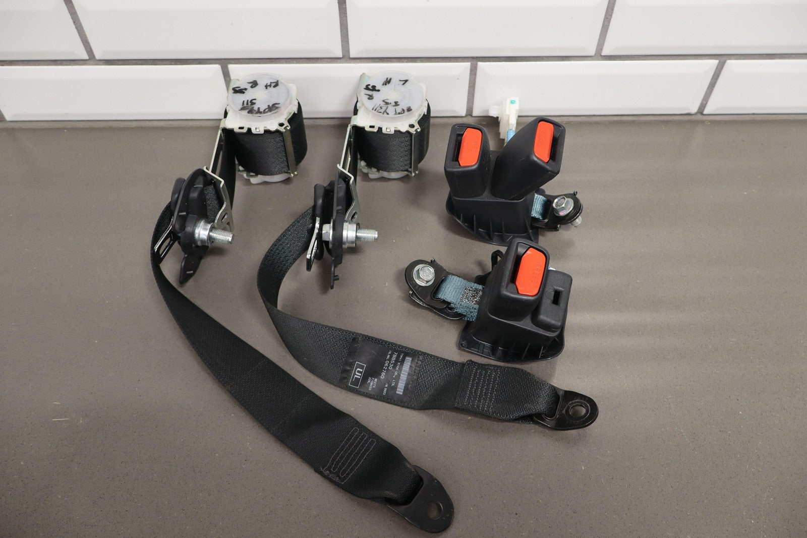 Important notes: Lh Pair, Rear Seat Belt Retractors, Black, Includes All Buckles, No Center Belt, Little To No Signs Of Wear