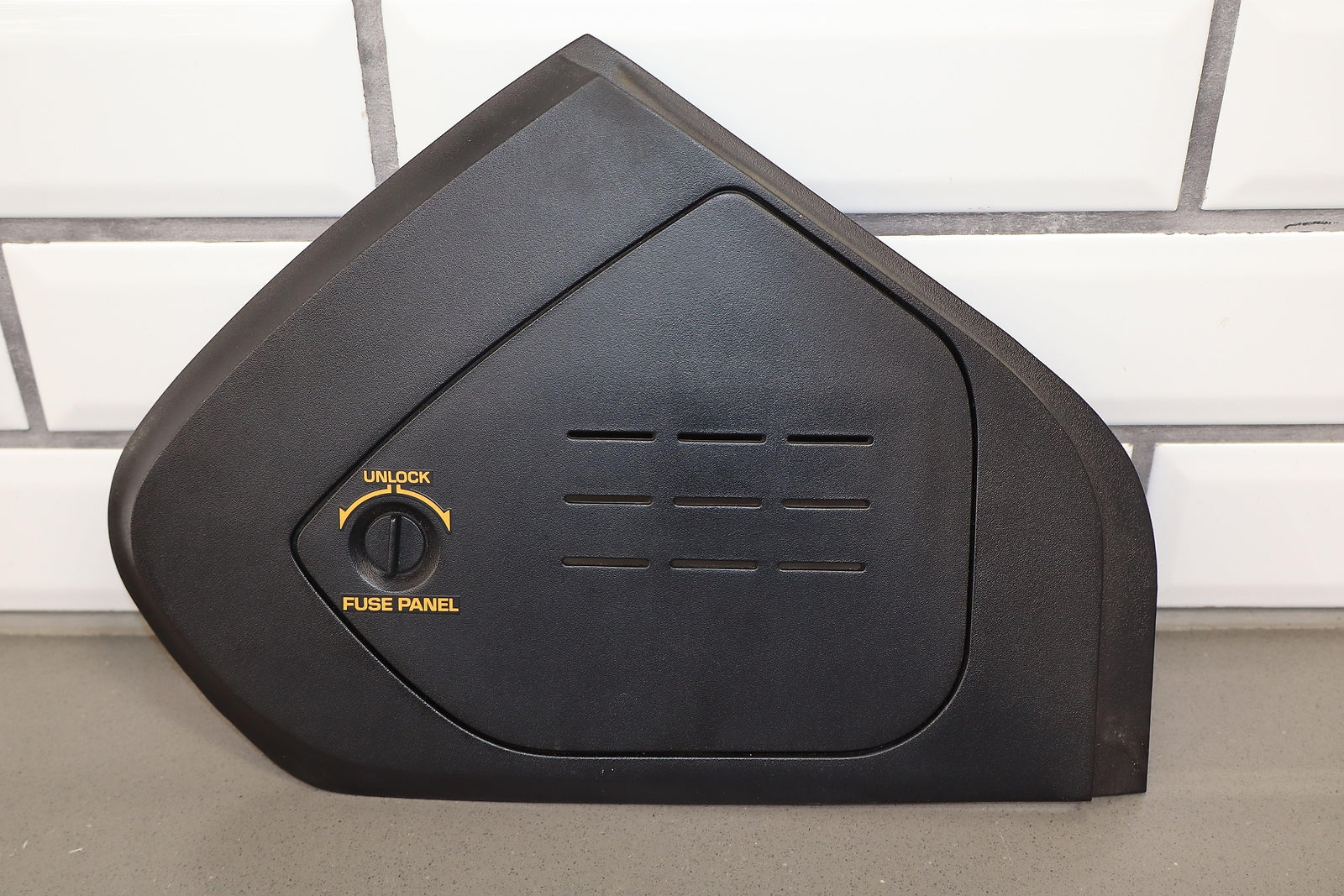 Rh Dash End Cap W/fuse Panel Door, Black (19i), Clean Orange Lettering, Functions Properly