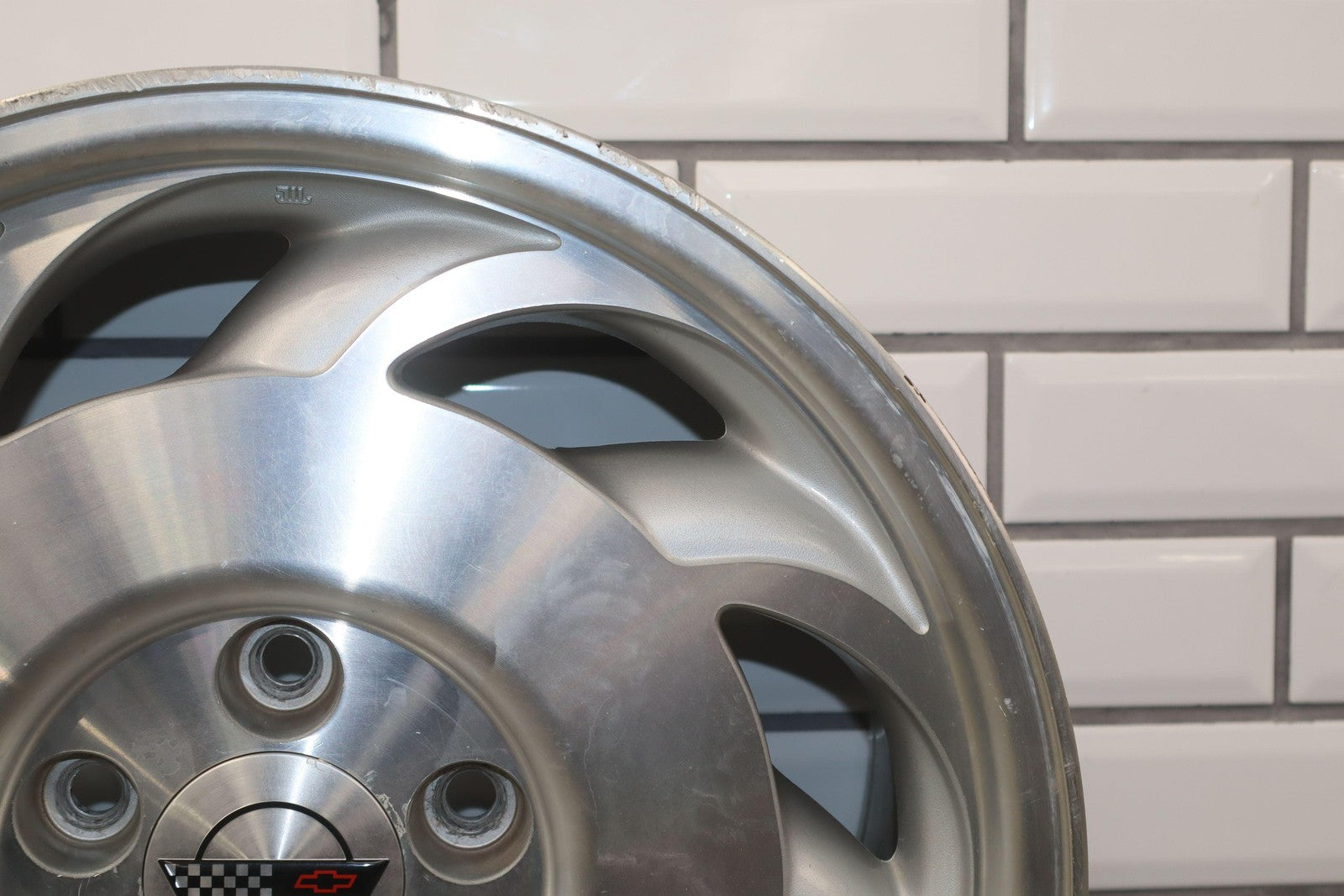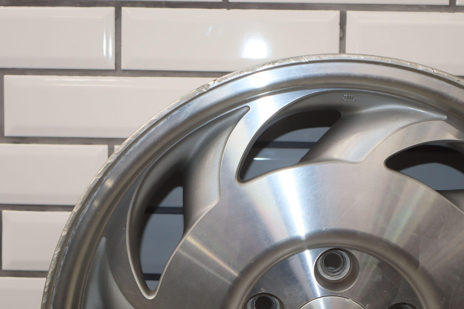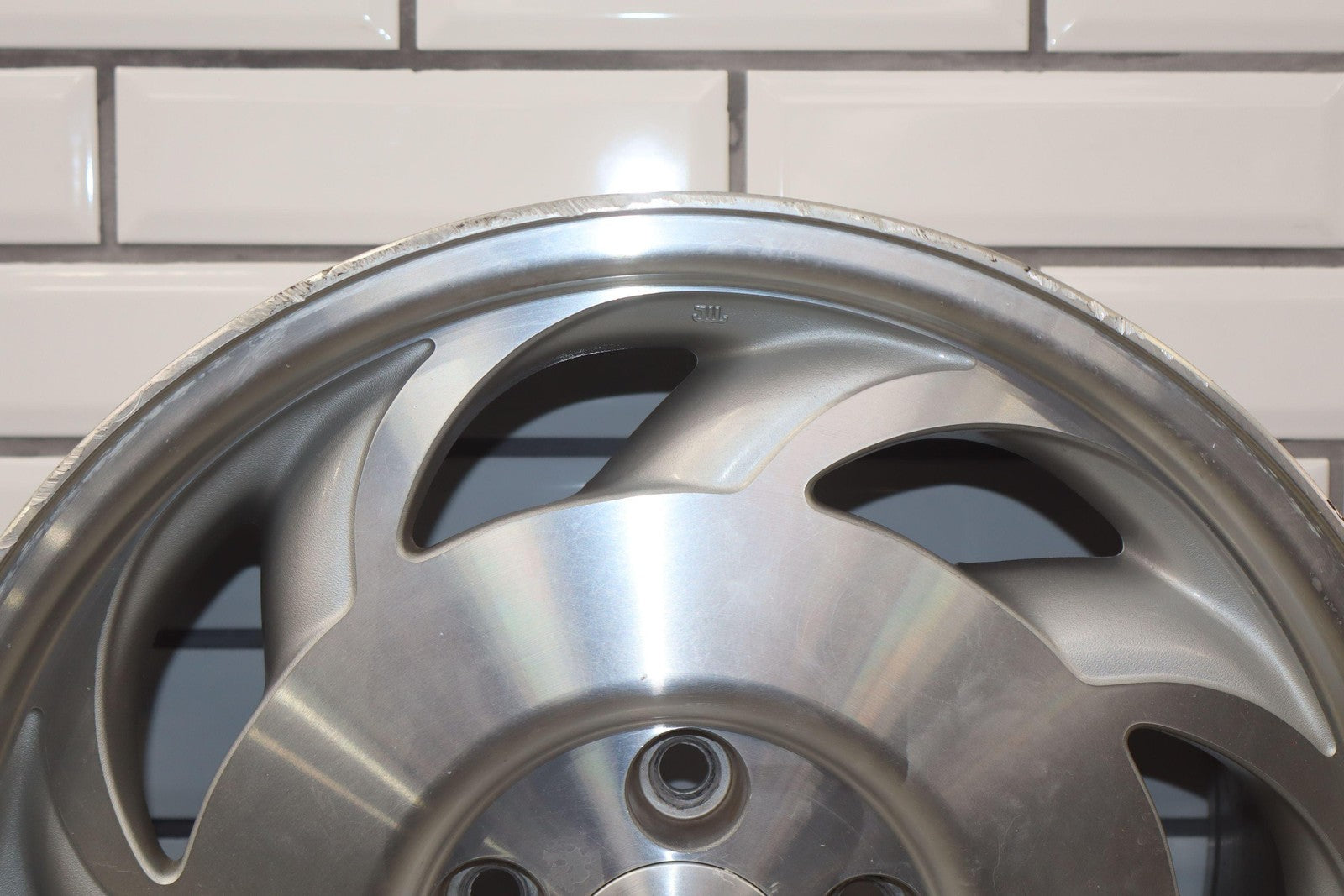 Lh Rear, 17x9.5 Directional Wheel, Silver/machined, Decent Crub Rash, Lightly Weatherined Finish, Spun True